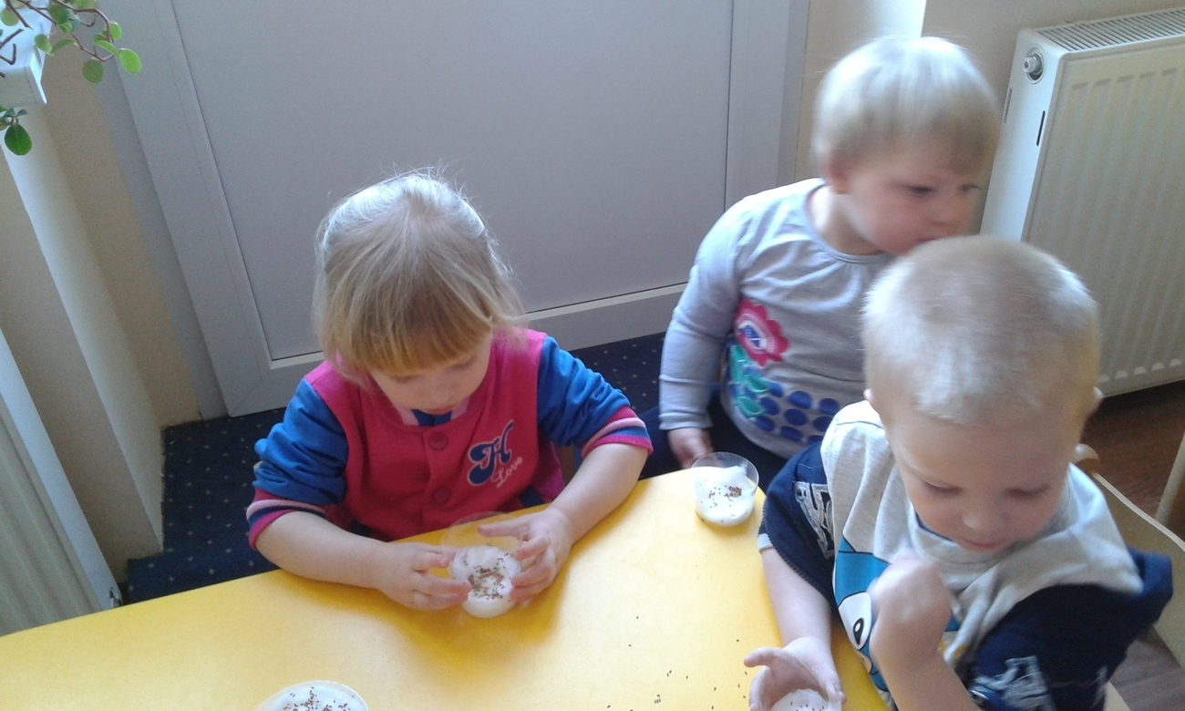 Każde dziecko trzymało w rączkę swoje ziarenka i mogło je wsypać do swojej doniczki.