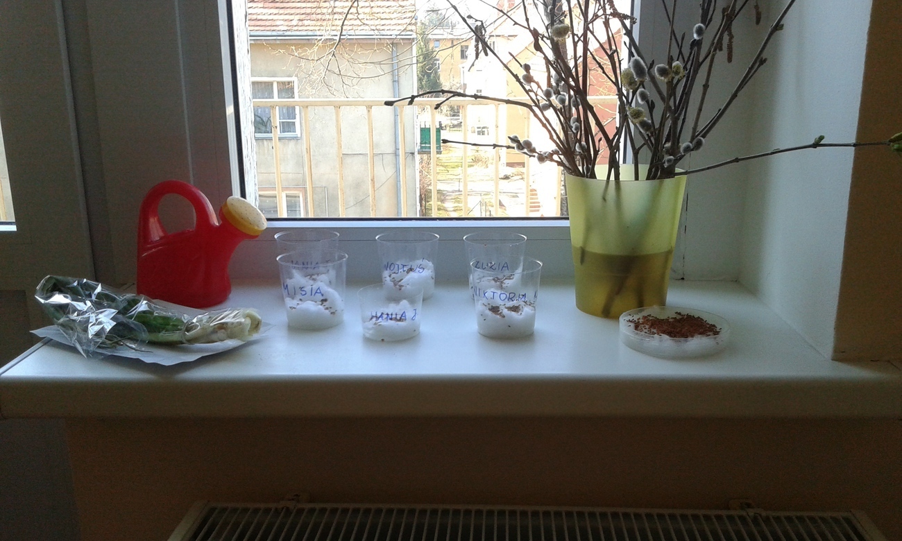Wspólnie zrobiliśmy specjalne miejsce w naszej małej sali na parapecie, aby wszystkie nasze roślinki zmieściły się.