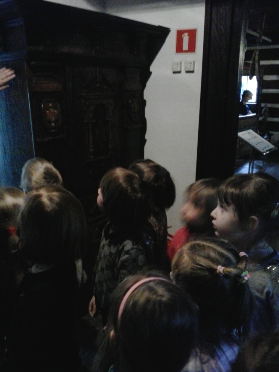 Po warsztatach dzieci miały także okazję zobaczyć „starą chatę” oraz dowiedzieć się jak kiedyś żyli ludzi, a także poznać ich tradycje.