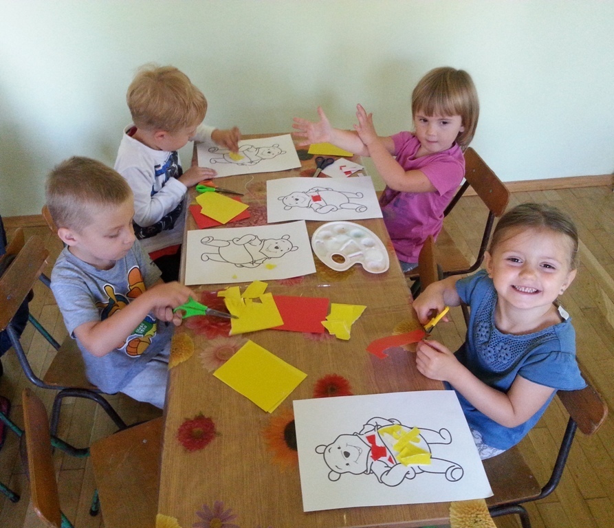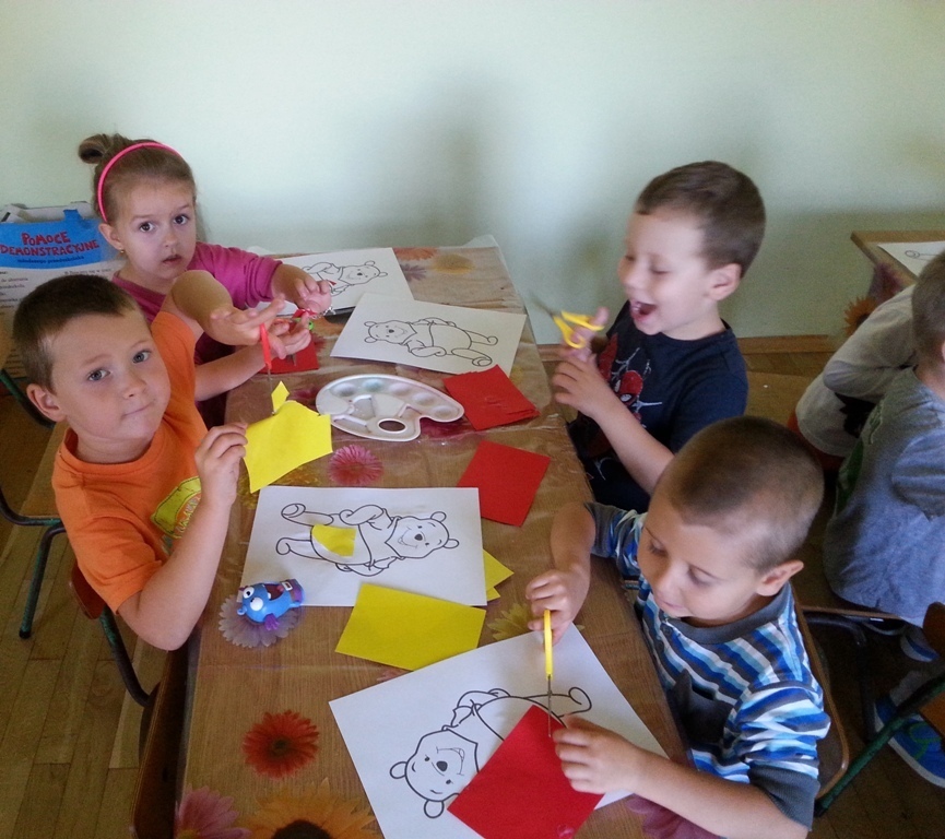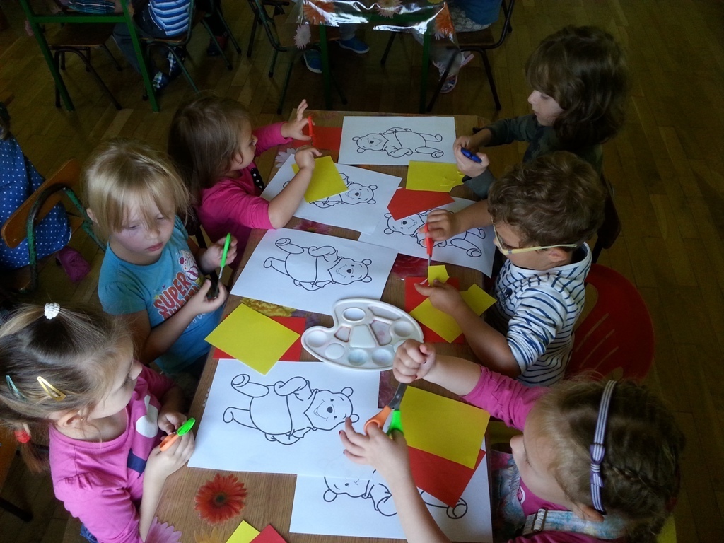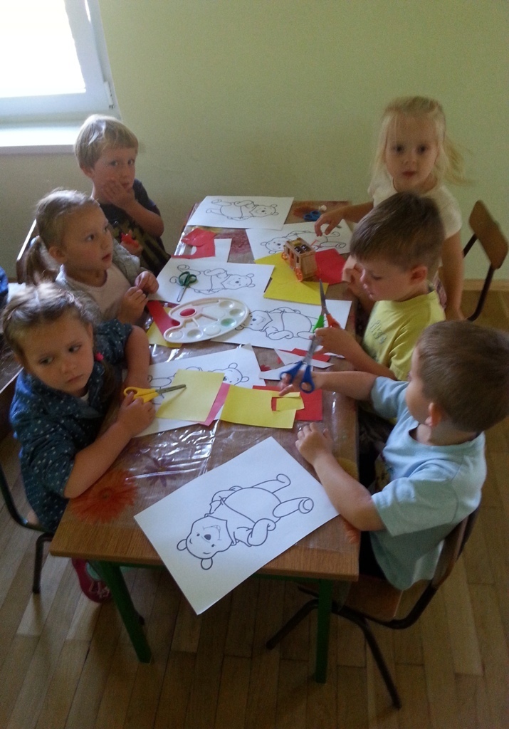 Uwieńczeniem świętowania było wykonanie pracy plastycznej - wyklejenie i pokolorowanie postaci Kubusia Puchatka.
