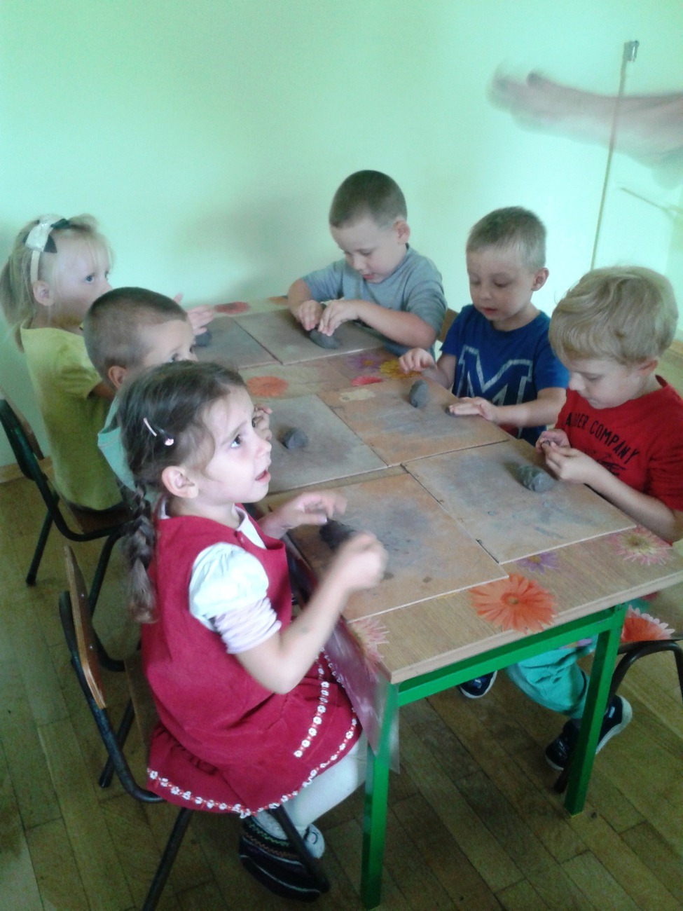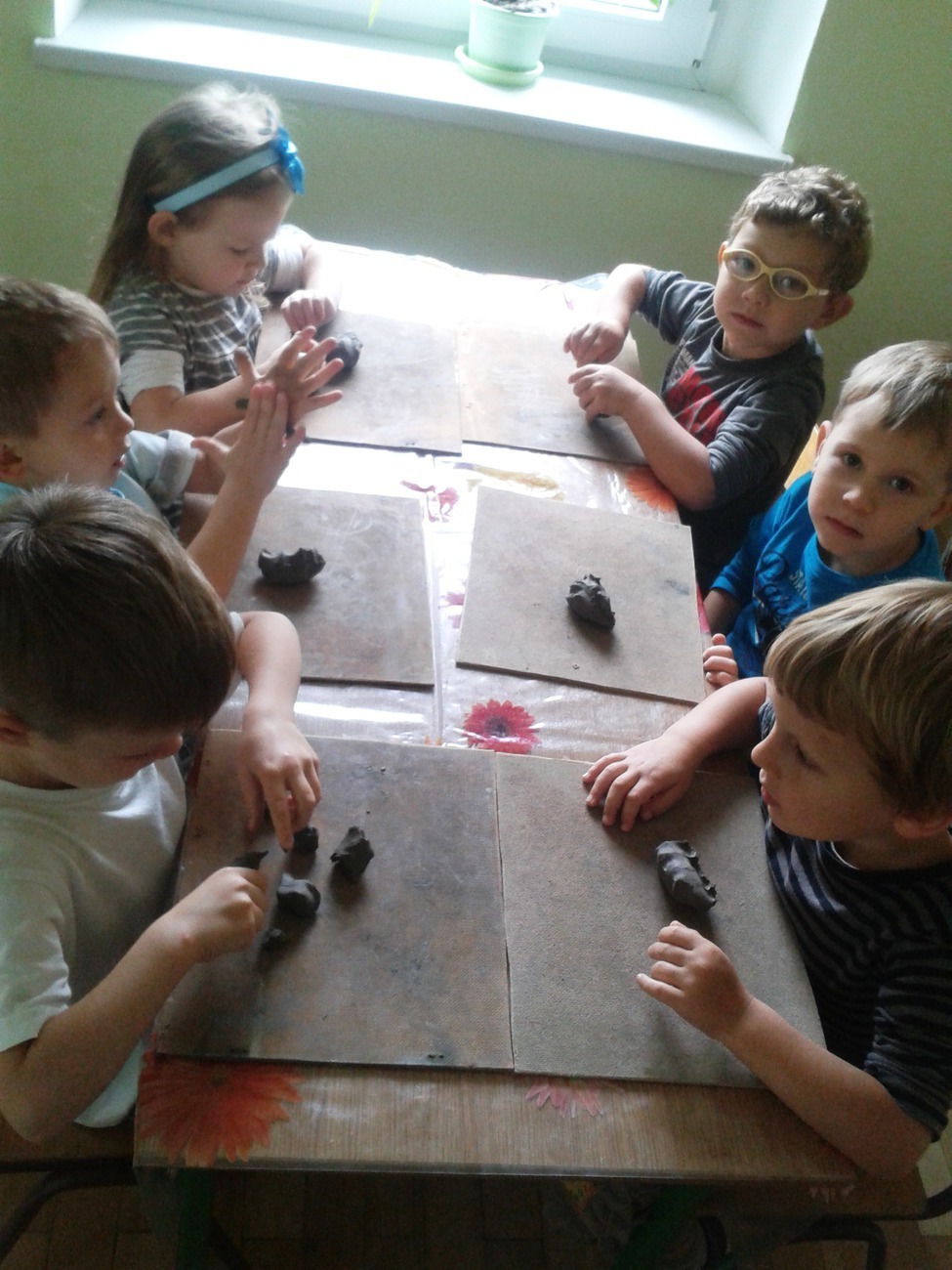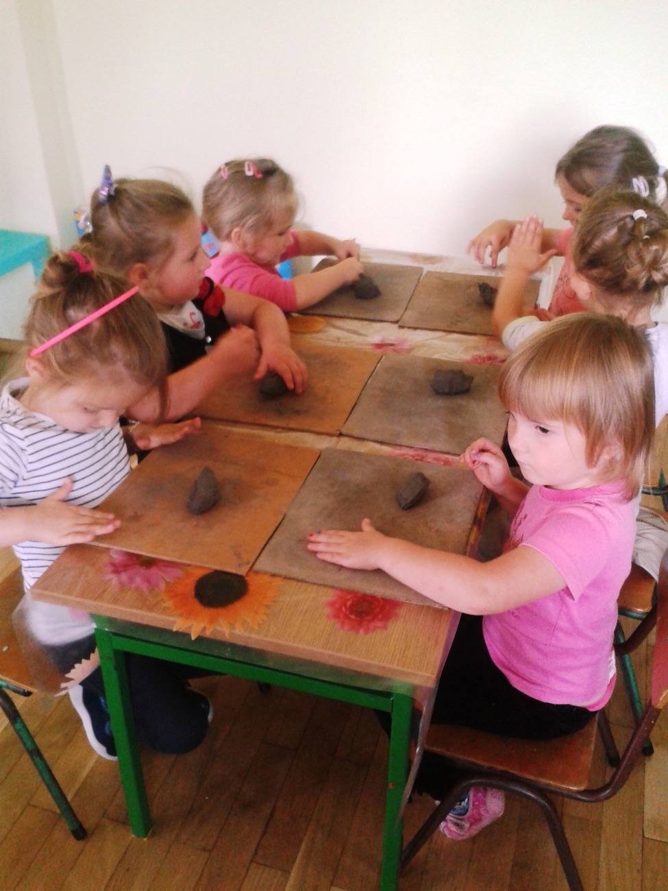 Środa 10.09.2014r. dla Żabek była bardzo ciekawym dniem. To właśnie wtedy, grupa odbyła swoje pierwsze zajęcia z ceramiki. Dzieci były podekscytowane nowymi zajęciami, w jakich uczestniczyły. Nowa technika plastyczna - glina, osoba prowadząca zajecia i forma zajęć. Wszyscy dokładnie wysłuchali instrukcji pana Rafała co do wykonania pracy. Wałkowanie, ugniatanie czy turlanie przysporzyło nieco kłopotów. Jednak po zakończeniu pracy wszyscy zgodnie uznali, że już chcieliby następne zajęcia.