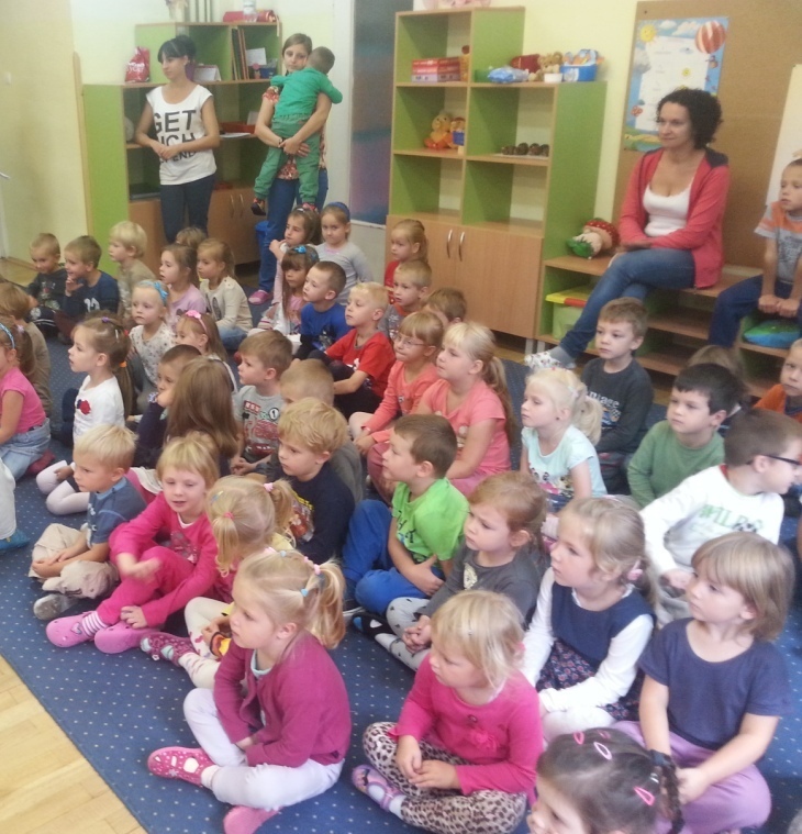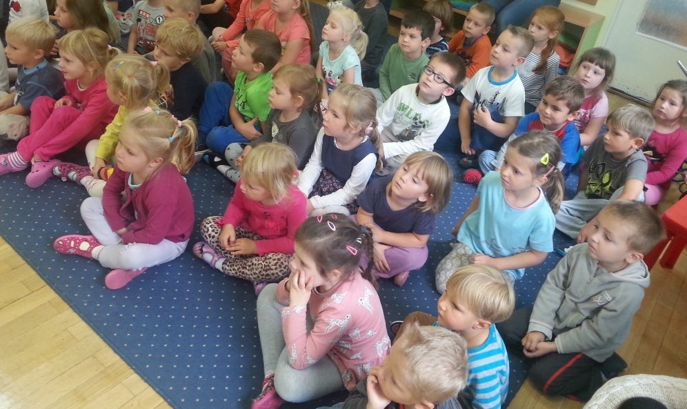 Dowiedzieliśmy się, że muzyka może mieszkać w każdym z nas, że nasze serca wybijają rytm, który możemy zagrać na instrumentach perkusyjnych, a nasze dłonie potrafią wyklaskać dowolny rytm. Kilkoro przedszkolaków - ochotników próbowało zagrać rytm na instrumentach takich jak: tamburyno, gong, dzwonki. Za swoją odwagę zostali nagrodzeni brawami.