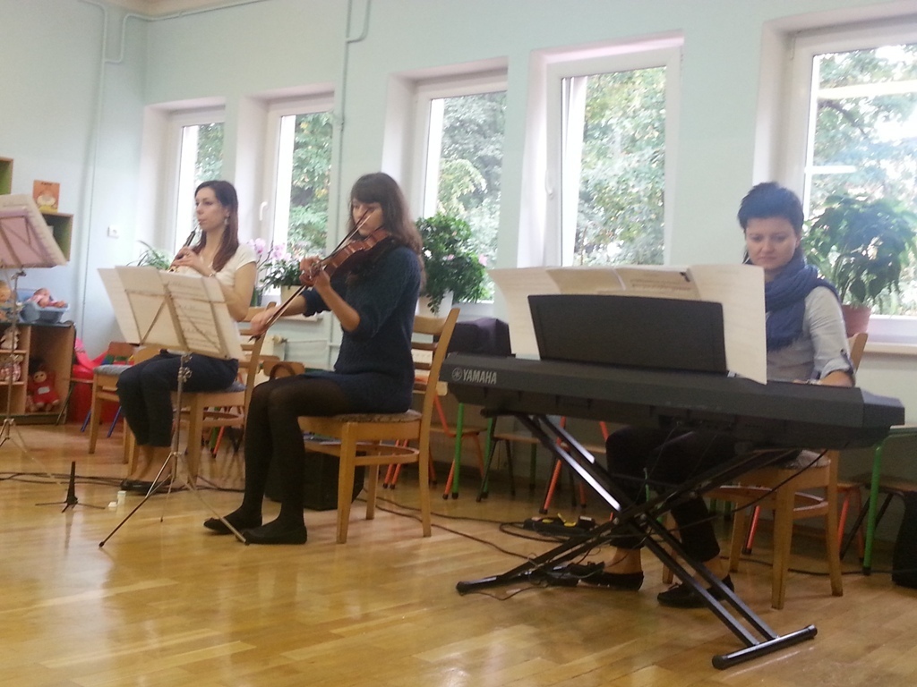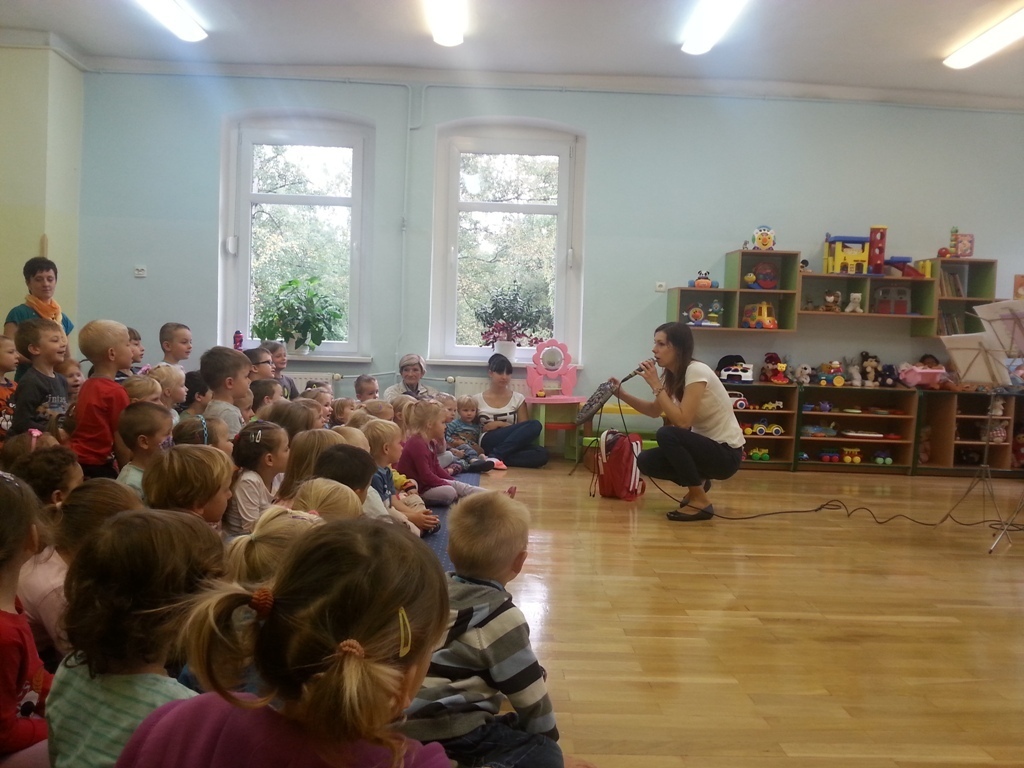 Dnia 19.09.2014 odbył się w przedszkolu pierwszy w tym roku szkolnym koncert muzyków z Filharmonii Dolnośląskiej. Dzieci wraz z artystami wybrały się w muzyczną podróż, aby odnaleźć odpowiedź na pytanie: gdzie mieszka muzyka ? Zastanawialiśmy się czy muzyka mieszka tylko w filharmonii ? Czy muzyką możemy nazwać dźwięki spotkane podczas wakacji, ukryte w szumie wiatru, pluskającej wodzie, czy odgłosie spadającej szyszki ? I gdzie właściwie muzyka ma swój dom?