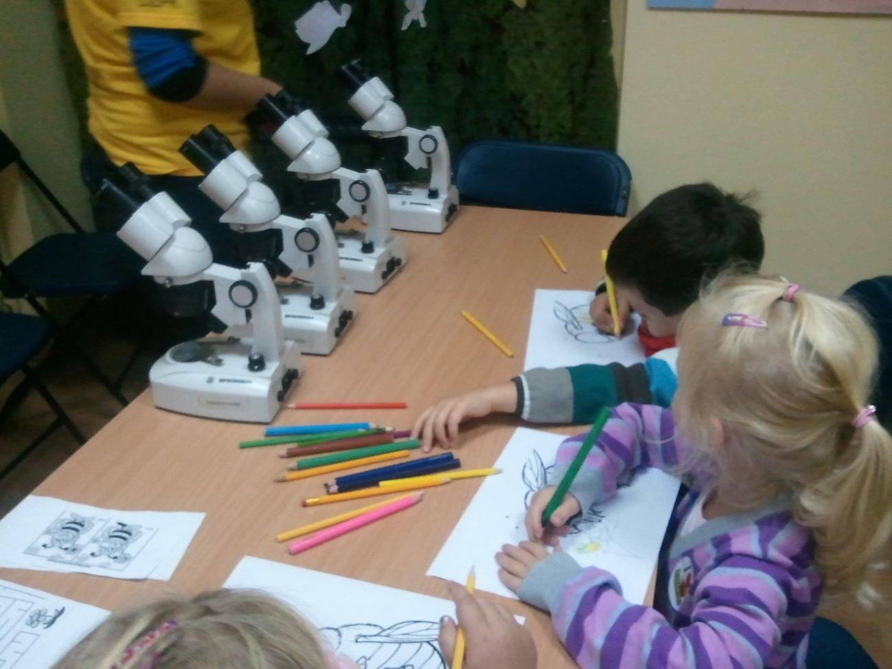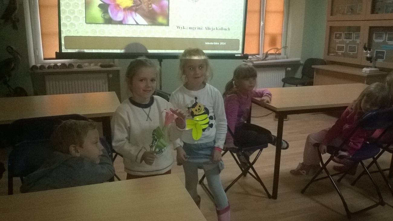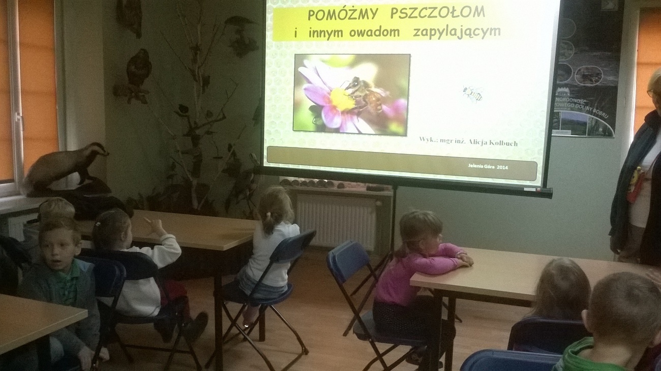Dnia 26.09 wybraliśmy się do Dolnośląskiego Zespołu Parków Krajobrazowych, na warsztaty dotyczące pomaganiu pszczołom. Dzieci z uwagą wysłuchały wprowadzenia dotyczącego zwyczajów pszczół i ich sposobu życia. Dowiedziały się jak zbudowana jest pszczoła, usłyszały o hierarchii pszczół i o tym jakie obowiązki mają poszczególne owady. Wiemy już skąd się wzięło powiedzenie "leniwy jak truteń", oraz co dobrego pszczoły robią dla naszego ekosystemu. Mieliśmy okazję zobaczyć jak wygląda taniec pszczół i co oznaczają poszczególone ruchy. Rozwiązywaliśmy specjalnie przygotowane dla nas zadania i łamigłówki. Najciekawszą częścią zajęć była możliwość obejrzenia owadów pod mikroskopem i przyjrzenia się im z bardzo bliska. Przez całe zajęcia towarzyszyła nam lubiana przez wszystkich Pszczółka Maja. Na koniec spotkania dzieci otrzymały małe upominki.