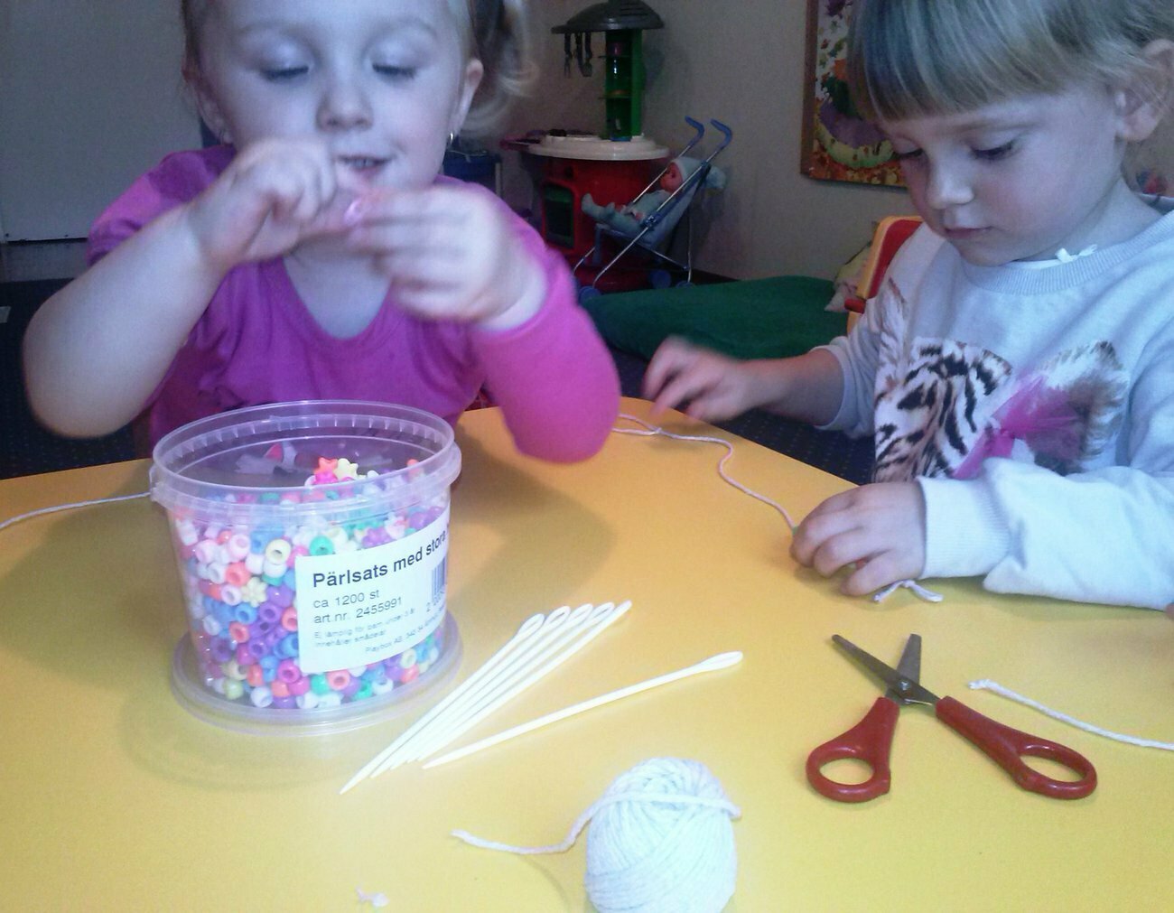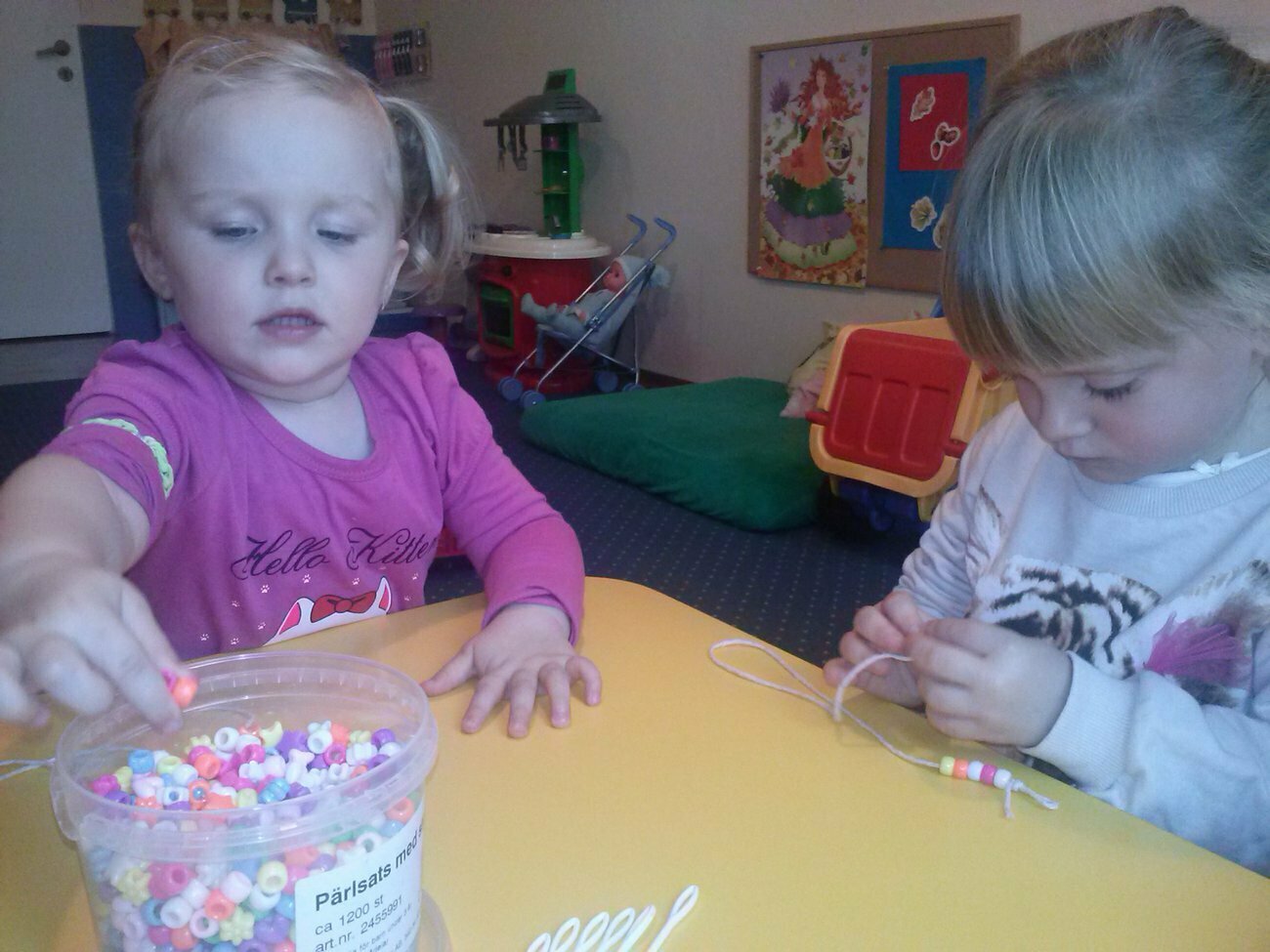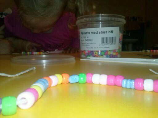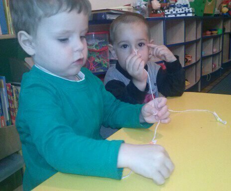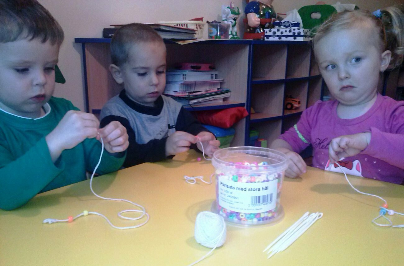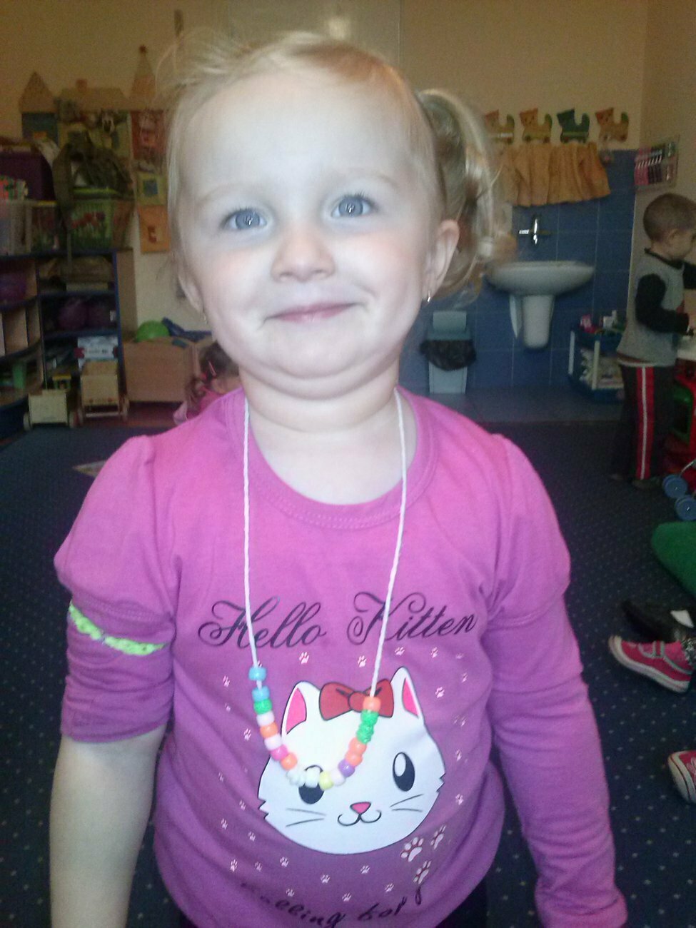 Dziś w przedszkolu trenowaliśmy sprawność naszych rączek. Była to przy tym świetna zabawa. Tworzyliśmy własne korale. Korzystając z przygotowanych przez naszą panią różnokolorowych paciorków i grubych nici oraz fantazji i inwencji tworzyliśmy fantazyjne naszyjniki i bransolety. Nie było to łatwe zadanie, gdyż nizanie koralików na nitkę wymaga skupienia i wielkiej koncentracji. Dobór barw również nie jest łatwy i żeby stworzyć naprawdę ładny naszyjnik trzeba użyć wyobraźni i nieźle się napracować. Warto było się pomęczyć, bo teraz możemy z dumą prezentować nasze wyroby i wzbudzać zazdrość i podziw innych przedszkolaków.