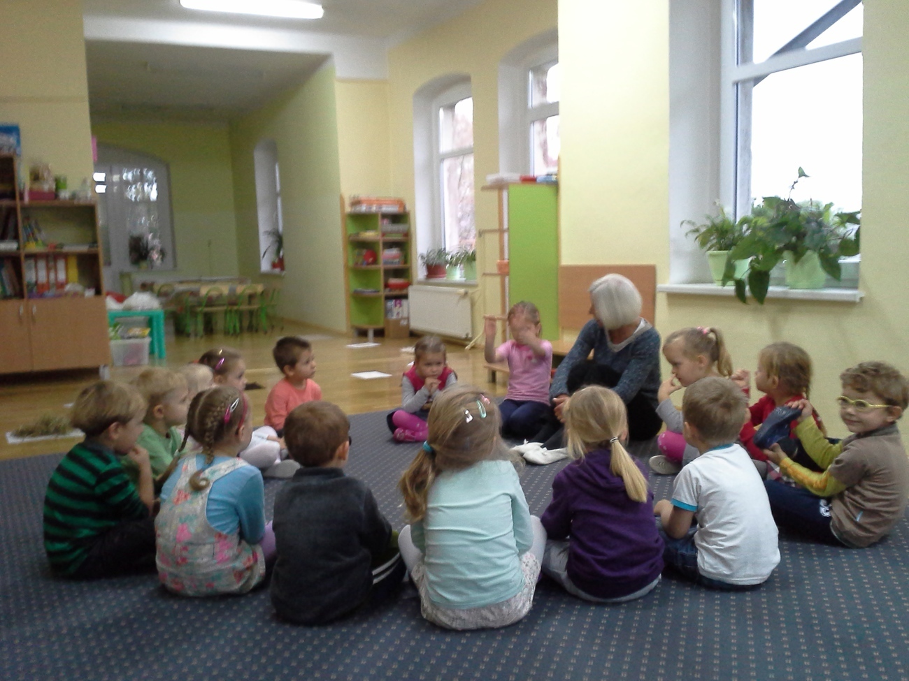 Dziś (23.10.2014) przyszła do nas z zajęciami pani Henia – przedszkolny psycholog. Opowiedziała nam piękną bajkę o uroczej ośmiorniczce Emmie i delfinku Felixie. Emma to ośmiorniczka, której brakowało dwóch odnóży ale potrafiła pięknie tańczyć, co zachwyciło Felixa. Historia kończy się wspaniałą przyjaźnią. Rozmawialiśmy o tym, co to znaczy, że ktoś jest „niepełnosprawny”, że inny nie oznacza gorszy od nas.