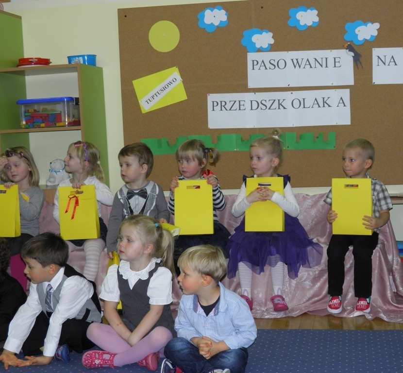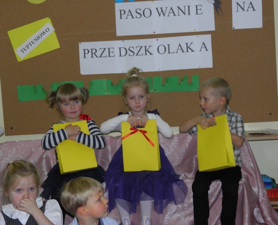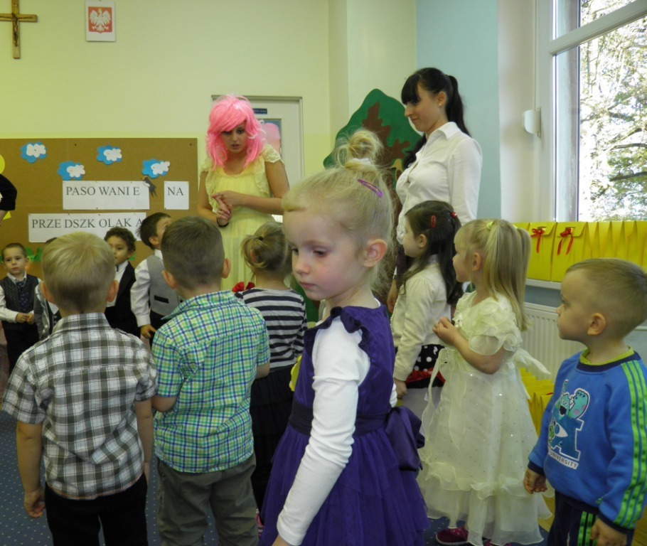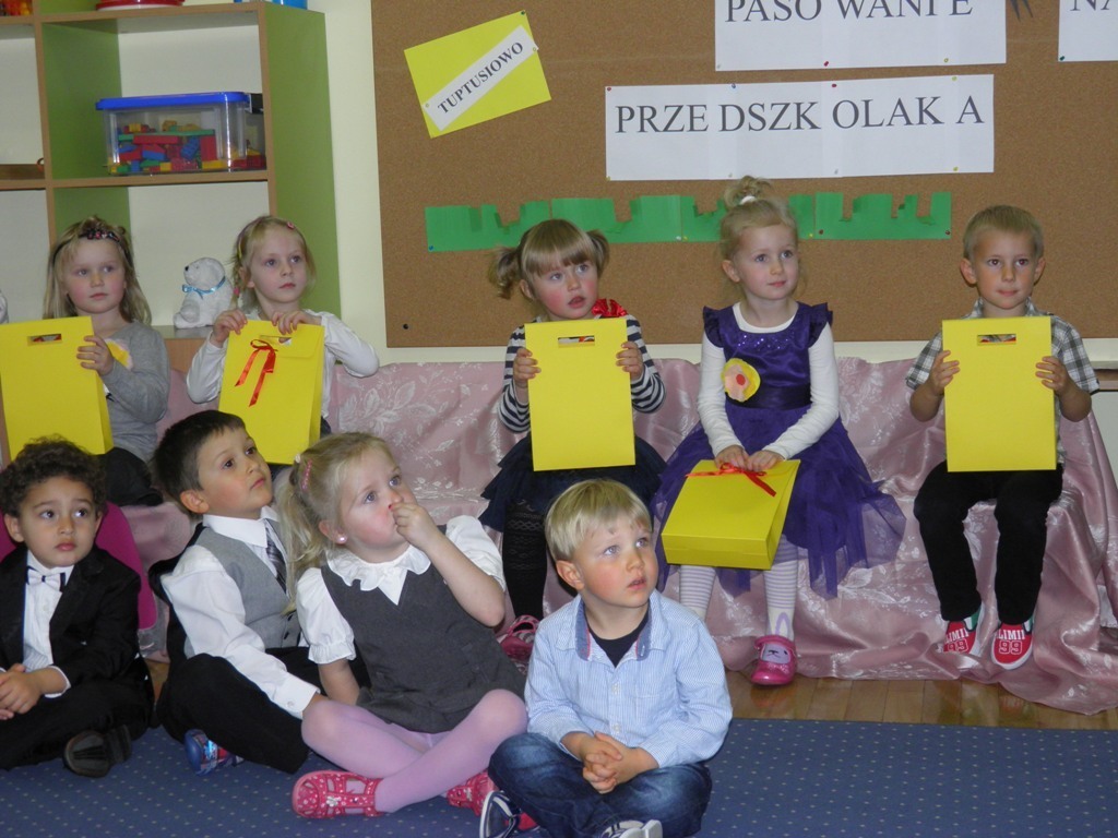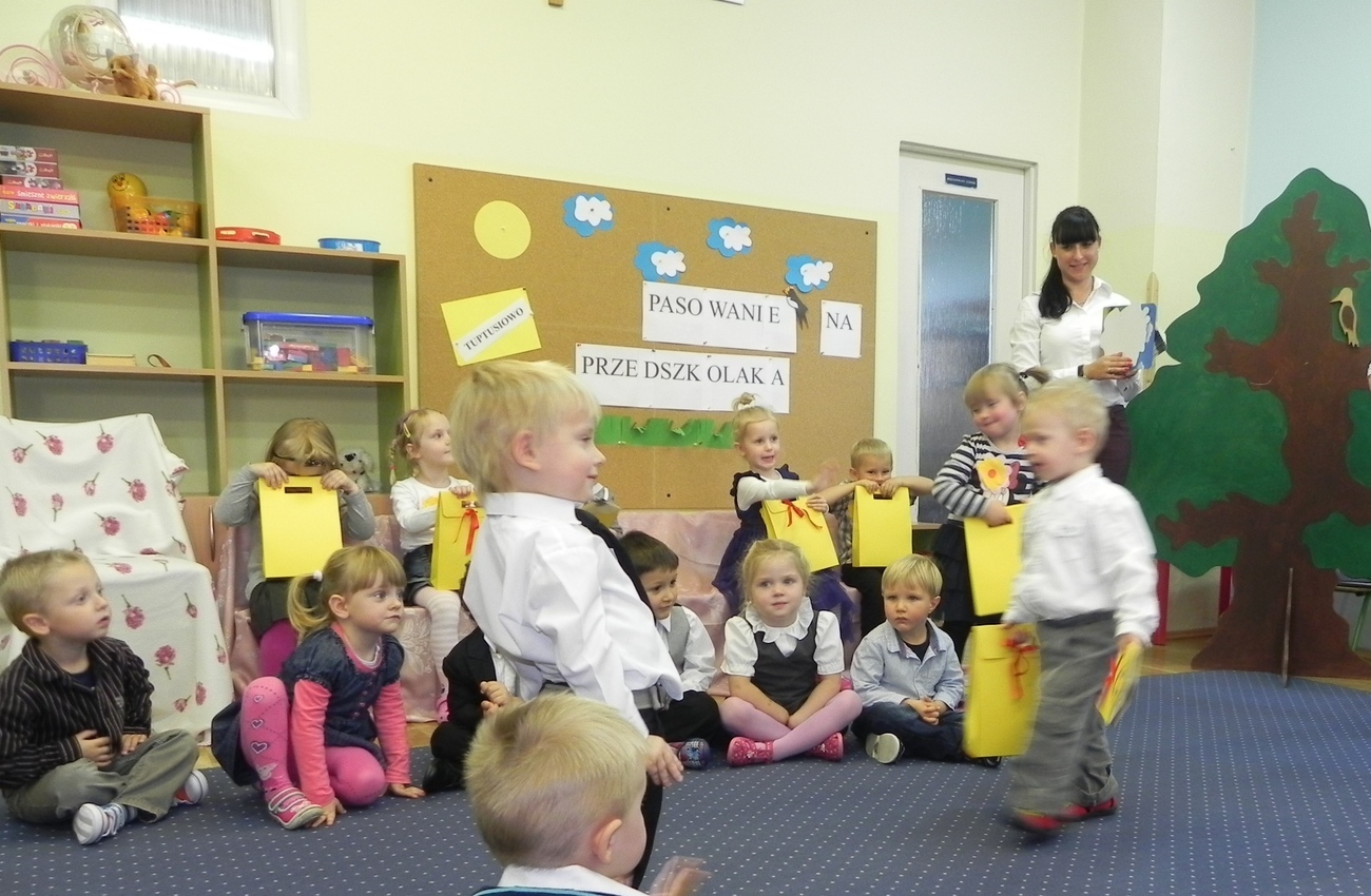 By dowieść, że jesteśmy już gotowi musieliśmy sprostać przeróżnym zadaniom. Każdy z nas ubrany w odświętny strój złożył uroczyste przyrzeczenie, następnie został pasowany na przedszkolaka. Stało się to przez lekkie uderzenie w ramię zaczarowanym ołówkiem. Dawniej król pasował w ten sposób giermków na rycerzy, zamiast ołówka używając miecza.