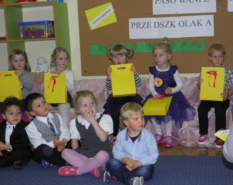 Uroczystość zakończyła się brawami, gratulacjami i rozdaniem prezentów. Oficjalnie stanowimy grupę Skrzatów i Tygrysków. Hurra!
