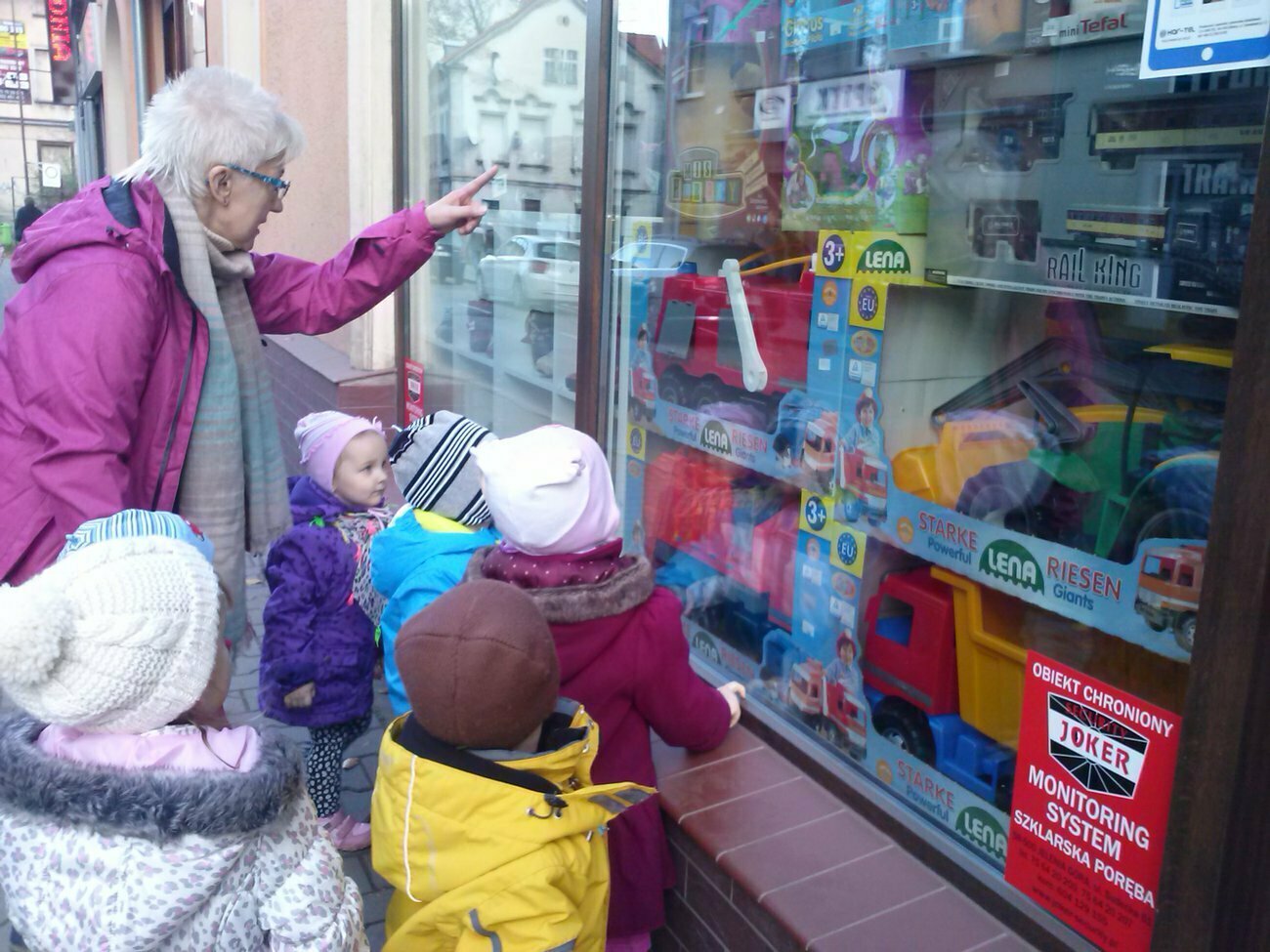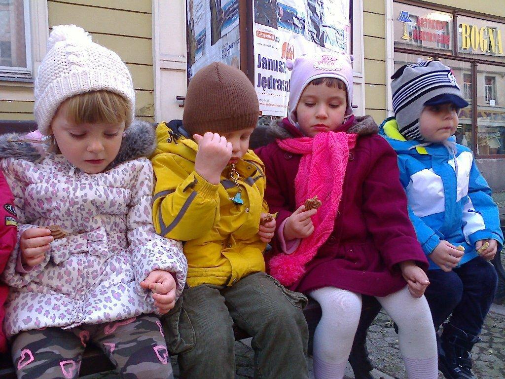 Wieść niesie, że na końcu świata można spotkać mnóstwo niezwykłych egzotycznych stworzeń. Aby je zobaczyć, trzeba podjąć trud dalekiej wyprawy, być dzielnym, wytrwałym i słuchać pani. Właśnie dziś nadszedł dzień, w którym nasza grupa Skrzatów postanowiła wyruszyć w podróż i zwiedzić to tajemnicze miejsce. Droga wiodła wzdłuż ulicy Wojska Polskiego. Musieliśmy pokonać liczne miejsca dla pieszych, rozgonić zuchwałe stado „gołombów” blokujących nam przejście, a nawet byliśmy świadkami pościgu policji za piratami drogowymi. Aby choć trochę odpocząć od trudów wyprawy zajrzeliśmy do mijanej właśnie cukierni. Skrzepieni pysznymi ciastkami wyruszyliśmy dalej. Skręciwszy w ulicę 1-go Maja doszliśmy do celu naszej wyprawy. Wprawdzie nie był to koniec świata ale mnóstwo cudownych i egzotycznych zwierząt spotkaliśmy i tak. Bo prawdziwym celem naszej wyprawy było Mikro Zoo pełne kolorowych rybek, węży, żółwi, jaszczurek i gryzoni.