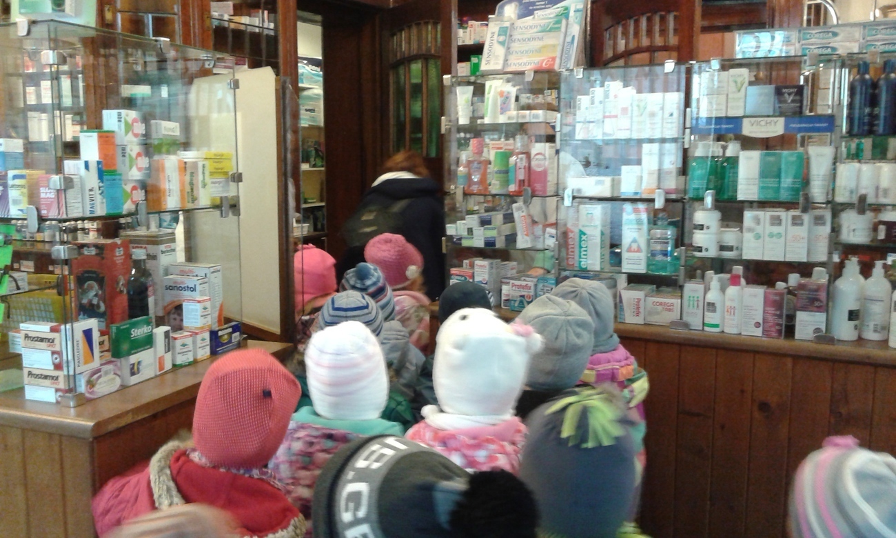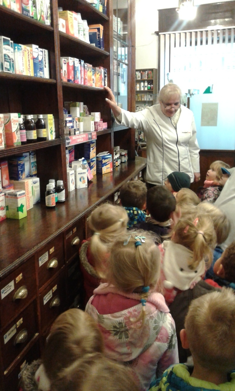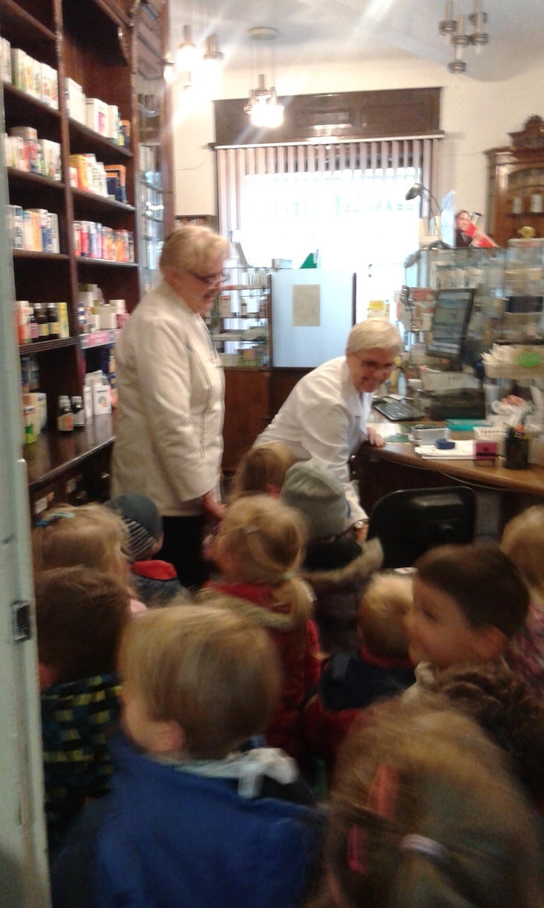 Tygryski było bardzo ciekawe co robi się w aptece, dlatego też wybraliśmy się do zaprzyjaźnionej apteki, która jest bardzo blisko naszego przedszkola.