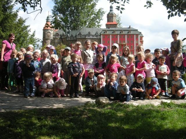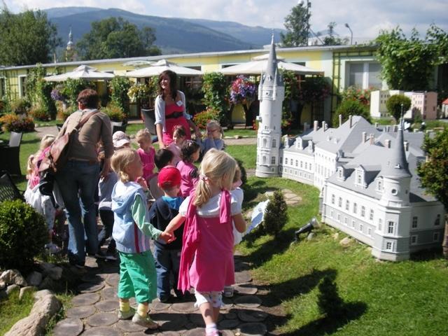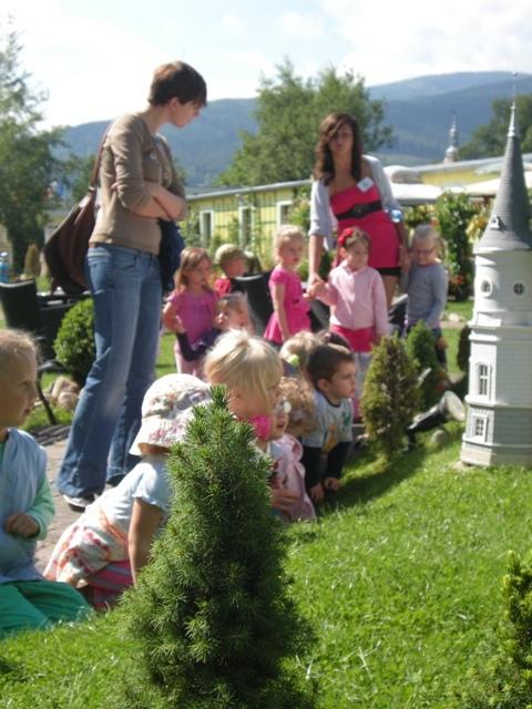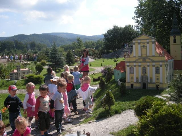 Do wycieczki przygotowaliśmy się wcześniej i kiedy nadszedł umówiony dzień wszyscy wyruszyliśmy. Pojechały z nami zarówno trzy latki jak i siedmiolatki, które po wakacjach odejdą do szkoły. Mieliśmy okazję zwiedzać Park Miniatur w Kowarach. W tym magicznym miejscu mogliśmy podziwiać zabytki Dolnego Ślaska takie jak pałace, klasztory, kościoły i starówki miast. Każdy z nas poczuł się jak olbrzym przemierzający świat w siedmiomilowych butach. W trakcie zwiedzania zaglądaliśmy we wszystkie zakątki parku w tym także do pracowni, w której powstają nowe projekty. To był niesamowity dzień. Wróciliśmy bardzo zadowoleni.
