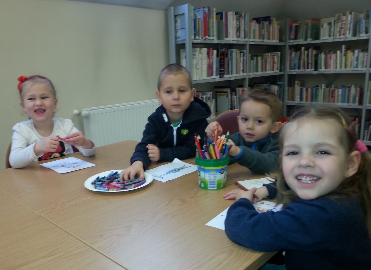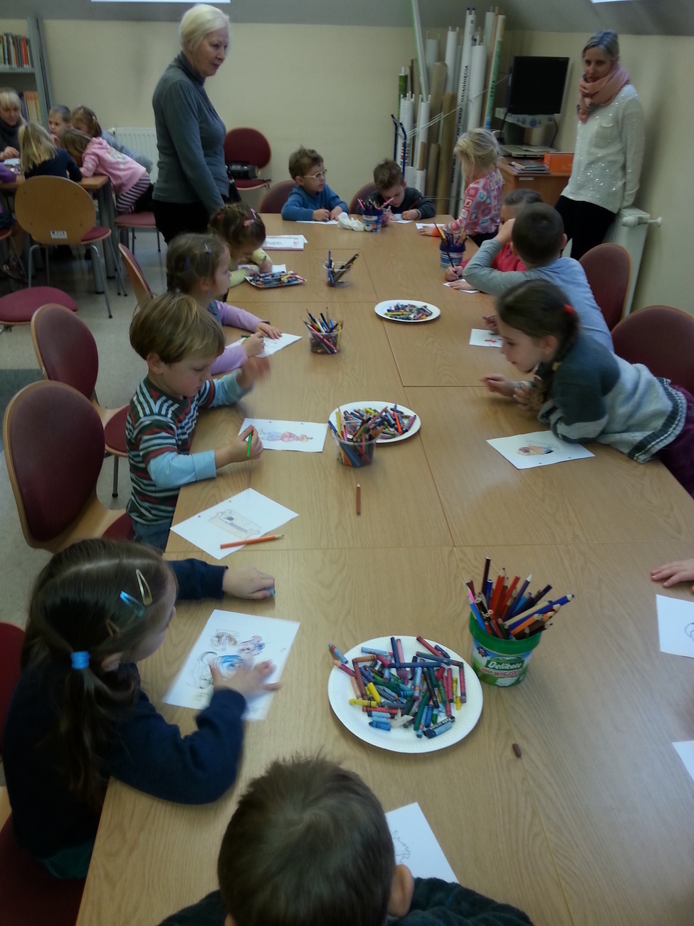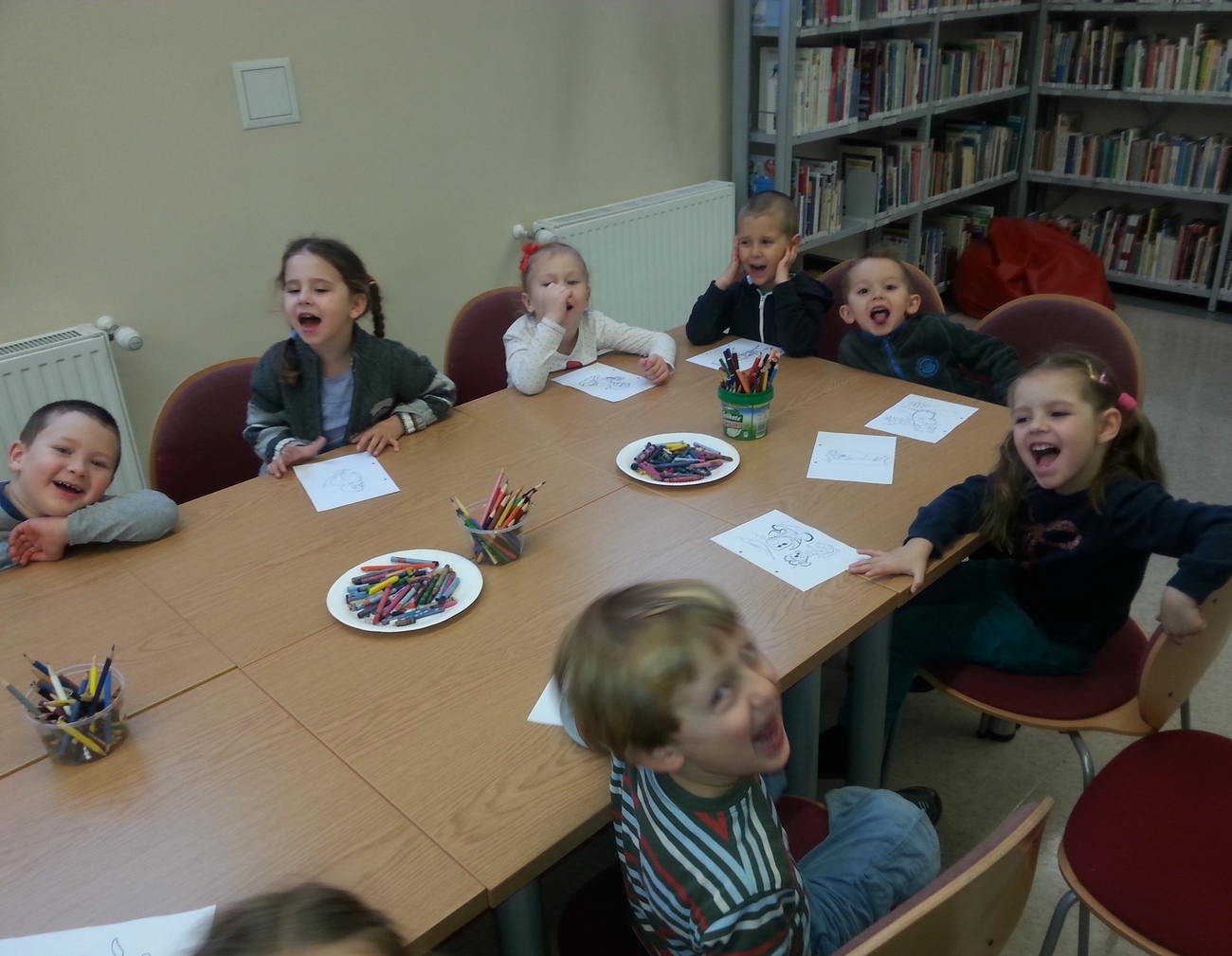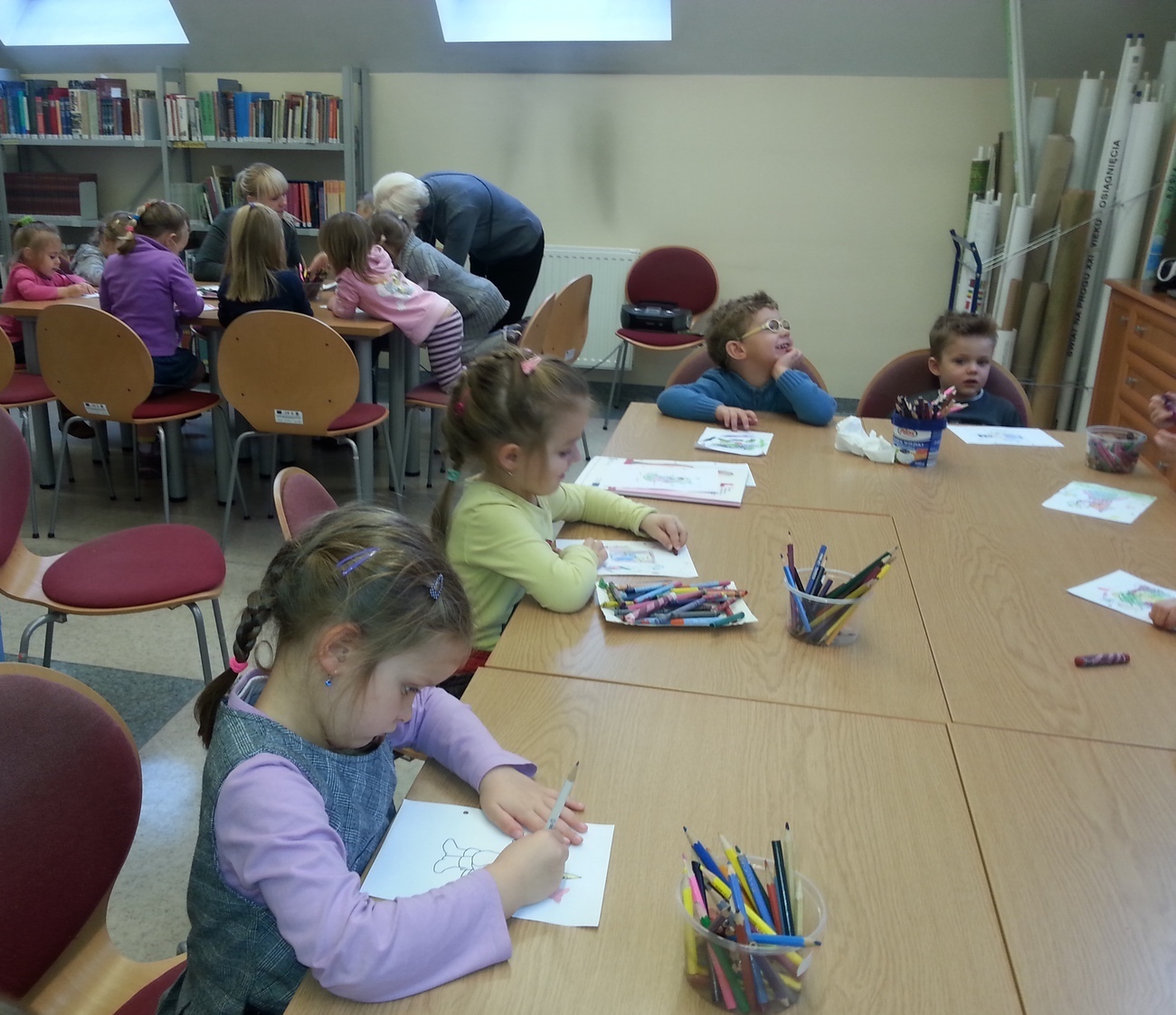 Udaliśmy się na nią do Książnicy Karkonoskiej, gdzie już nas oczekiwano. Jak zwykle specjalnie przygotowano dla nas część biblioteki dziecięco - młodzieżowej. Dzieci zapoznały się z budową książki oraz z osobami, które są odpowiedzialne za jej stworzenie. Przedszkolaki miały również niepowtarzalną możliwość samodzielnego stworzenia książeczki. W poniższej galerii prezentujemy zdjęcia z naszej wizyty oraz naszą grupową książeczkę.