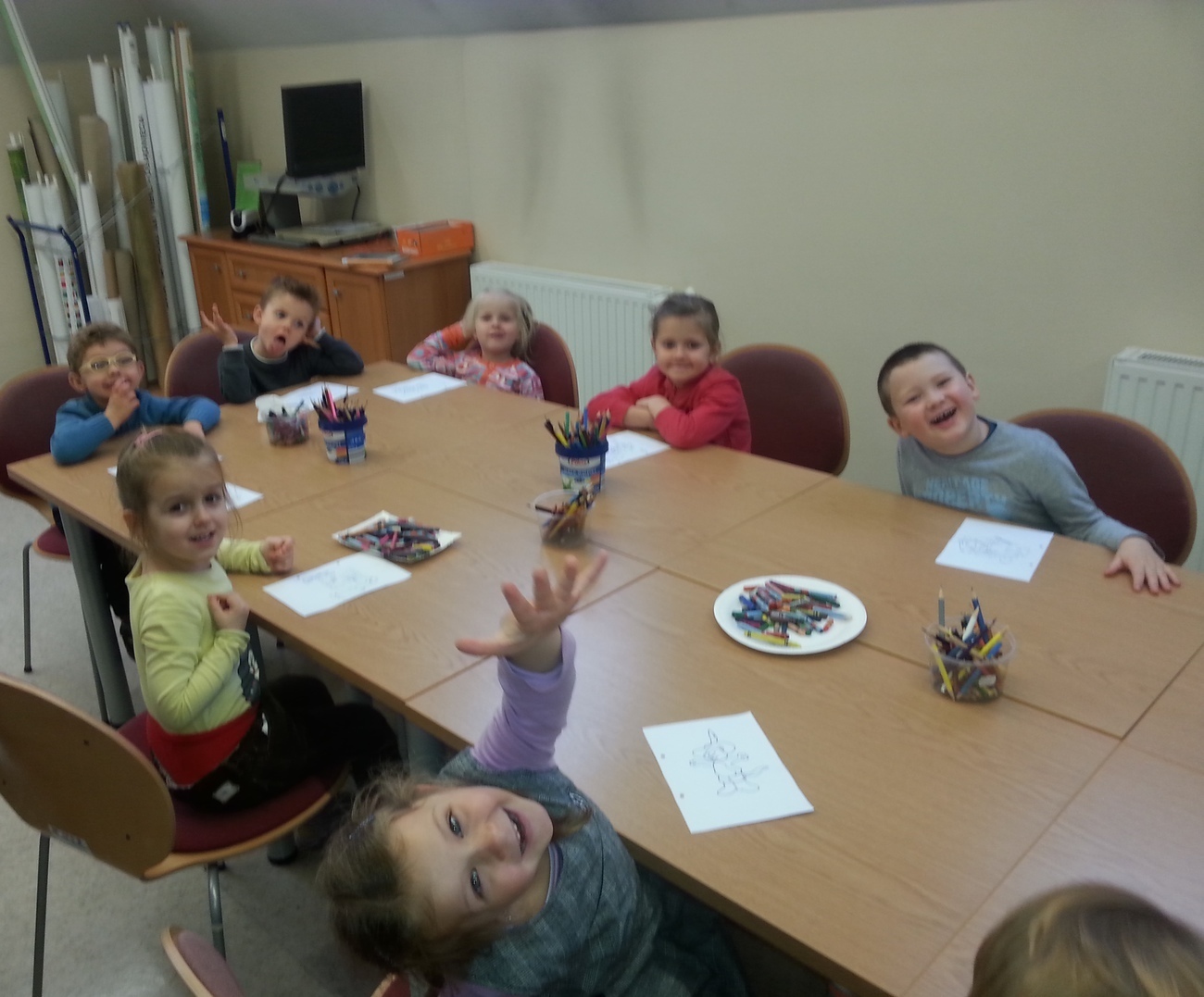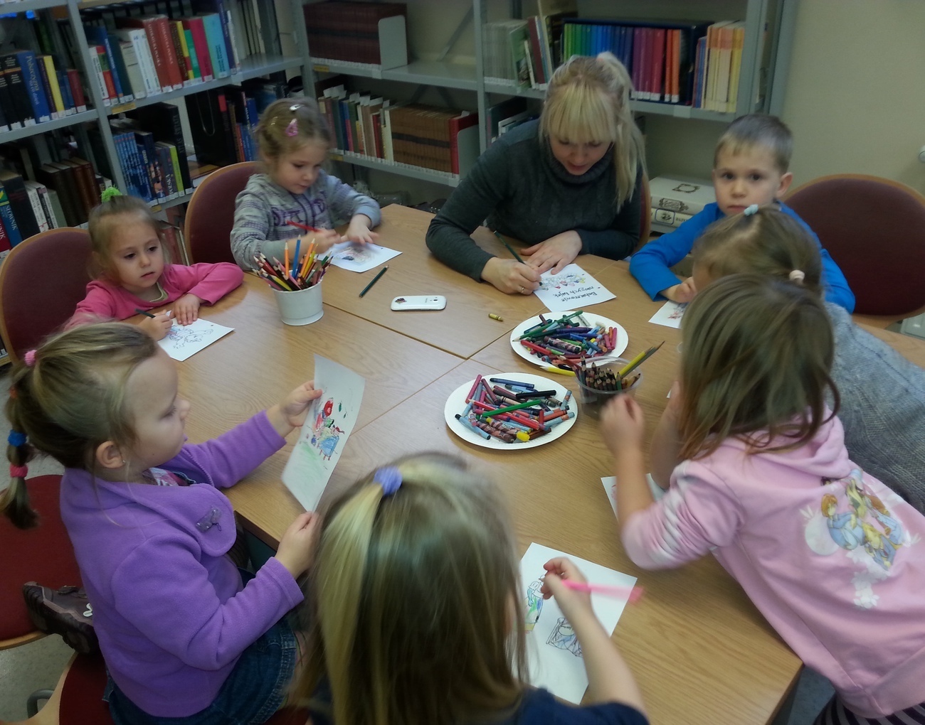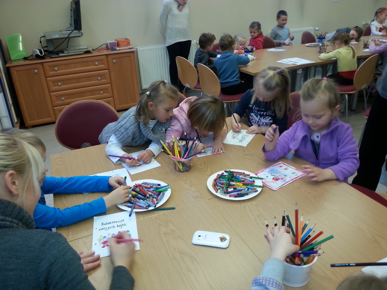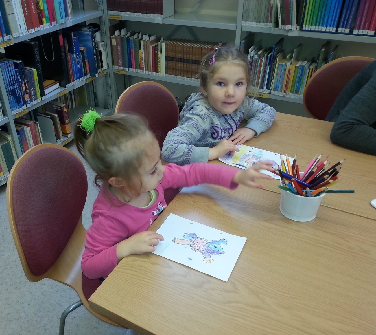 Udaliśmy się na nią do Książnicy Karkonoskiej, gdzie już nas oczekiwano. Jak zwykle specjalnie przygotowano dla nas część biblioteki dziecięco - młodzieżowej. Dzieci zapoznały się z budową książki oraz z osobami, które są odpowiedzialne za jej stworzenie. Przedszkolaki miały również niepowtarzalną możliwość samodzielnego stworzenia książeczki. W poniższej galerii prezentujemy zdjęcia z naszej wizyty oraz naszą grupową książeczkę.