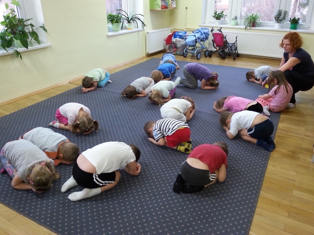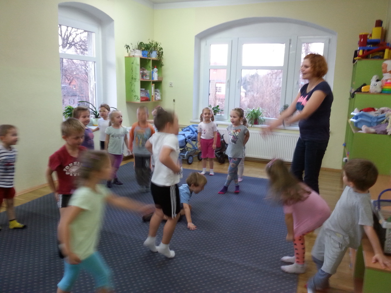 „Jesienna pogoda” to tytuł zajęć otwartych przygotowanych przez grupę - Żabek dla ich rodziców. Nasi goście mieli okazję obserwować, w jaki sposób prowadzone są zajęcia ruchowe, jak w nich uczestniczą ich dzieci, oraz jak samodzielne są nasze przedszkolaki. Każde z dzieci chciało zaprezentować się z jak najlepszej strony przed swoimi rodzicami.