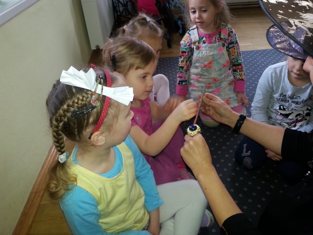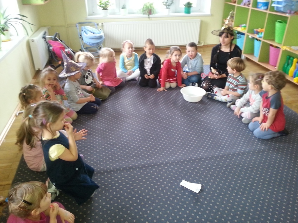 W naszej grupie odbyło się wielkie czarowanie! Wróżyliśmy kim zostaniemy w przyszłości, oraz dowiedzieliśmy się co nas czeka. Zrobiliśmy wyścig butów, żeby sprawdzić komu z nas spełni się najskrytsze marzenie. Wrzucaliśmy również monety do zaczarowanej studni - legenda głosi, że komu uda się trafić pieniążkiem do niej - będzie miał wielkie szczęście!