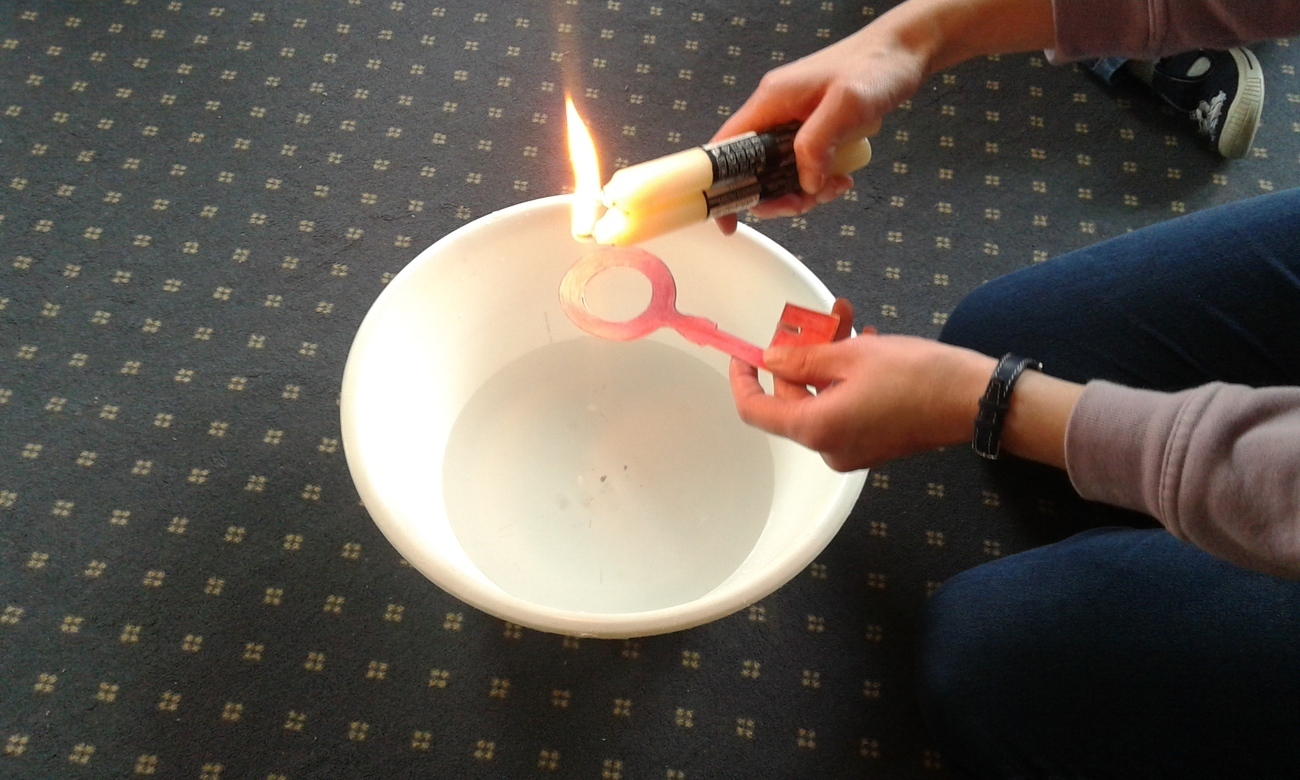 Najbardziej podobała nam się wróżba z wosku. Topiliśmy świeczkę, przez ucho od klucza, a wosk przelewał się do miski z wodą. Sprawdziliśmy cień naszej figurki na ścianie. Każdy z nas widział co innego, jedni mówili że to jakiś stworek, a jeszcze ktoś inny, że jeżyk. Pomysłów było co niemiara! Świetnie się przy tym bawiliśmy.