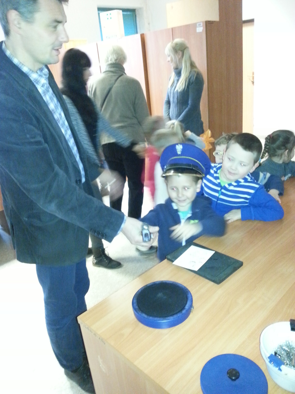 Dzięki uprzejmości pani Naczelnik Urzędu Pocztowego Jelenia Góra 14 grupa Żabek odwiedziła pocztę. W przewodnika zamienił się pan kierownik Tomasz Dobiecki. Zabrał on dzieci w „podróż” po poczcie. Żabki dowiedziały się, jaka jest droga listu zanim trafi do naszych rąk, co trzeba zrobić, żeby w ogóle go wysłać. Sami również nadaliśmy list do Mikołaja. Każde z dzieci miało możliwość przymierzenia czapki listonosza i przybicia datownika na pocztówce. Dzieci mogły zobaczyć, co można kupić na poczcie, w jakim celu ustawiamy się w kolejce do okienka i co robi w nim siedząca pani. Wszystkie przedszkolaki otrzymały pamiątkowe pocztówki z Jeleniej Góry. Nasza wyprawa na jeleniogórskie Zabobrze miała jeszcze jeden, bardziej ukryty cel: podróż autobusem MZK. Niektóre z dzieci miały okazję pierwszy raz podróżować tym środkiem transportu. Dzięki temu każde z nich wie, jak bezpiecznie należy zachowywać się w czasie jazdy, że przy wsiadaniu należy skasować bilet. Śmiało możemy stwierdzić, że przemieszczanie się autobusem „czerwonym” samo w sobie jest już przygodą, w której już kolejny raz uczestniczy z nami w roli dodatkowego opiekuna niezastąpiona babcia Szymona, której serdecznie dziękujemy.