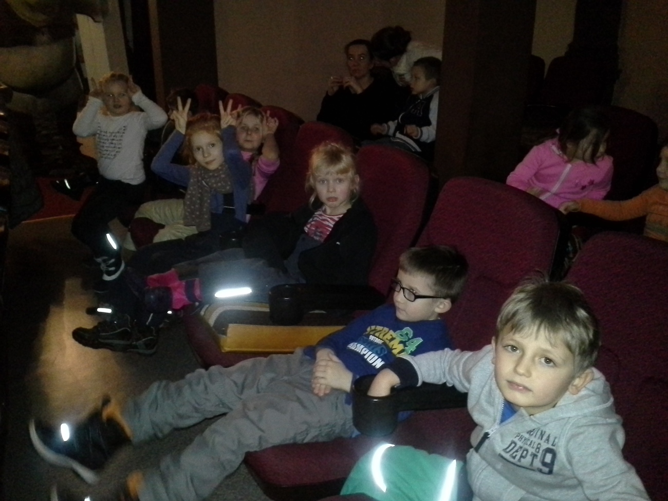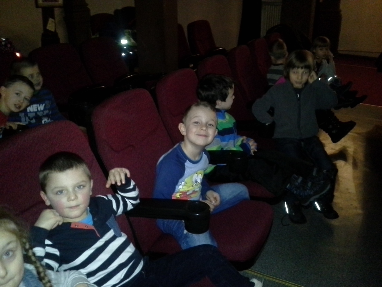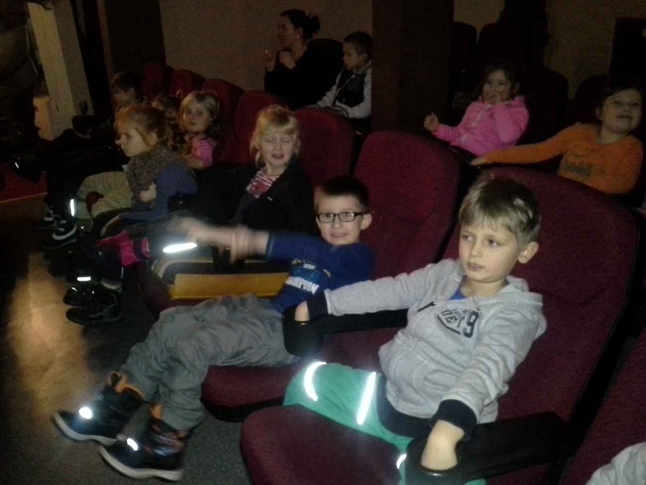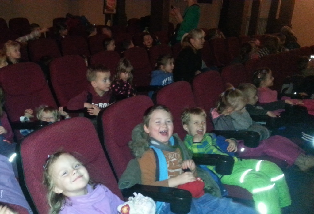 Drogę na seans wszystkie przedszkolaki pokonały pieszo i okazało się, że te nóżki, zwłaszcza w młodszych grupach, potrafią zanieść dość daleko. Dwie najmłodsze grupy miały okazję pierwszy raz zasiąść w kinowych fotelach razem z kolegami i koleżankami ze starszych grup.