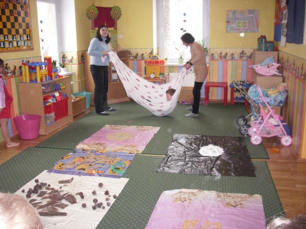 Dzieci bardzo chętnie uczestniczyły w zajęciach i z odwagą wkraczały na ścieżkę zmysłów. Na koniec wszyscy stwierdzili, że najwięcej radości sprawiło im bujanie w kocu i że nie mogą się już doczekać kolejnych zajęć.