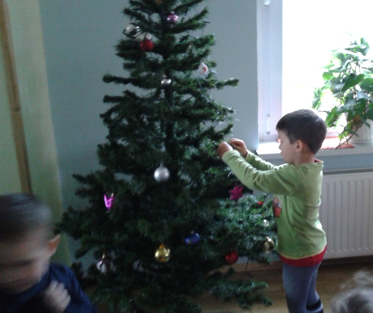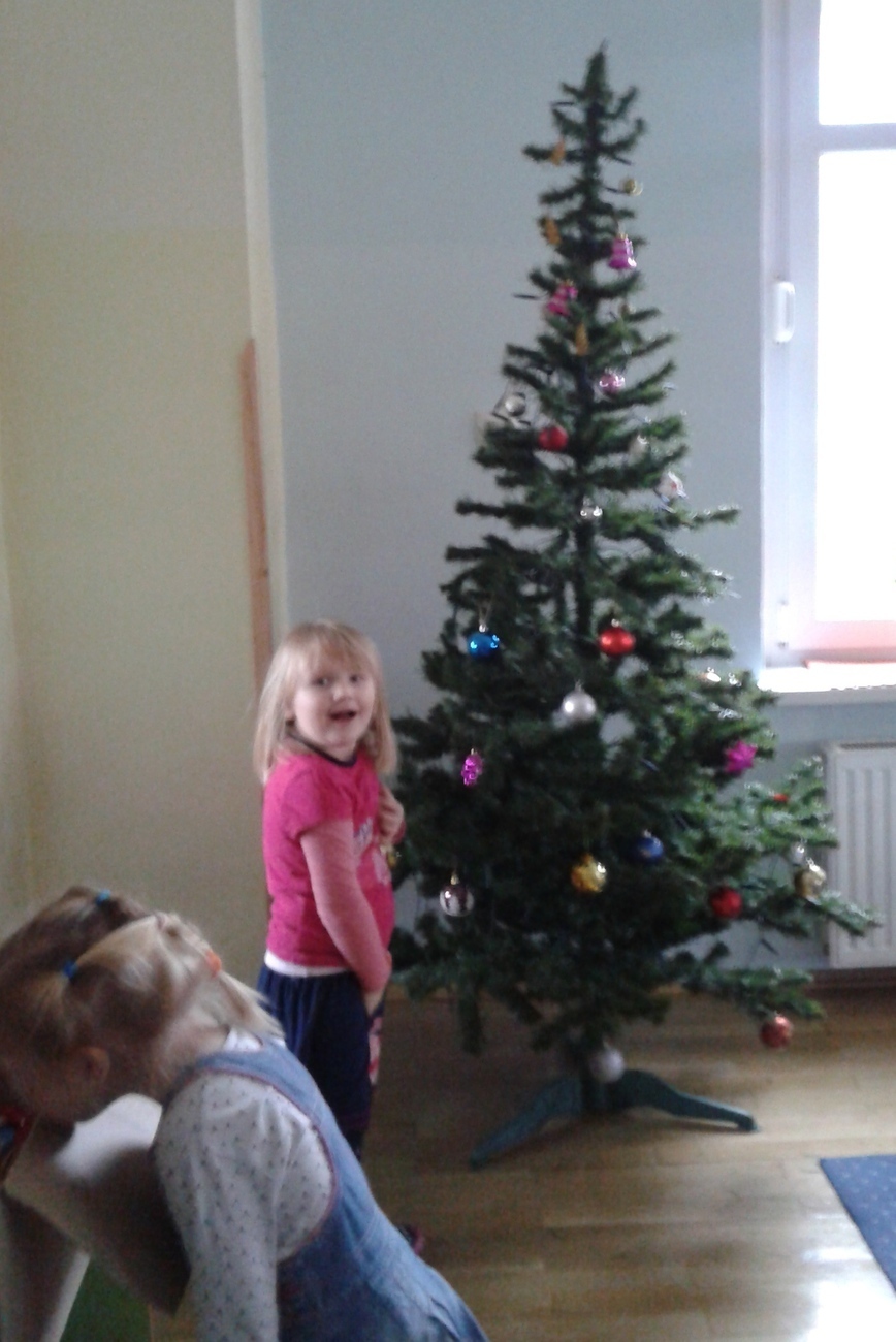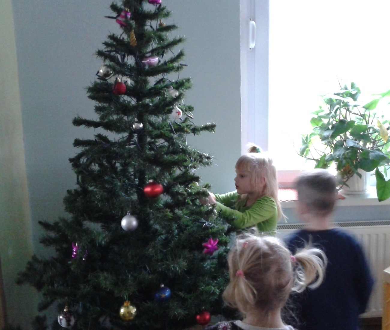 By tradycji stało się zadość, każda grupa przedszkolna, gdy zbliżają się święta Bożego Narodzenia musi ubrać choinkę.