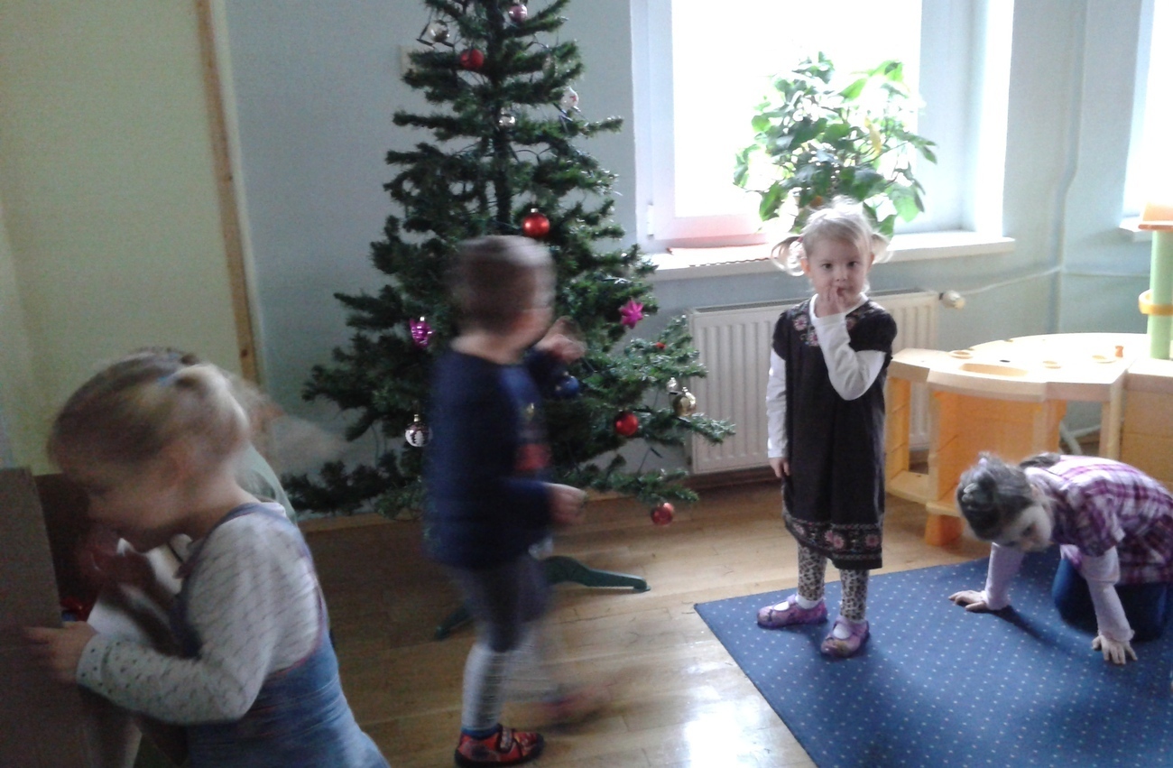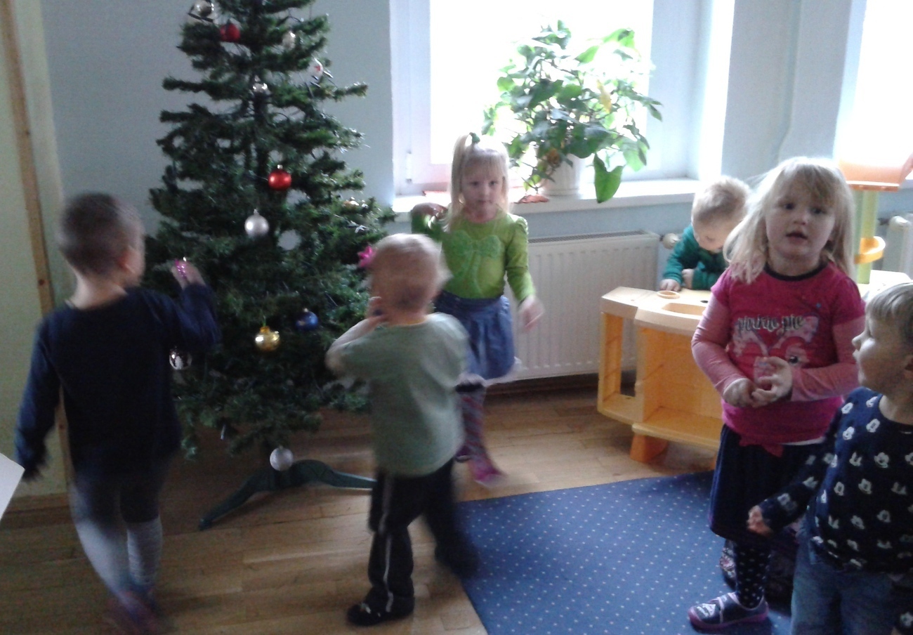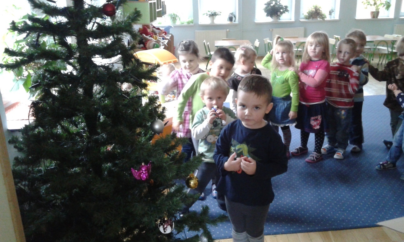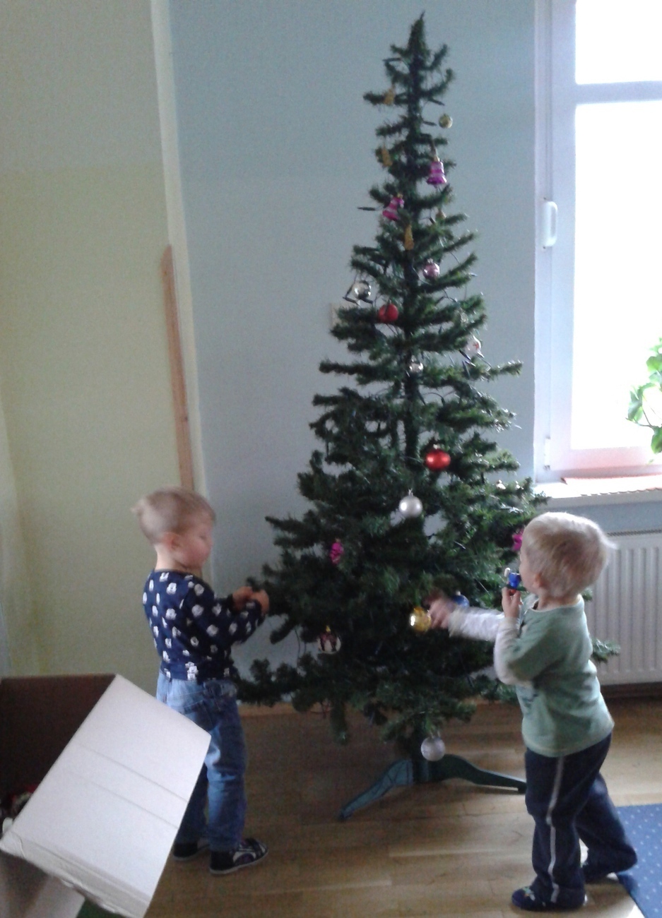 By tradycji stało się zadość, każda grupa przedszkolna, gdy zbliżają się święta Bożego Narodzenia musi ubrać choinkę.