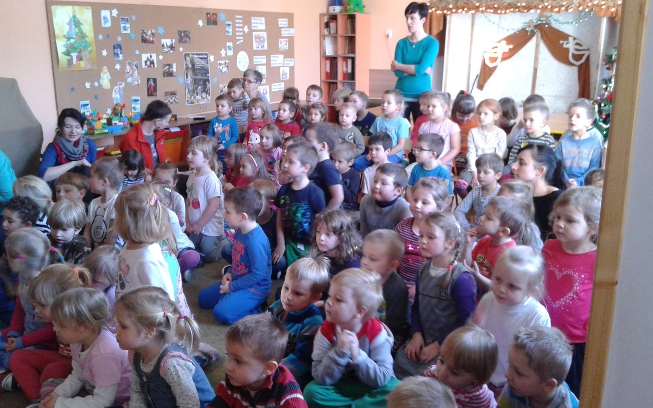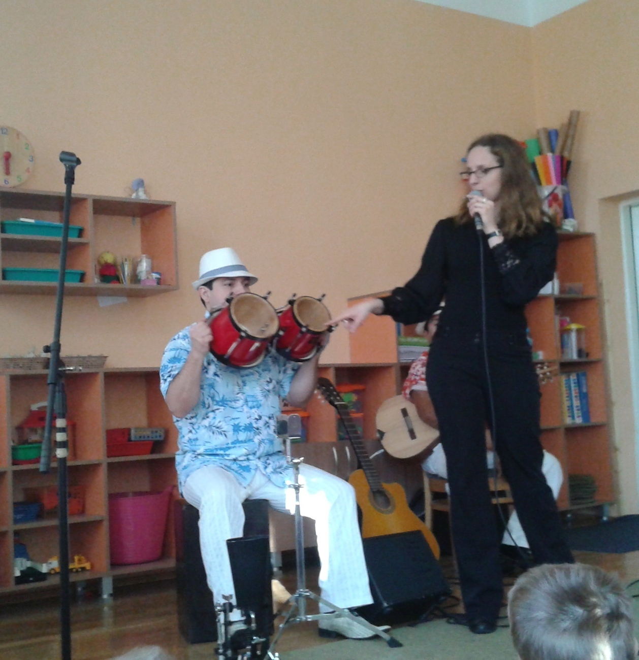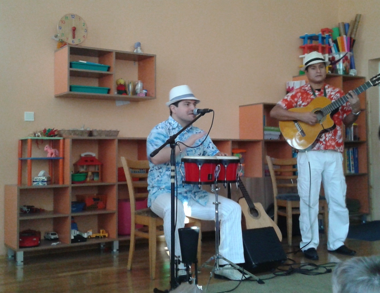 Dziś w naszym przedszkolu zagościli egzotyczni goście prosto zza oceanu pan Rolando Escalante, Alfaro Alvarado oraz Victor Martinez . Przybyli muzycy przybliżyli nam w ten zimowy dzień muzykę prosto z Kuby i Brazylii. Wszyscy bardzo chętnie ruszyliśmy do tańca, do którego zaprosiła nas muzyka. Każdy słuchał jak zaczarowany, a nogi i ręce same ciągnęły nas do tańca. Wspólnie bawiliśmy się przy Macarenie, Lambadzie i wielu innych utworach porywających do zabawy. Dzieci zaskakiwały muzyków znajomością słów do piosenki Nosa nosa Asi voce Me mata. Poznając kulturę latynoską dowiedzieliśmy się co nieco o instrumentach przywiezionych z bardzo daleka takich jak cajon. Nauczyliśmy się również rozróżniać tres od gitary akustycznej ale najważniejsze poznaliśmy krok samby – w sam raz na karnawałowe szaleństwo.