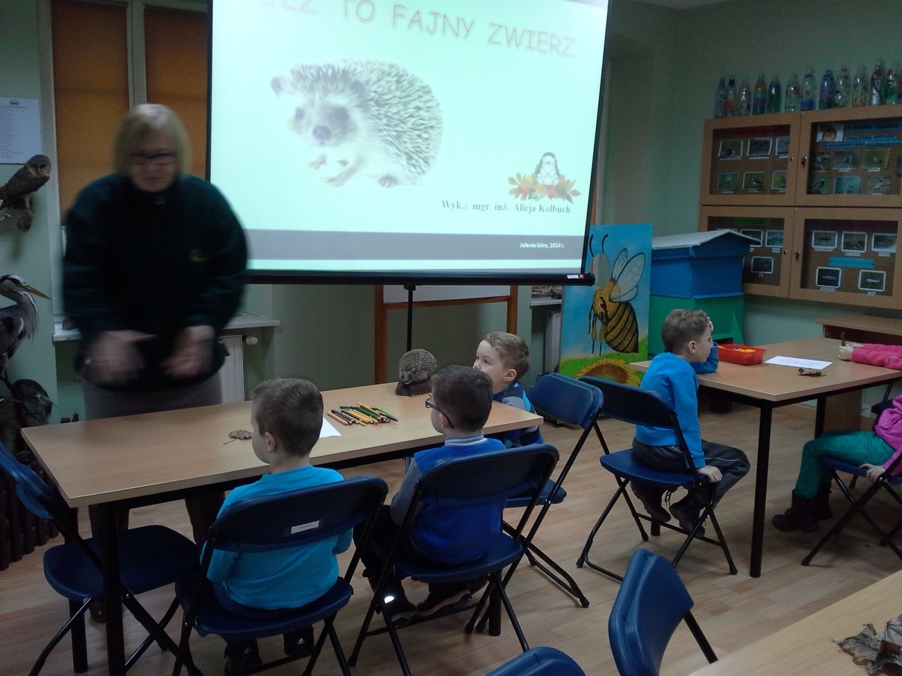 Dziś braliśmy udział w warsztatach w Dolnośląskim Zespole Parków Krajobrazowych w Sobieszowie na temat życia jeży. Dowiedzieliśmy się, gdzie zamieszkują jeże, czym się żywią, jakie mają zwyczaje. Wiemy też, że jeże w zimie hibernują - to znaczy że zapadają w sen zimowy oraz, że są one pod ochroną.