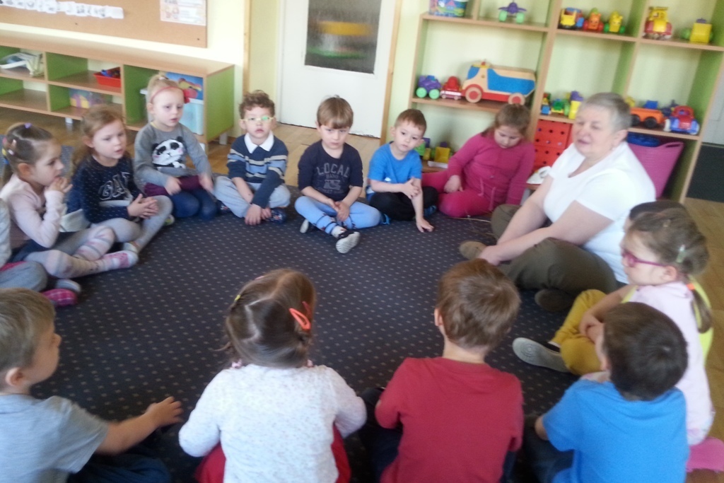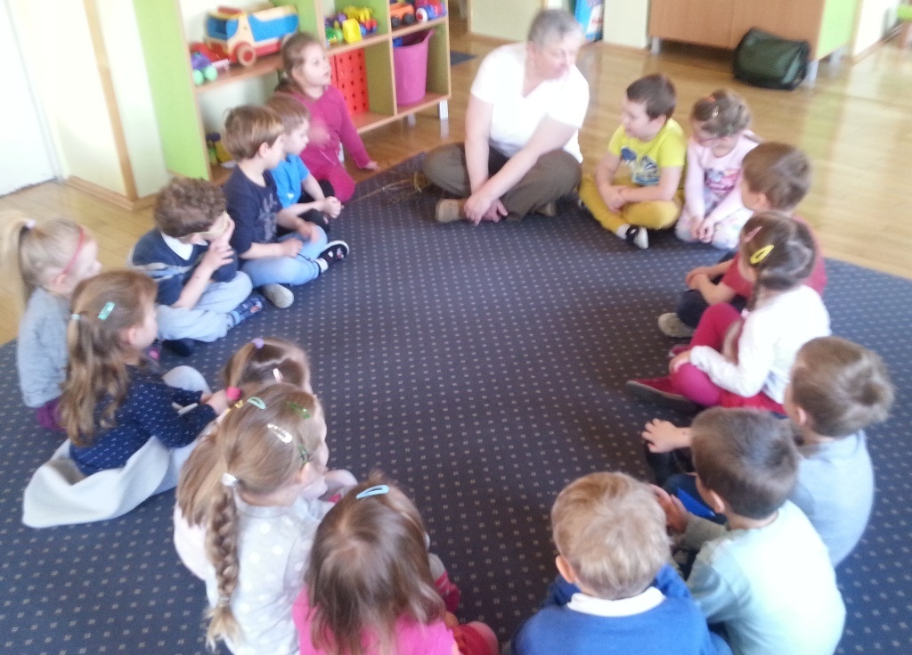 W poniedziałkowe przedpołudnie grupę Żabek odwiedziła pani Bogusia - edukator z Nadleśnictwa Śnieżka w Kowarach.