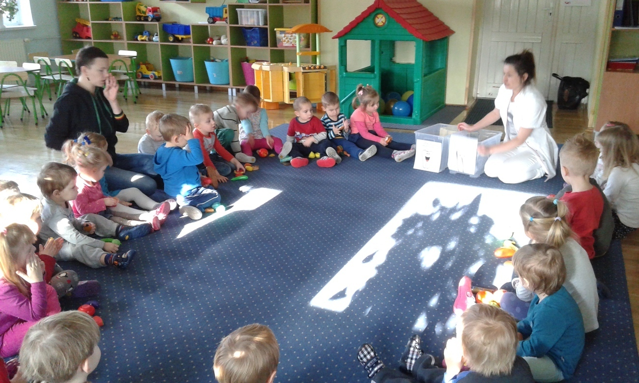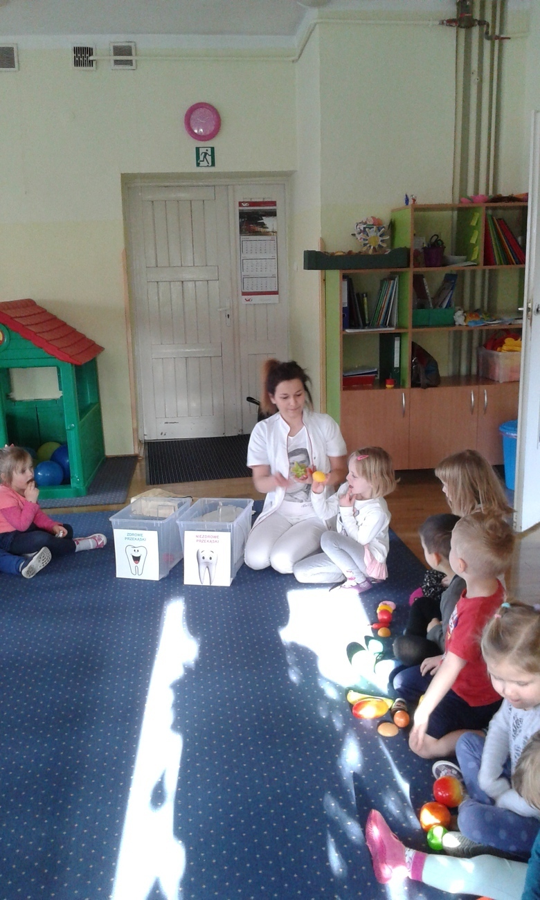 Pani stomatolog przywiozła dwa wielkie pudła zabawkowych warzyw, owoców, pieczywa, nabiału, ale też niezdrowych produktów.