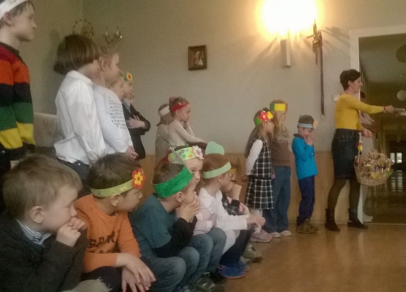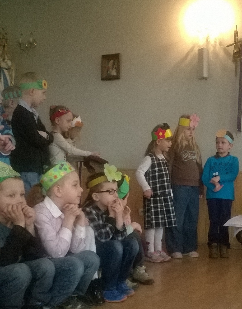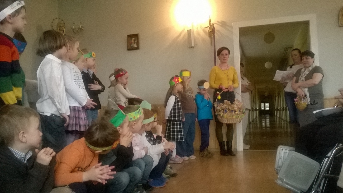 Dzieci przygotowały dla wszystkich pensjonariuszy przepiękne przedstawienie o wiośnie pt. Czy to zima, czy to wiosna. Z samego rana zaraz po śniadaniu wszyscy byliśmy bardzo podekscytowani przedstawieniem, aczkolwiek przejmowaliśmy się czy też ta pogoda nie pokrzyżuje nam planów, przecież nie mogliśmy zawieść wszystkich osób, które z utęsknieniem oczekiwały na wizytę dzieci.