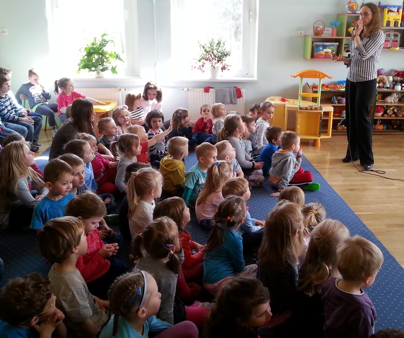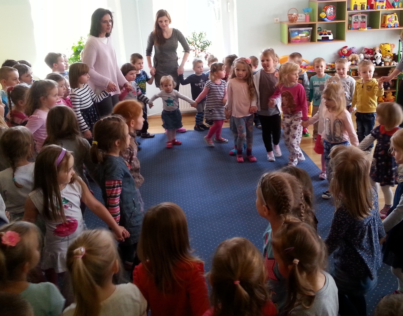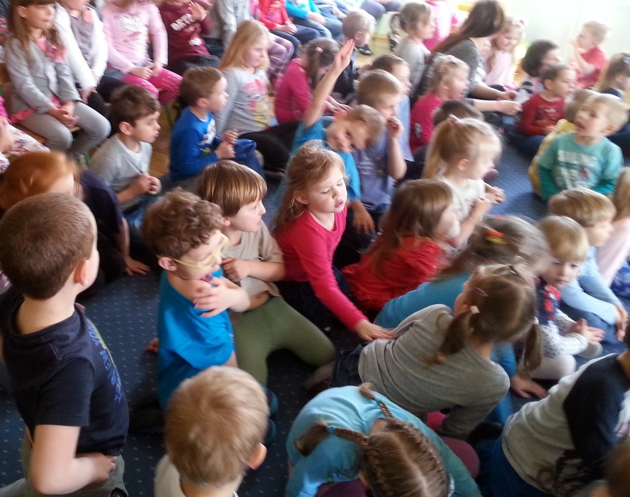 Do przedszkola wraz ze słońcem przybyli muzycy z Filharmonii Dolnośląskiej z koncertem pt. „My Słowianie”. Dowiedzieliśmy się, gdzie mieszkali starzy Słowianie i czym się żywili. Ku naszemu zdziwieniu wszyscy potrafimy śpiewać w języku słowackim, to banalnie proste.