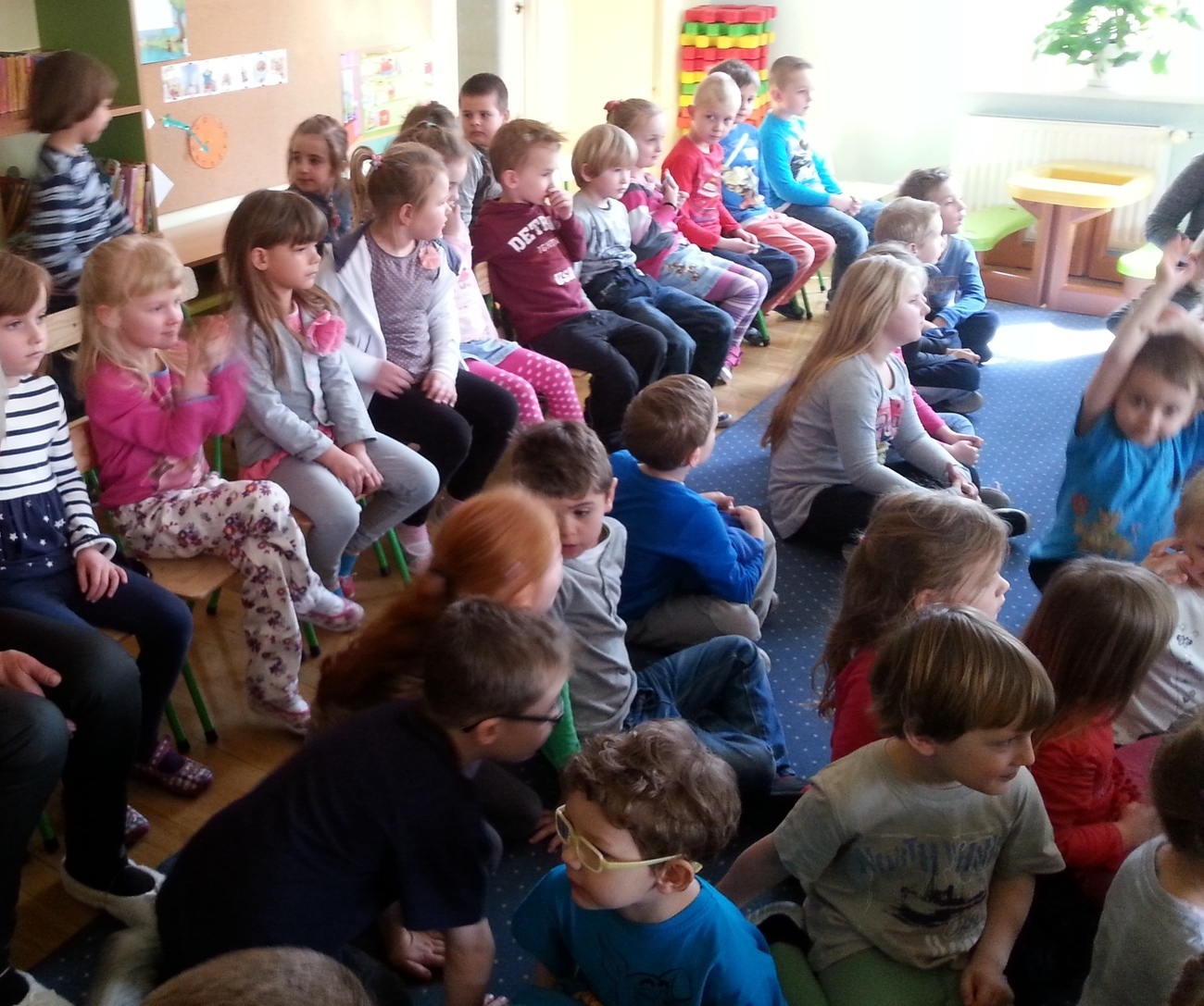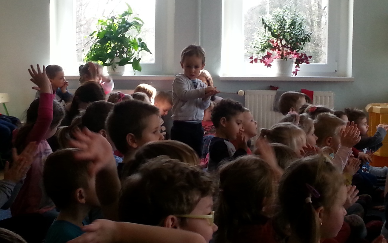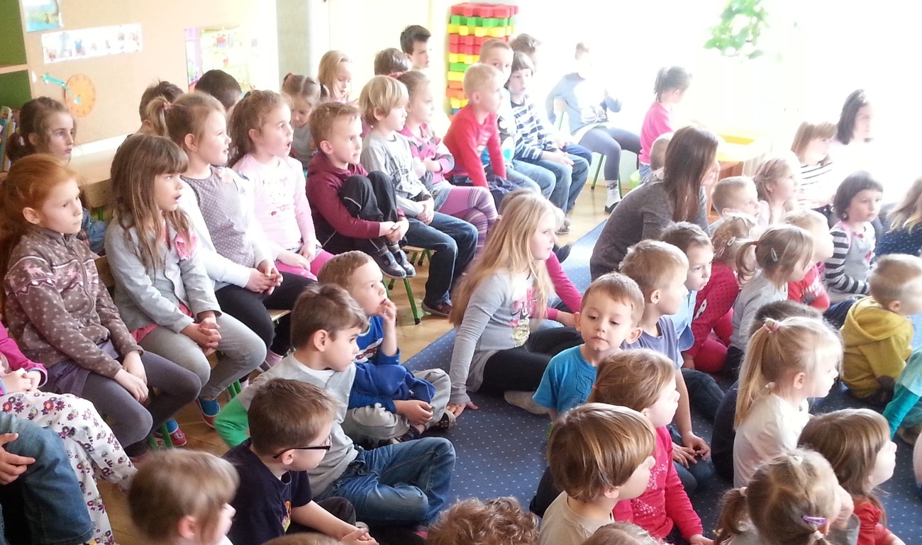 Do przedszkola wraz ze słońcem przybyli muzycy z Filharmonii Dolnośląskiej z koncertem pt. „My Słowianie”. Dowiedzieliśmy się, gdzie mieszkali starzy Słowianie i czym się żywili. Ku naszemu zdziwieniu wszyscy potrafimy śpiewać w języku słowackim, to banalnie proste.