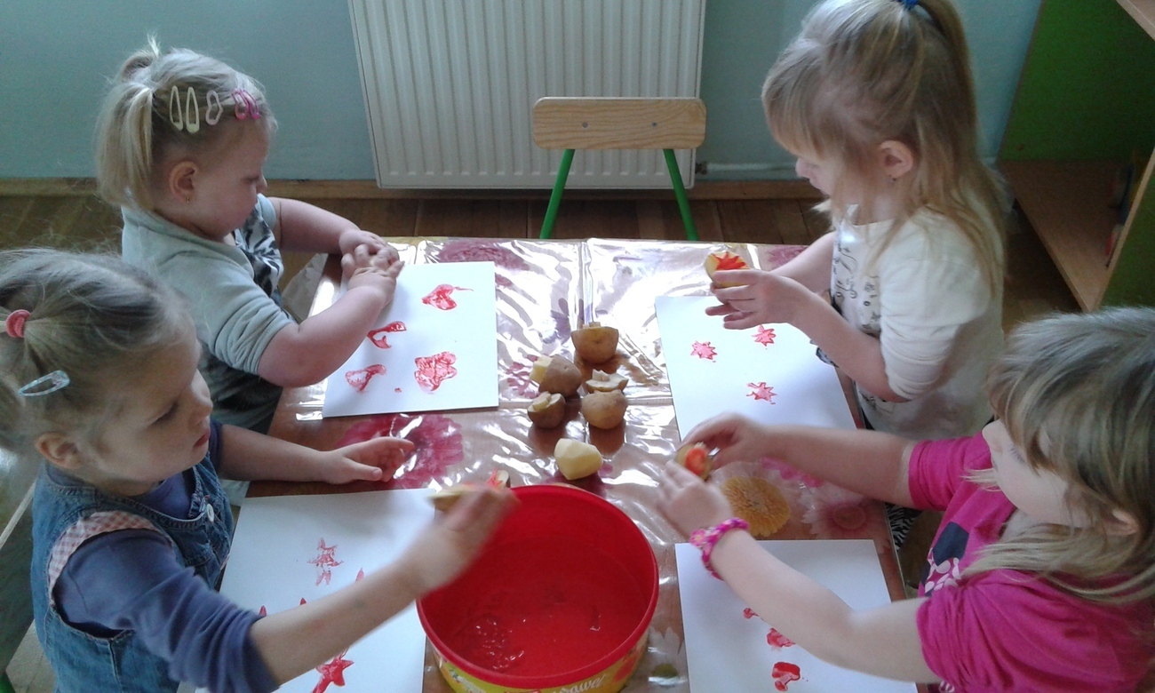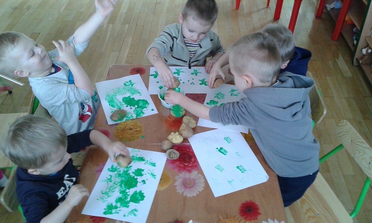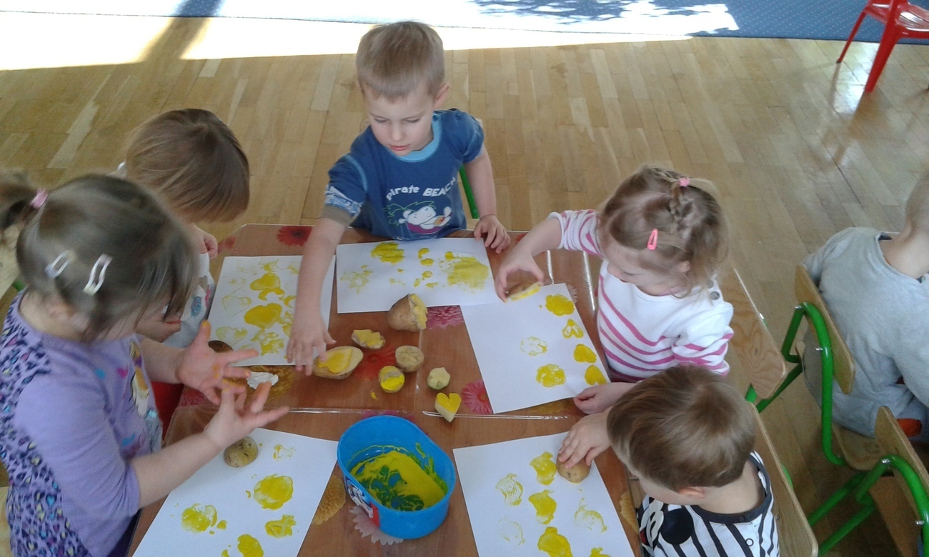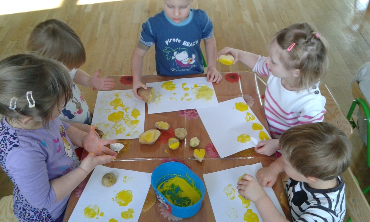 Tygryski uwielbiają malować farbami, dzięki naszym super zdolnym rodzicom, którzy wyczarowali wspaniale stemple z ziemniaków zrobiliśmy to inaczej.