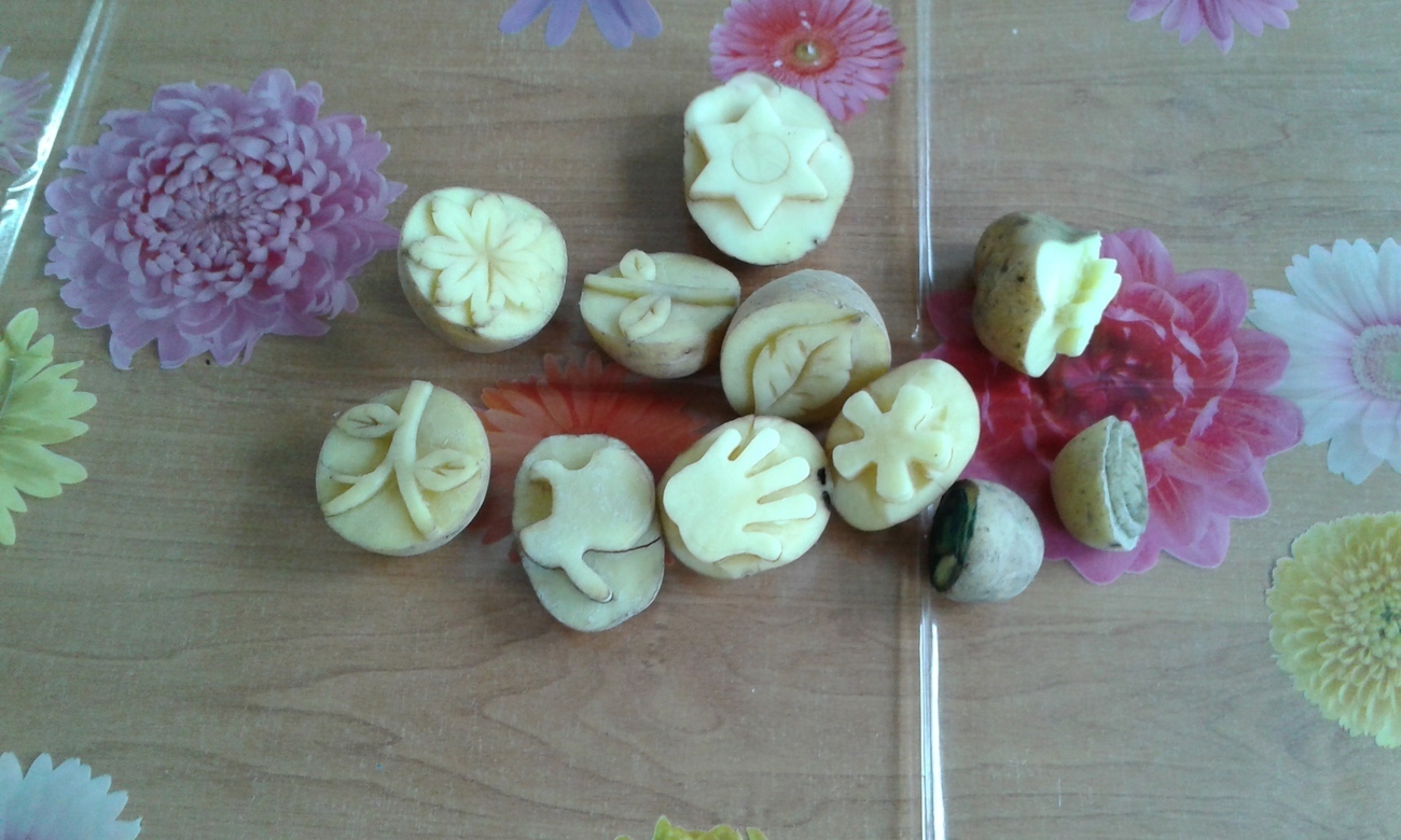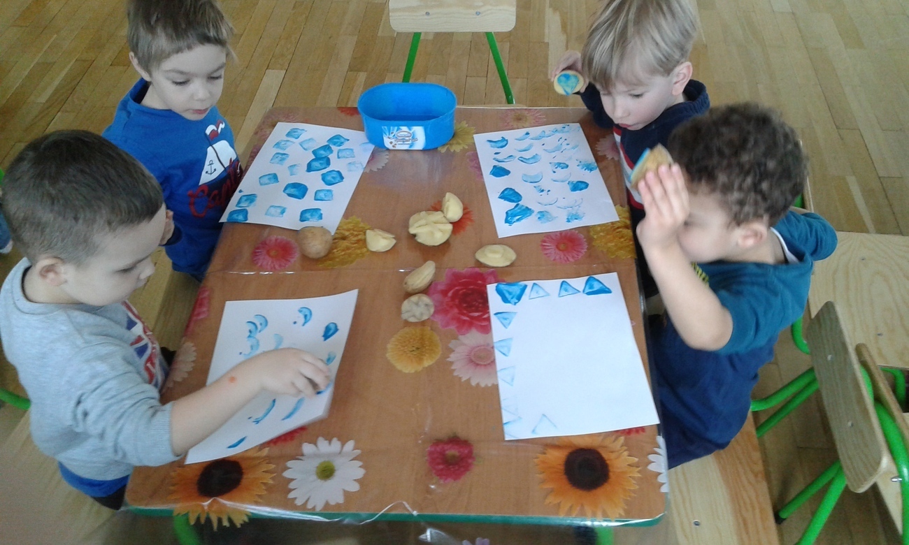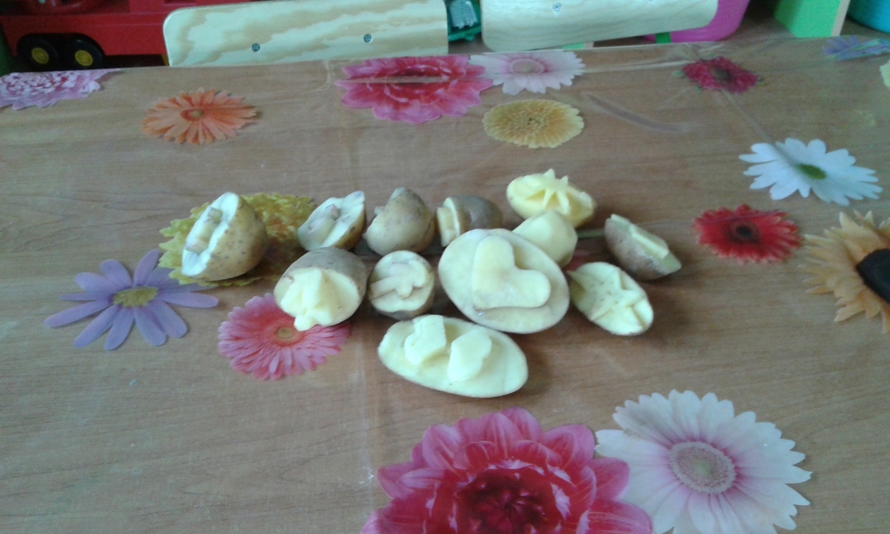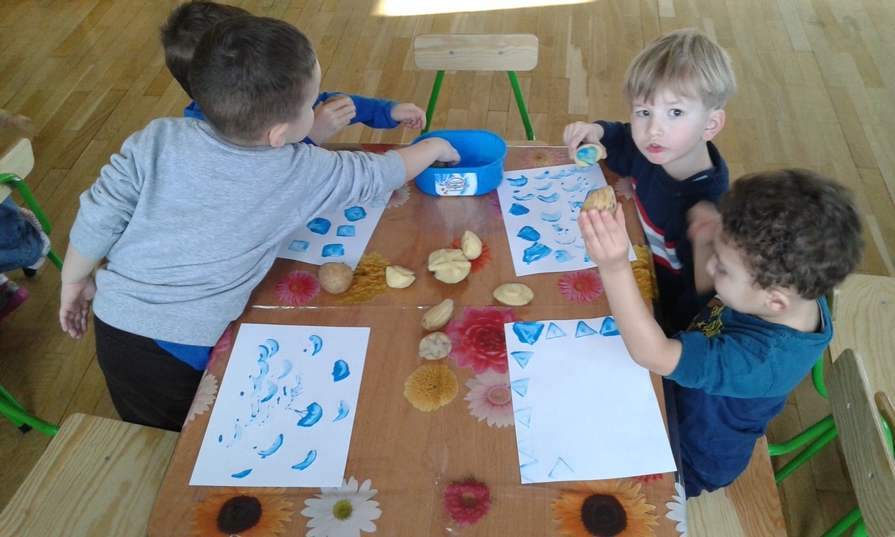 Tygryski uwielbiają malować farbami, dzięki naszym super zdolnym rodzicom, którzy wyczarowali wspaniale stemple z ziemniaków zrobiliśmy to inaczej.
