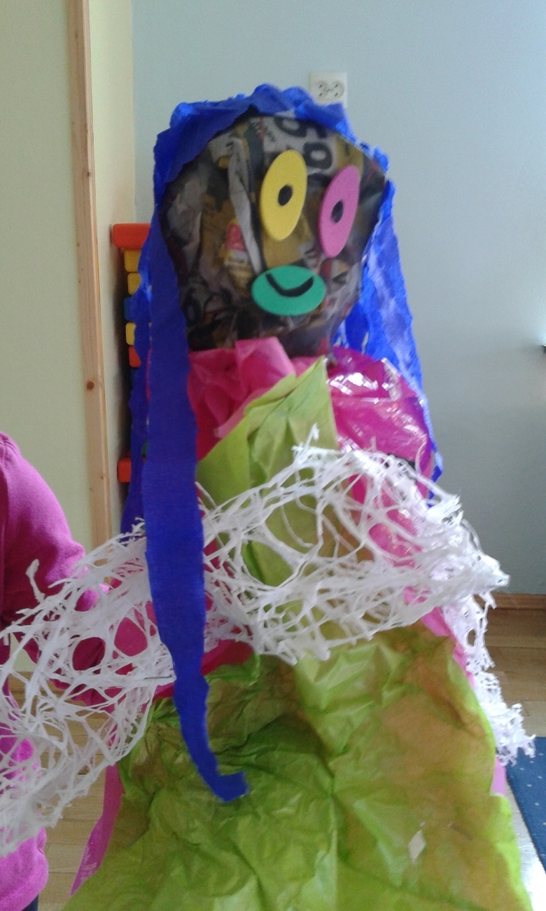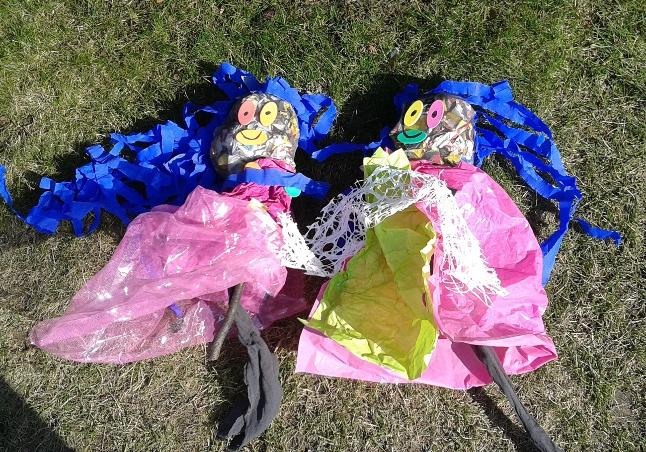 Z samego rana dwie drużyny samodzielnie wykonały Marzanny, które potem zostały utopione w naszym przedszkolnym ogrodzie….