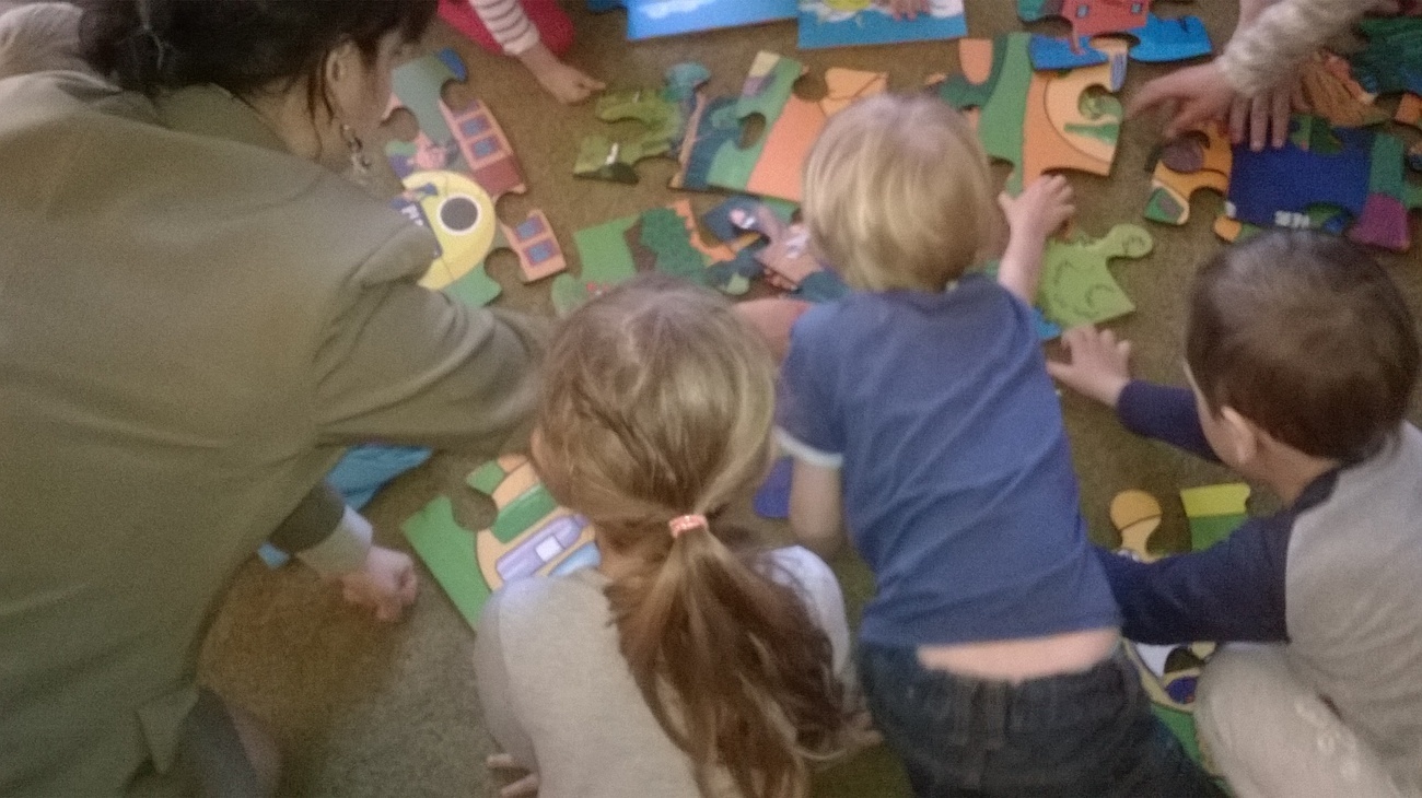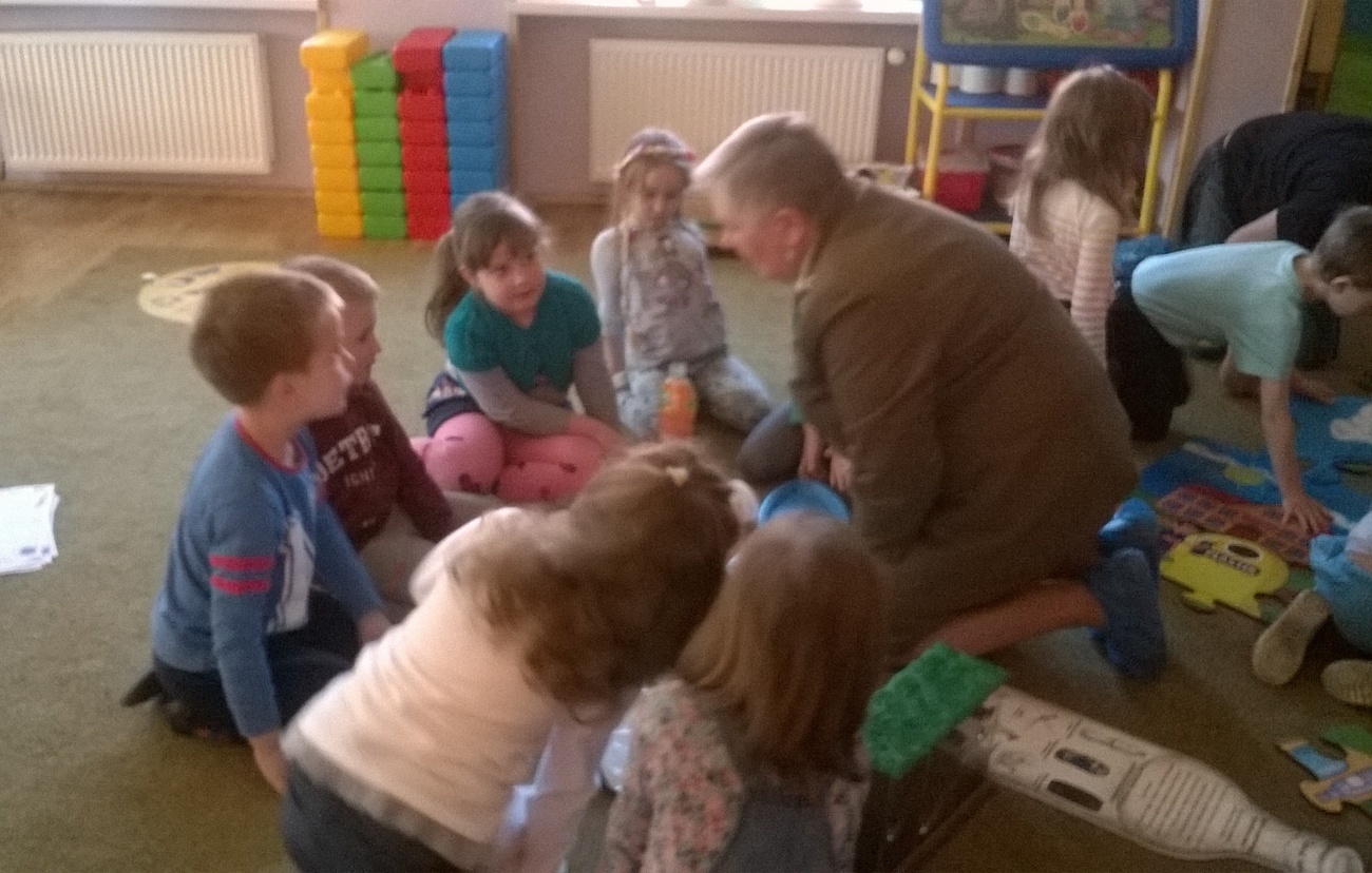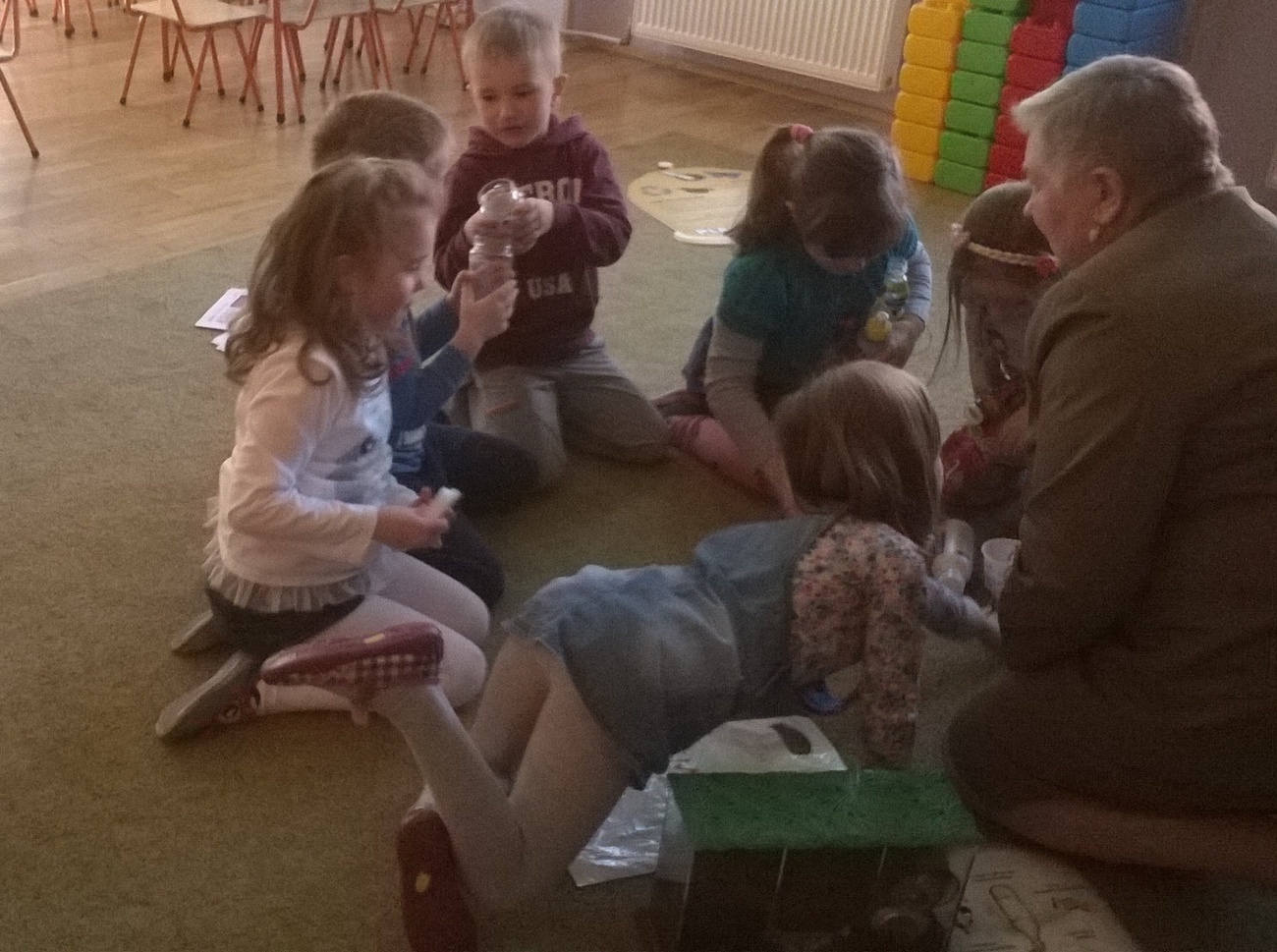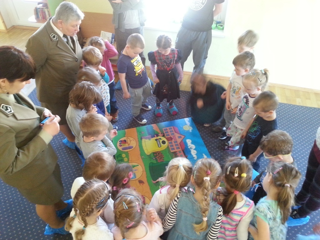 Nasi gości przynieśli ze sobą mnóstwo ciekawych rzeczy tj. ogromne ekologiczne puzzle, wizerunki koszy na śmieci, różne śmieci, ciekawe okazy śmieci w terrariach z ziemią oraz karty do pokolorowania. Wspólnie segregowaliśmy śmieci do odpowiednich pojemników oraz układaliśmy wielkie puzzle przedstawiające kontenery do segregacji śmieci. Bariera językowa nie stanowiła problemów, ponieważ wspólna praca i zaangażowanie w zupełności wystarczyły.