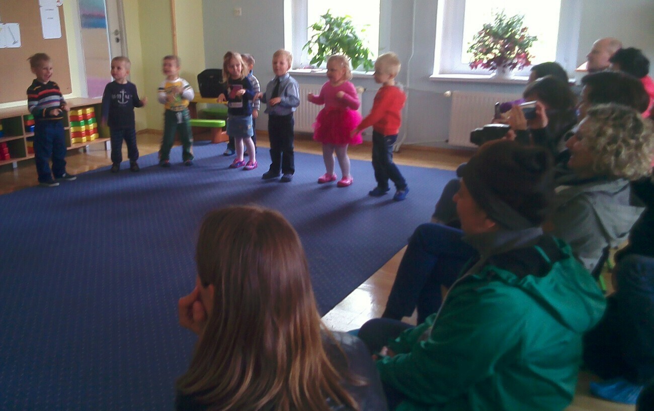Dnia 30.04.2015 r odbyły się otwarte zajęcia taneczne. Uczestniczyliśmy w nich wspólnie z kolegami i koleżankami z grupy II. Na początku razem z panem Piotrem pokazaliśmy rodzicom jakich tańców się nauczyliśmy. Jednak najbardziej podobała się nam końcowa część, kiedy to mogliśmy zaprosić do tańca naszych rodziców. Wszyscy dobrze się bawiliśmy i zanim się obejrzeliśmy zajęcia dobiegły końca.