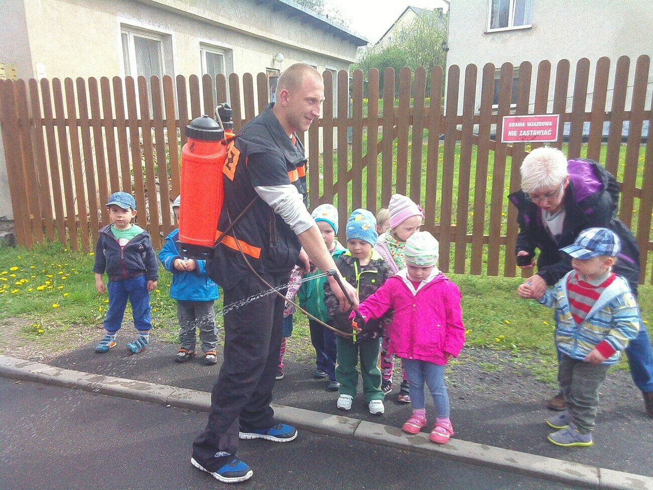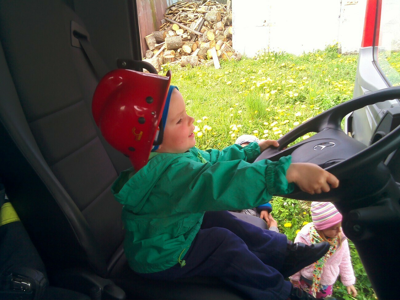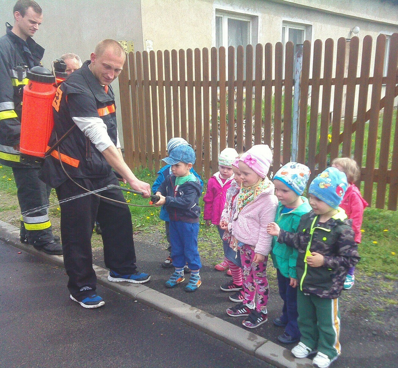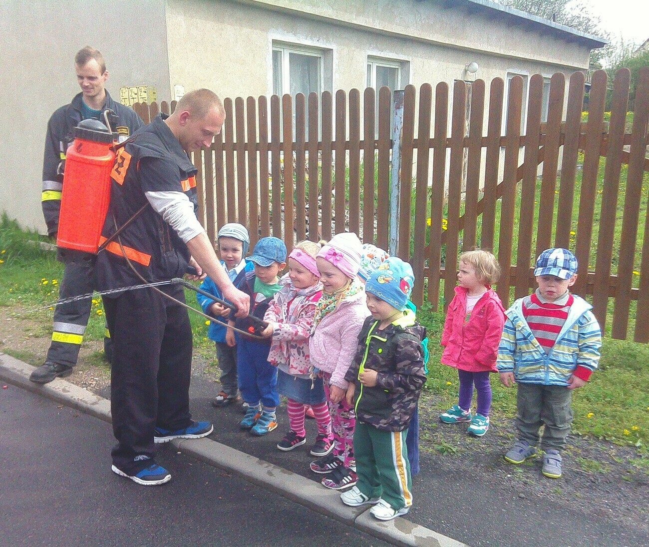 W dniu 05.05.2015 r gościliśmy w remizie Ochotniczej Straży Pożarnej mieszczącej się przy ul. Wiejskiej. Mieliśmy okazję zobaczyć nowy wóz strażacki razem z wyposażeniem. Panowie strażacy opowiedzieli nam na czym polegają wykonywane przez nich czynności, pokazali jak szybko trzeba rozwinąć wąż strażacki i jak go potem sprawnie zwinąć. Wzięliśmy również udział w małej scence i „gasiliśmy” oczywiście wymyślony ogień. Strażacy pozwolili na wejść wszystkim do wozu strażackiego, a następnie zaprezentowali różne dźwięki syreny. Na zakończenie wykonaliśmy pamiątkowe zdjęcia. Zmęczeni ale zadowoleni z udanej wycieczki wróciliśmy do przedszkola.