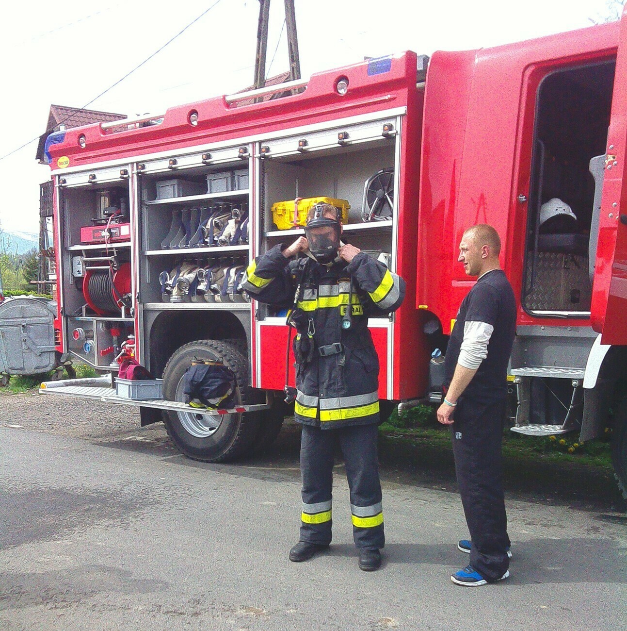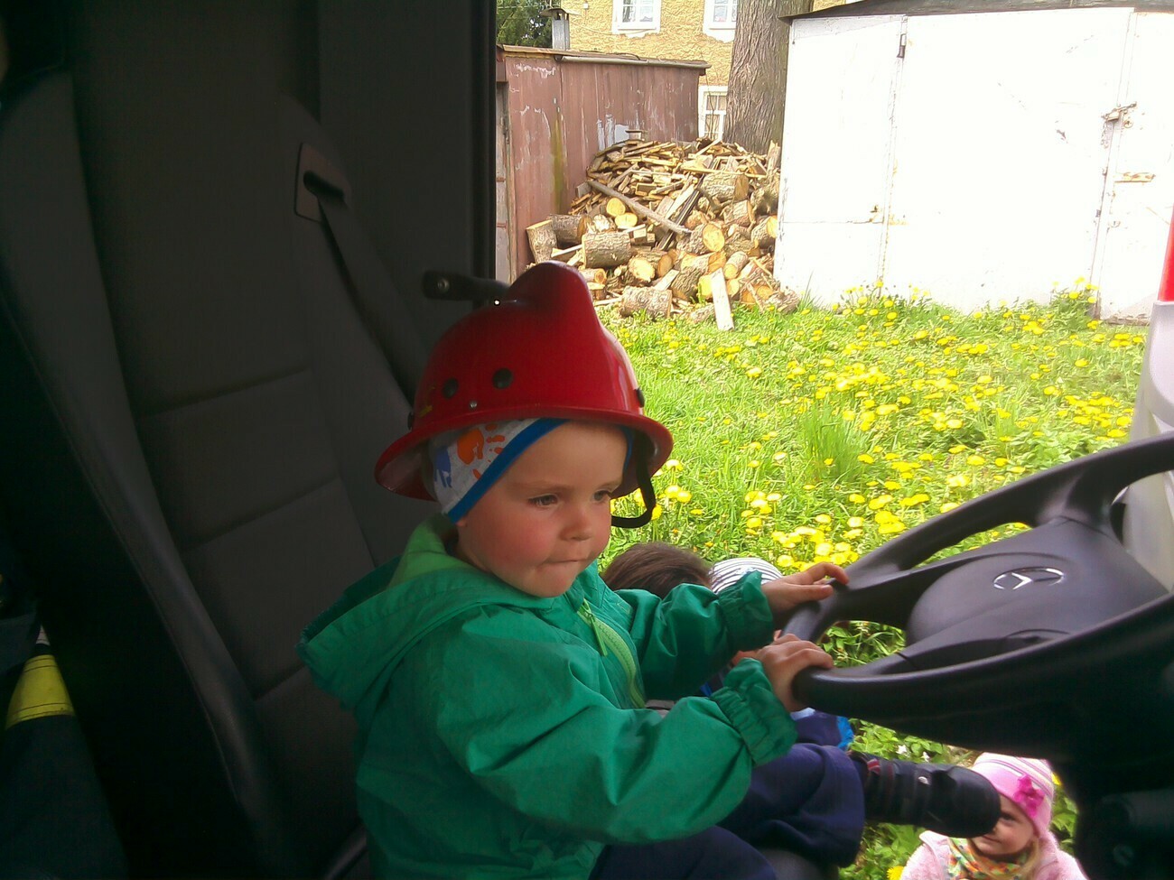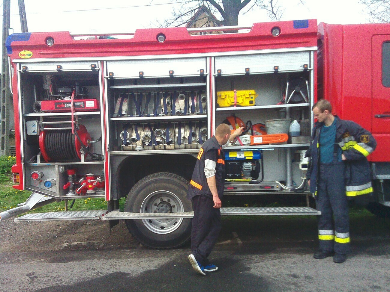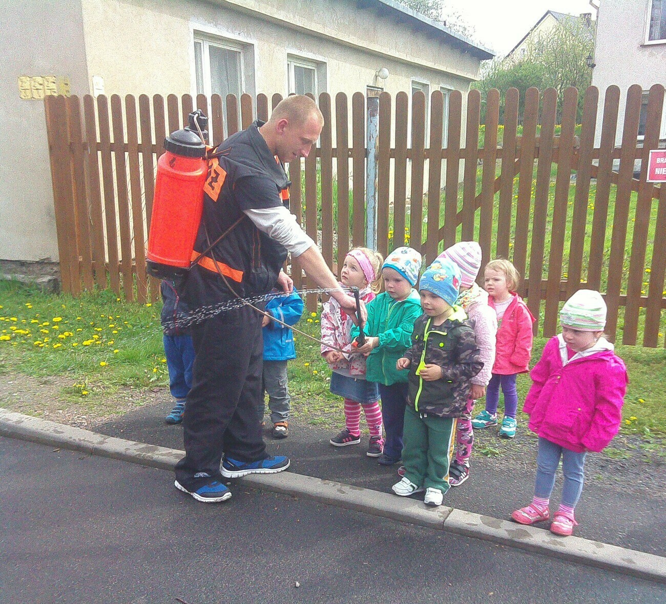 W dniu 05.05.2015 r gościliśmy w remizie Ochotniczej Straży Pożarnej mieszczącej się przy ul. Wiejskiej. Mieliśmy okazję zobaczyć nowy wóz strażacki razem z wyposażeniem. Panowie strażacy opowiedzieli nam na czym polegają wykonywane przez nich czynności, pokazali jak szybko trzeba rozwinąć wąż strażacki i jak go potem sprawnie zwinąć. Wzięliśmy również udział w małej scence i „gasiliśmy” oczywiście wymyślony ogień. Strażacy pozwolili na wejść wszystkim do wozu strażackiego, a następnie zaprezentowali różne dźwięki syreny. Na zakończenie wykonaliśmy pamiątkowe zdjęcia. Zmęczeni ale zadowoleni z udanej wycieczki wróciliśmy do przedszkola.