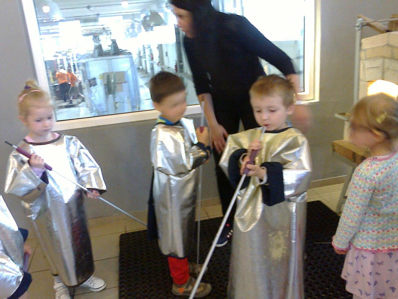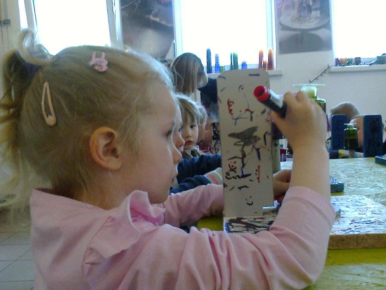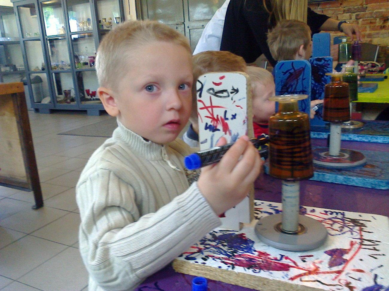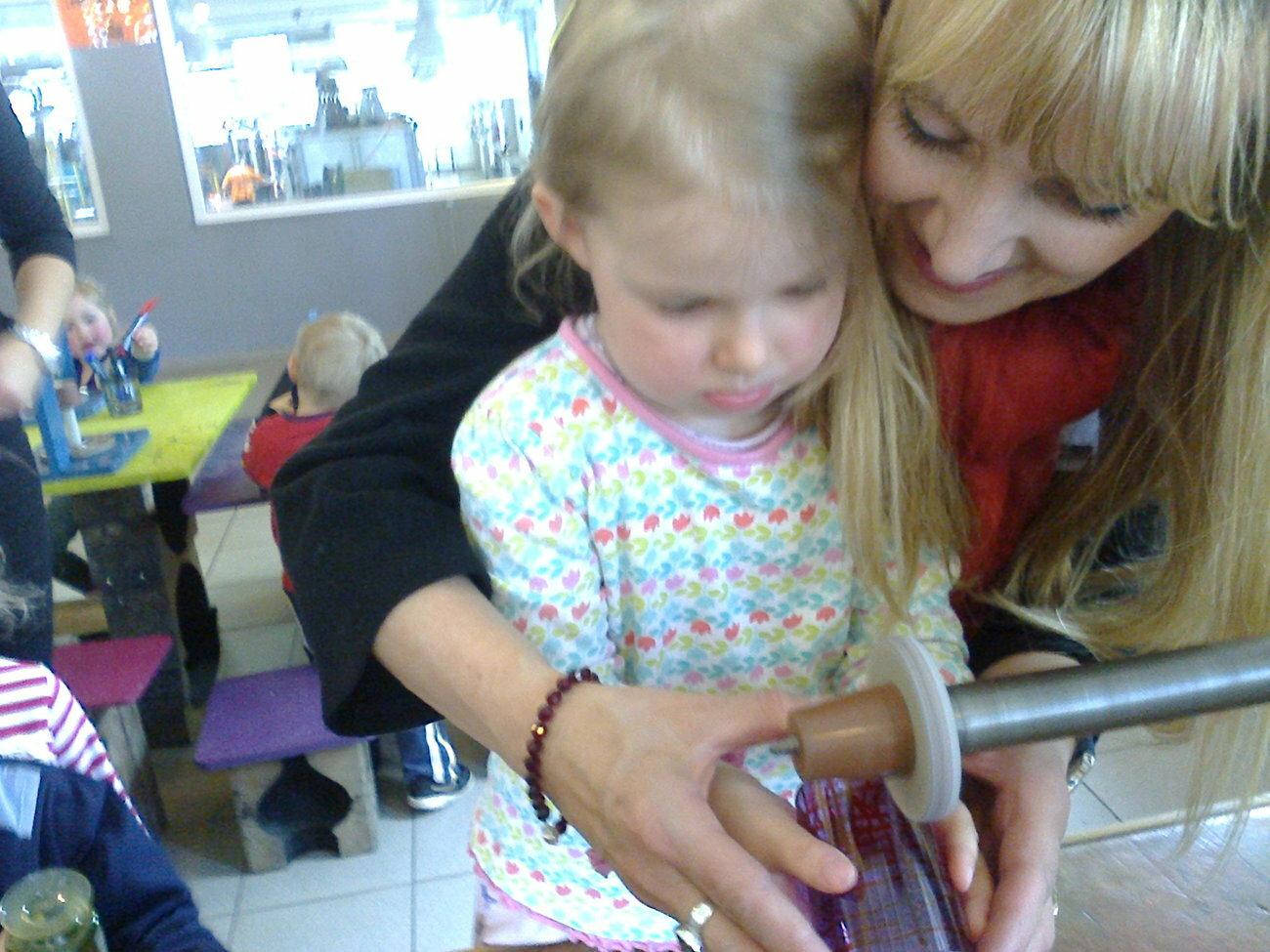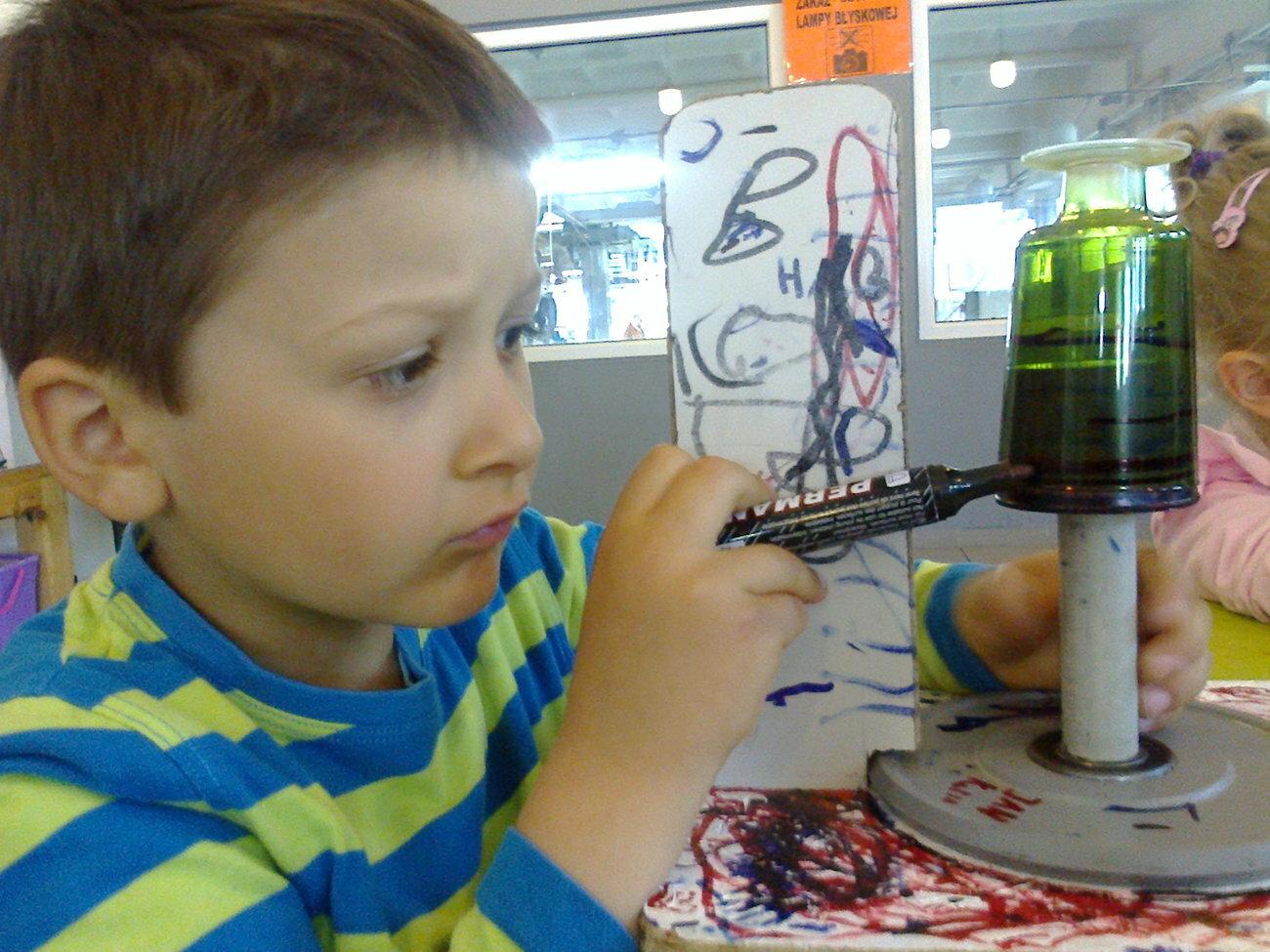 Zostaliśmy podzieleni na kilka małych grup i w takim gronie podążyliśmy na warsztaty. Tam dmuchaliśmy bańki mydlane, a potem wykonaliśmy własne kubeczki, które mogliśmy zabrać do domu.