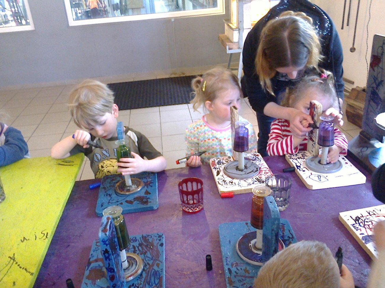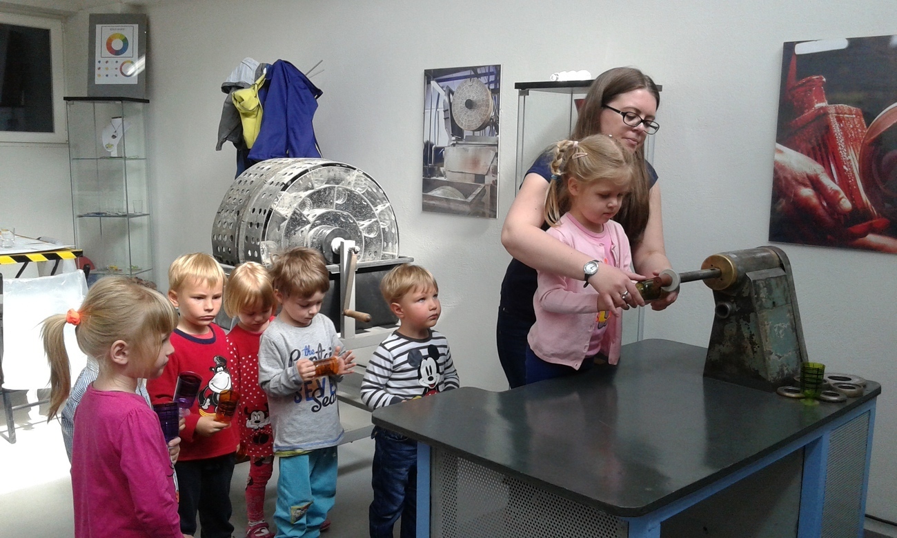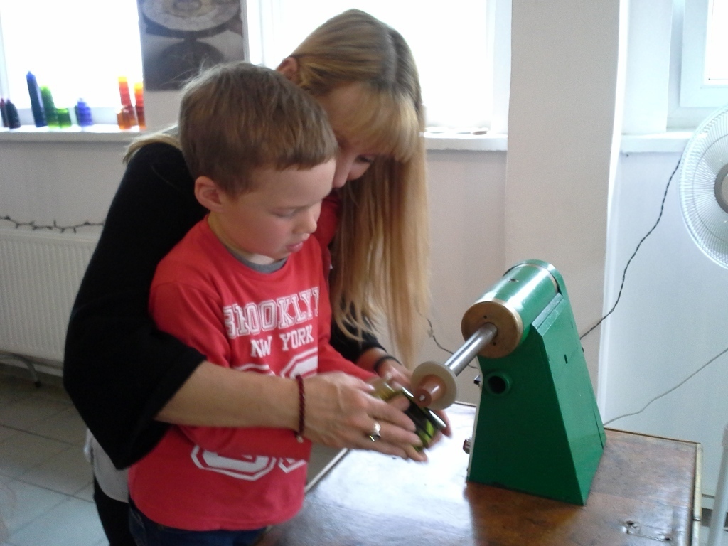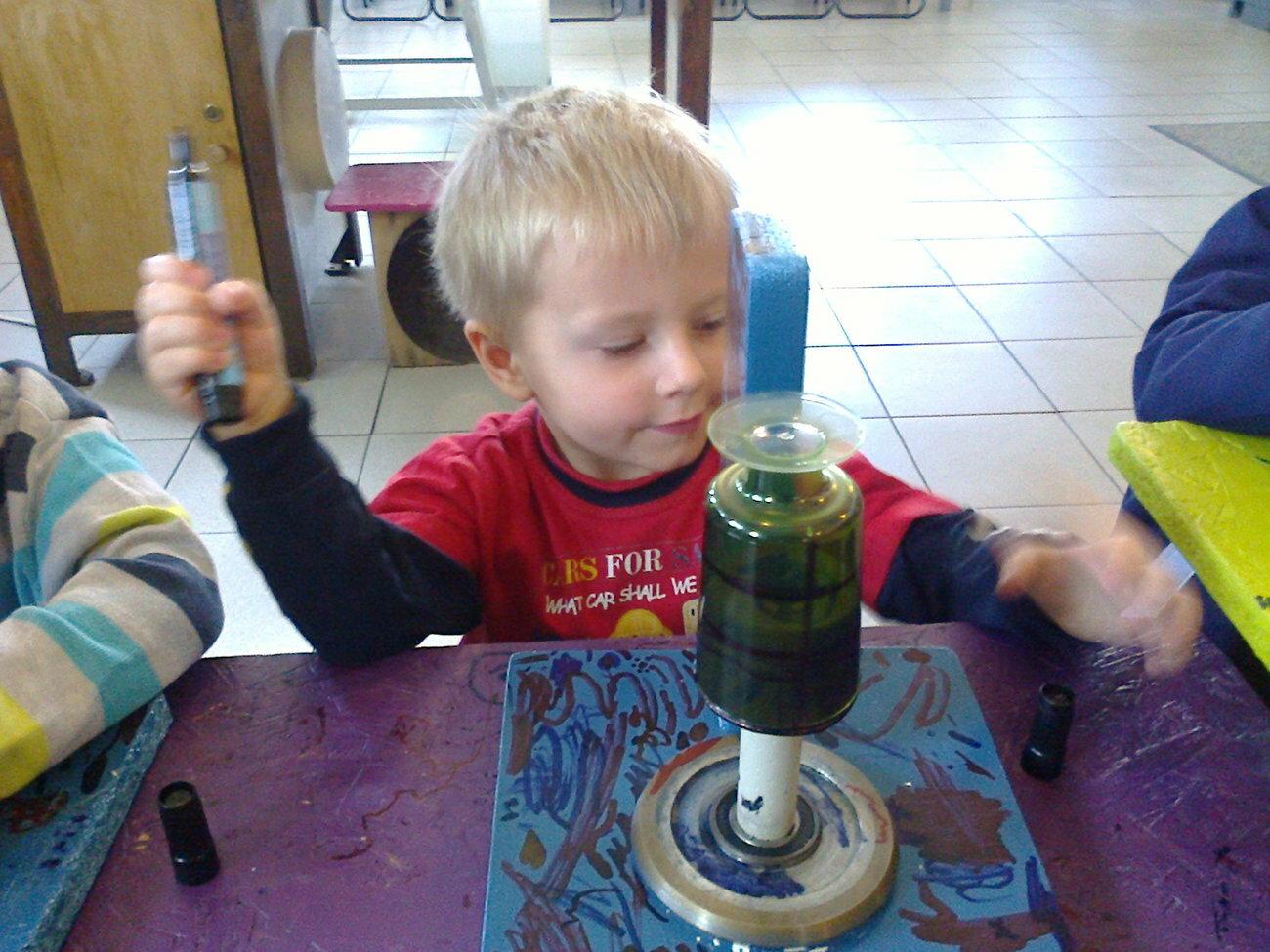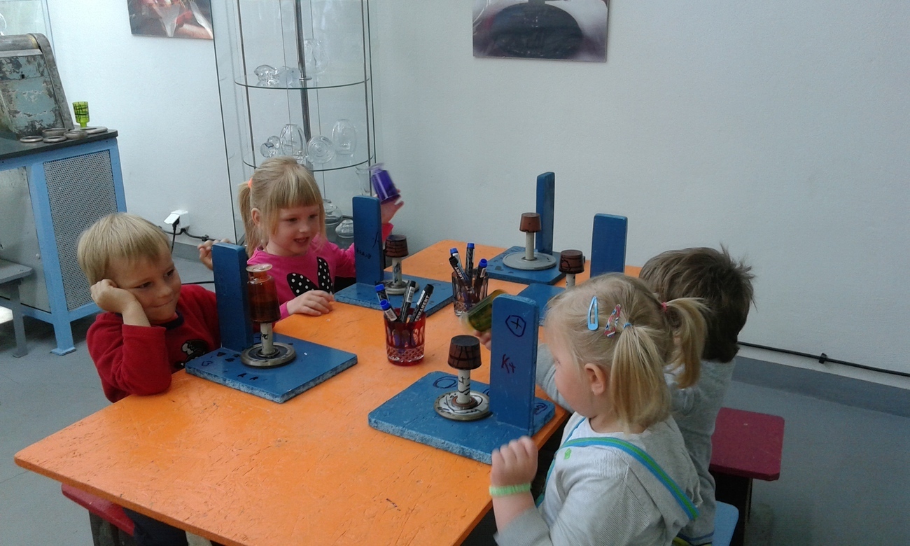Zostaliśmy podzieleni na kilka małych grup i w takim gronie podążyliśmy na warsztaty. Tam dmuchaliśmy bańki mydlane, a potem wykonaliśmy własne kubeczki, które mogliśmy zabrać do domu.