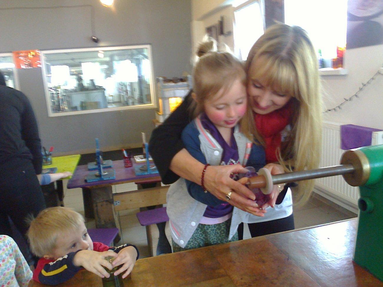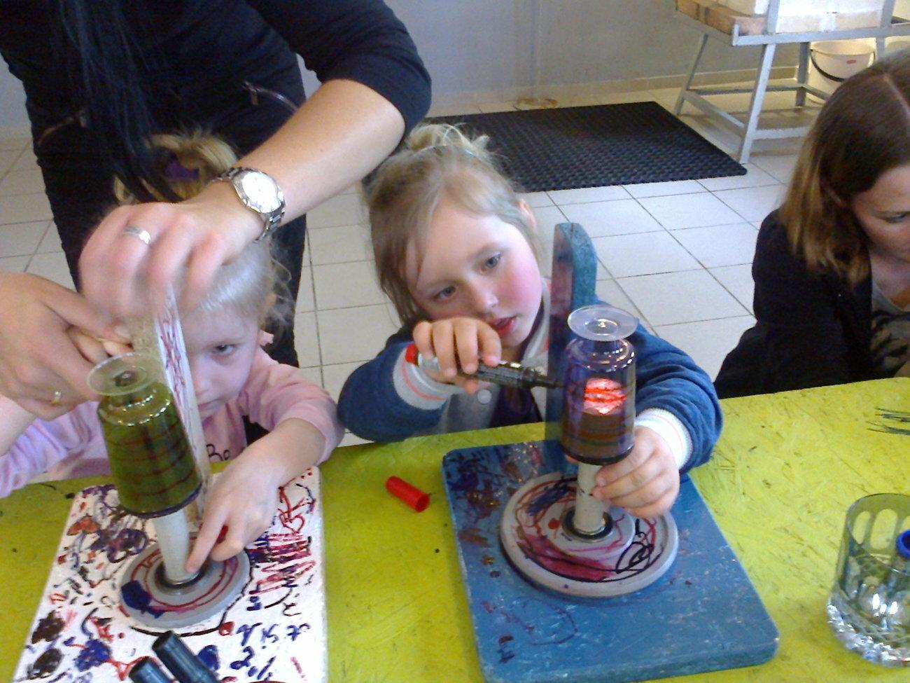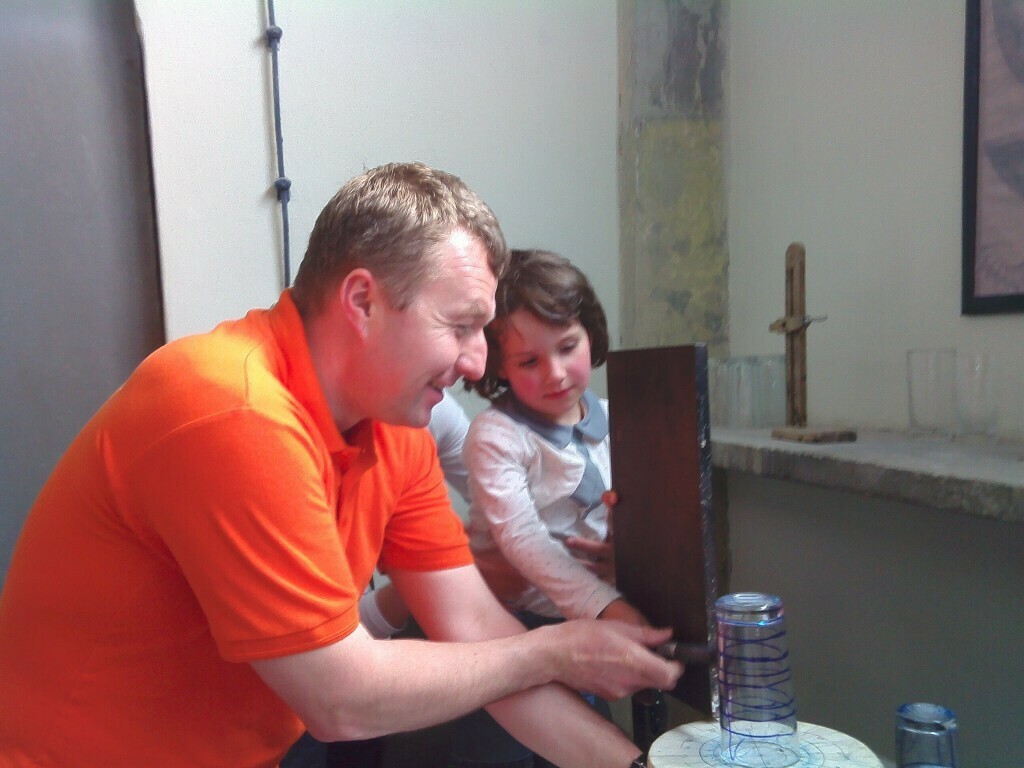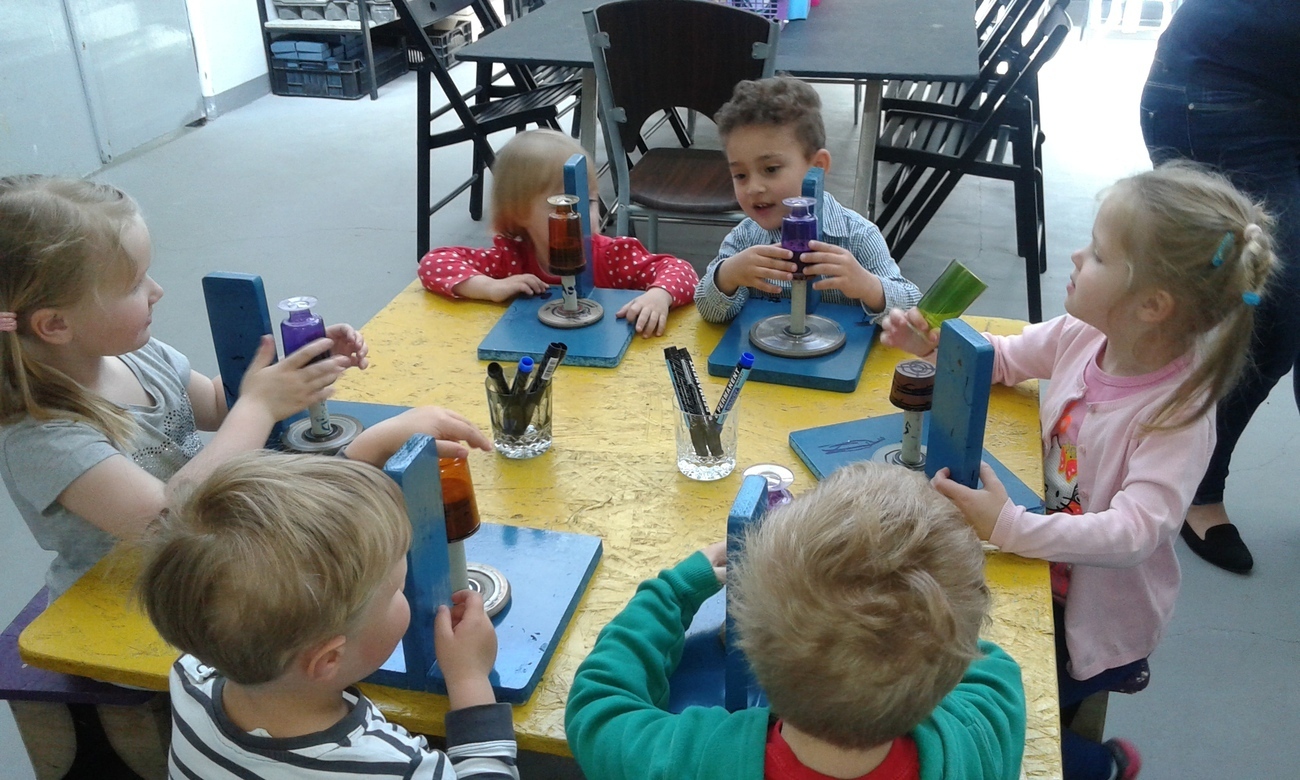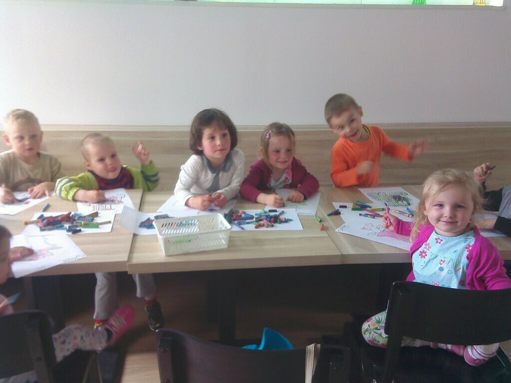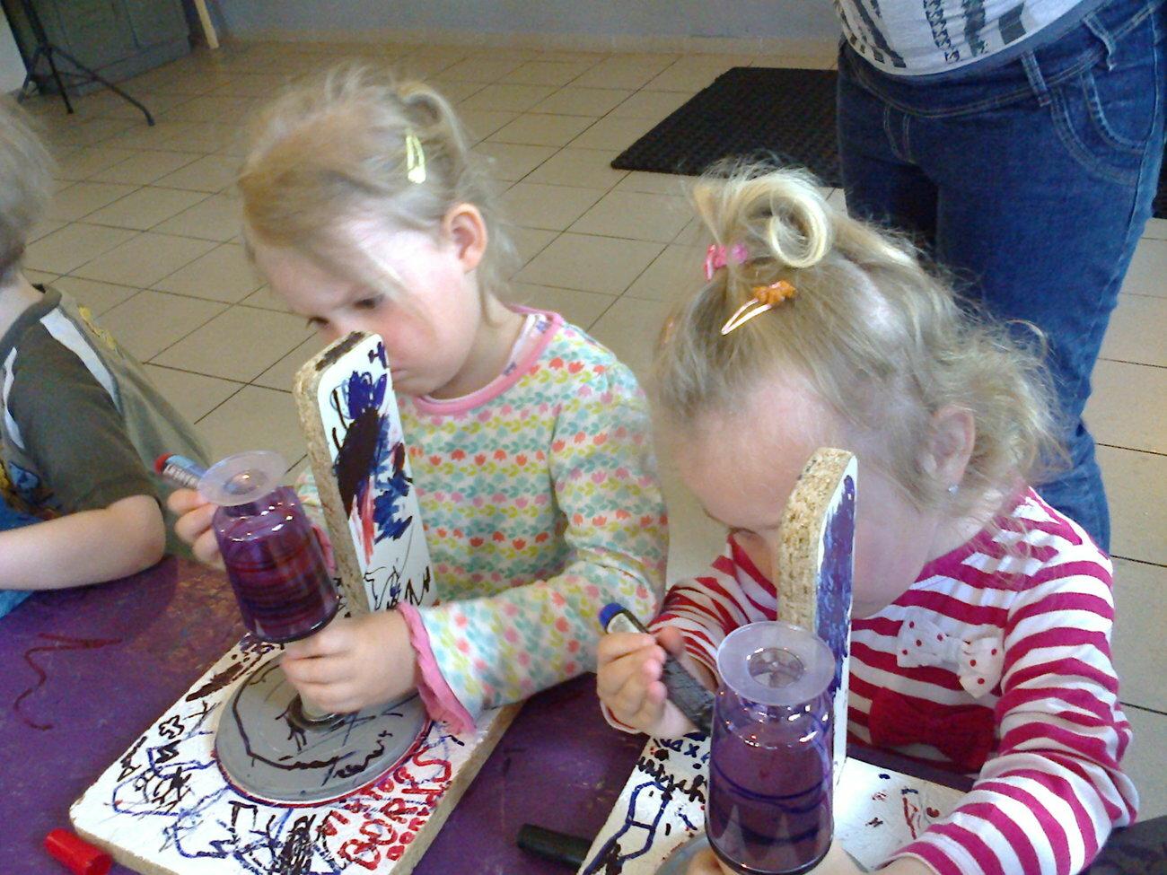 Zostaliśmy podzieleni na kilka małych grup i w takim gronie podążyliśmy na warsztaty. Tam dmuchaliśmy bańki mydlane, a potem wykonaliśmy własne kubeczki, które mogliśmy zabrać do domu.