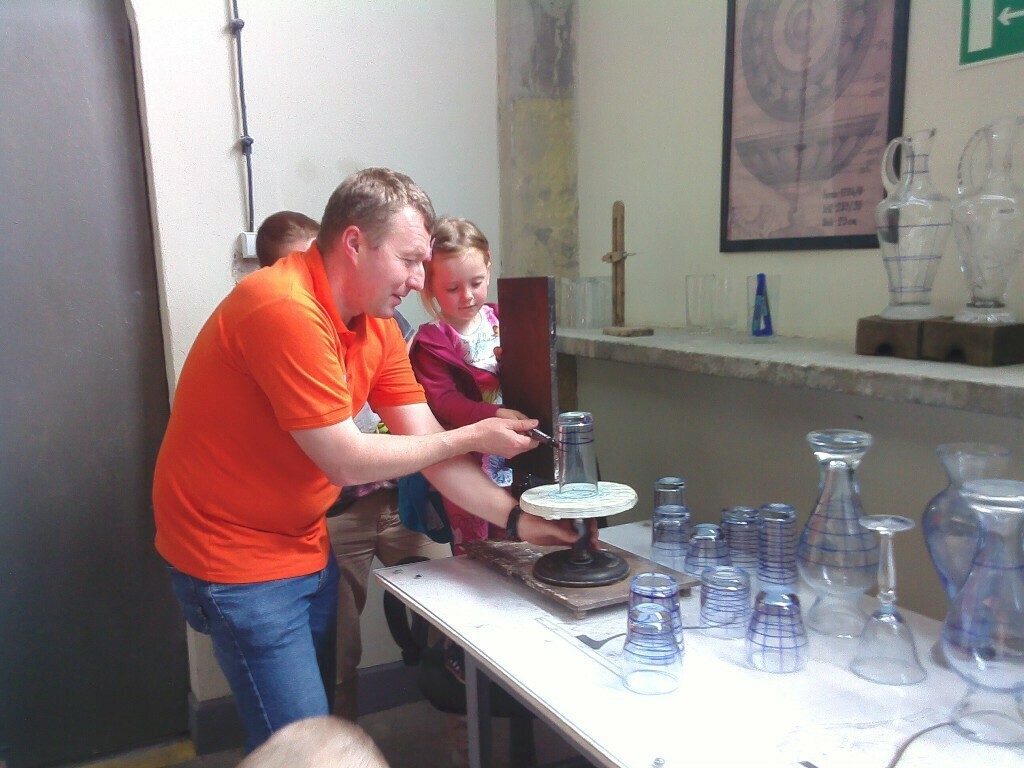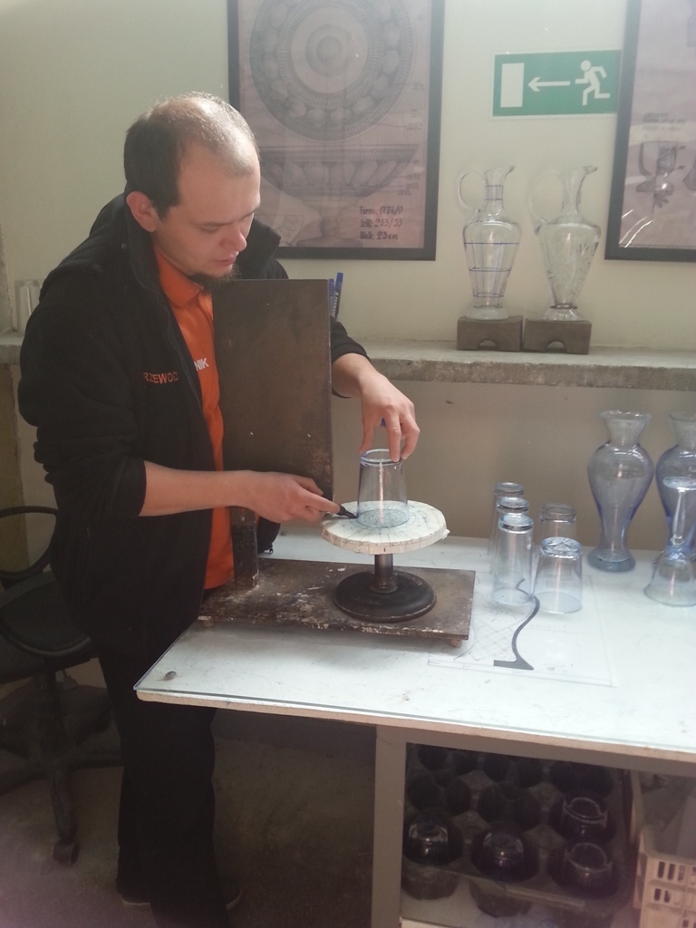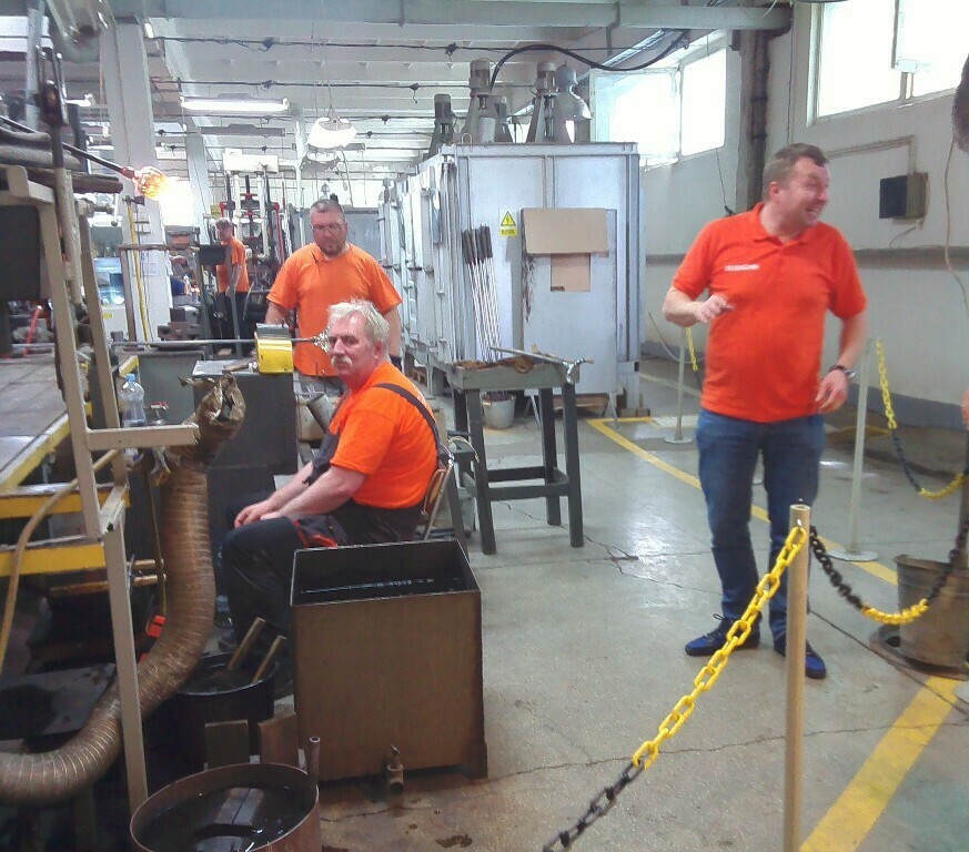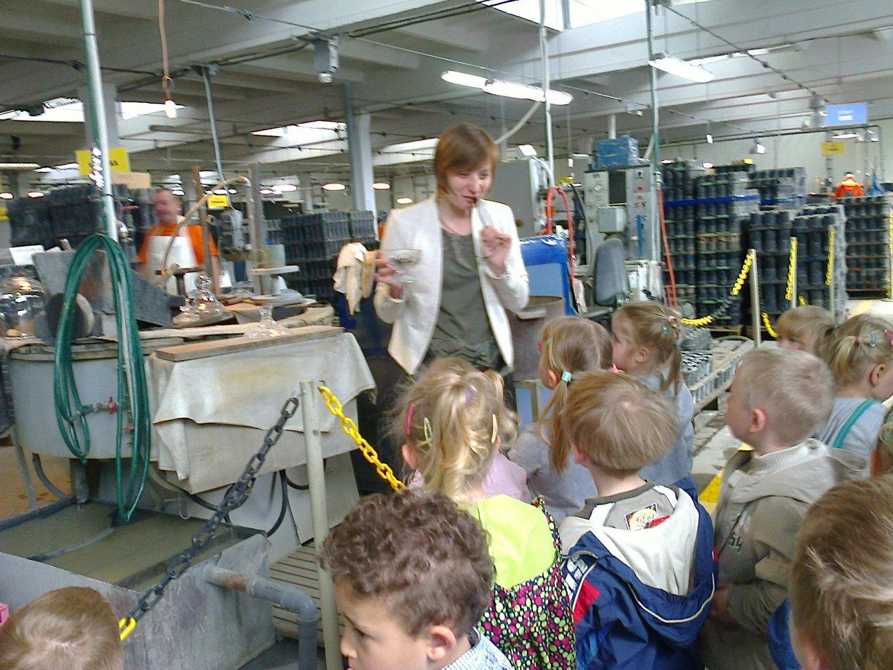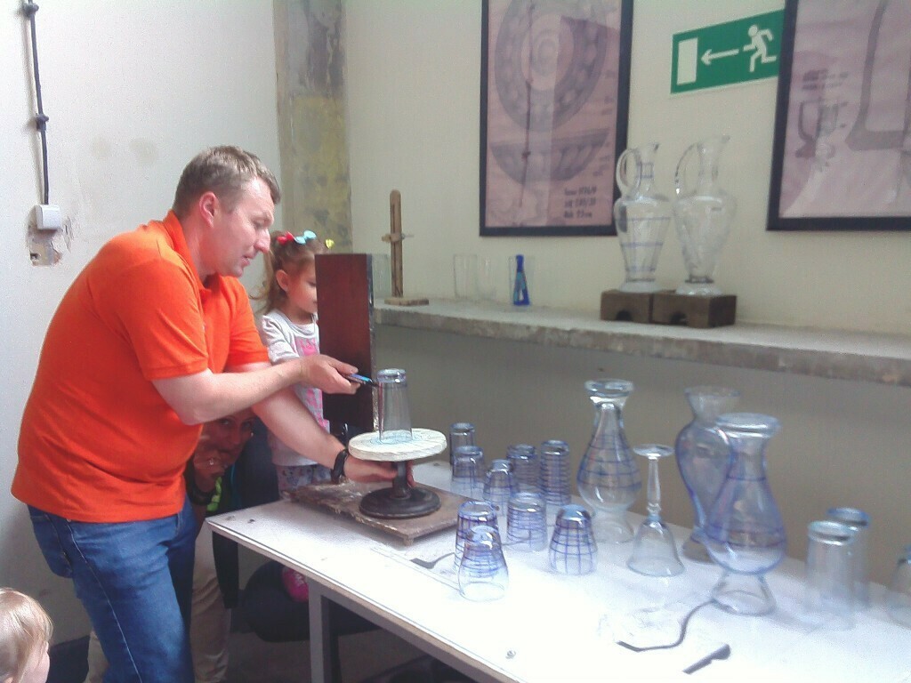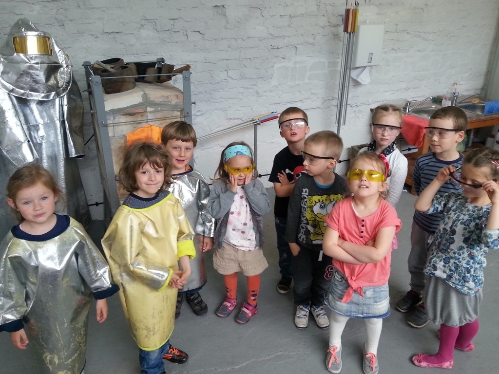 Zobaczyliśmy także stroje w jakich pracują przy piecu, pracownicy huty. Zwiedzaliśmy także hutę, ponieważ byliśmy ciekawi jak powstaje szkło. Od dzisiaj wiemy, że do wyrobu szkła potrzebny jest piasek i stłuczka szklana. W pomieszczeniach było strasznie gorąco i głośno, kiedy przyglądaliśmy się pracy przy piecach. Oglądaliśmy również jak panie polerują szkło i ozdabiają je. Pomyśleliśmy, że muszą być bardzo zdolne i wytrwałe.