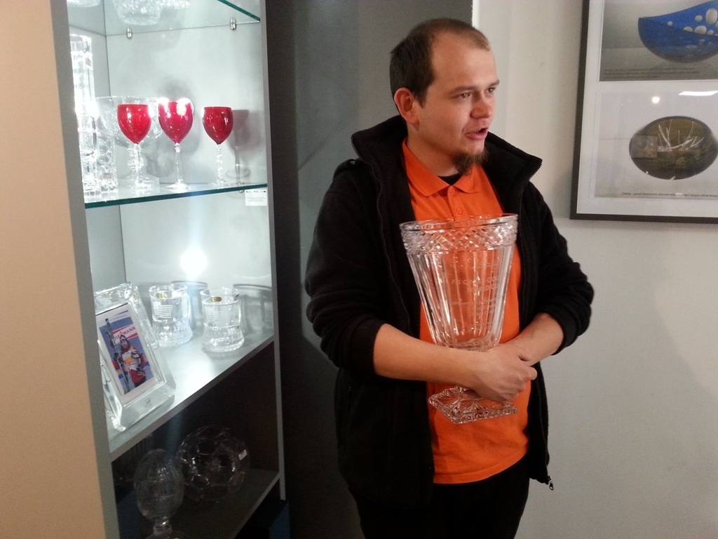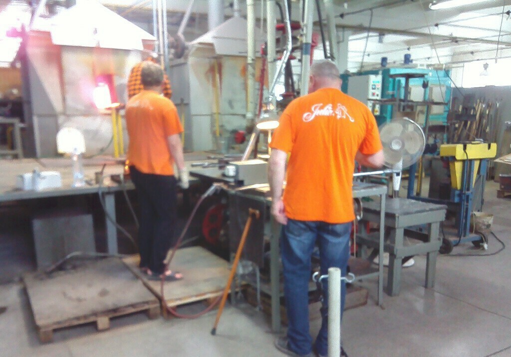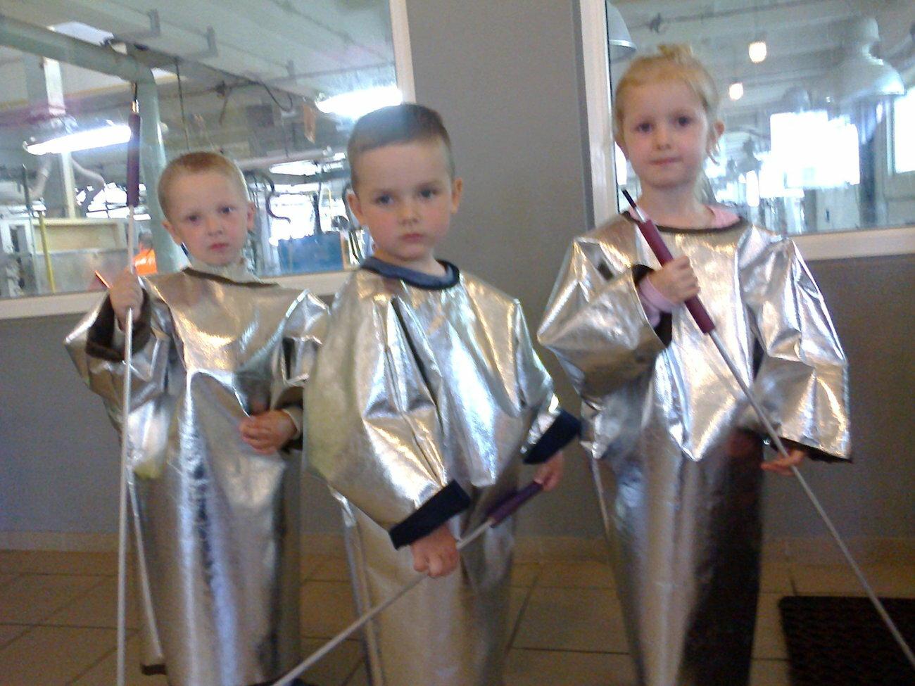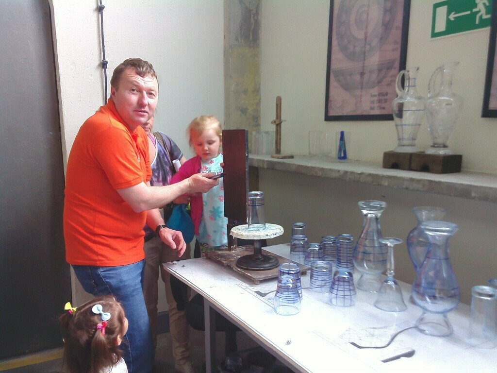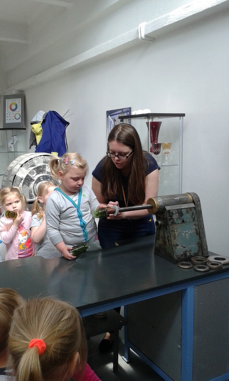 Zobaczyliśmy także stroje w jakich pracują przy piecu, pracownicy huty. Zwiedzaliśmy także hutę, ponieważ byliśmy ciekawi jak powstaje szkło. Od dzisiaj wiemy, że do wyrobu szkła potrzebny jest piasek i stłuczka szklana. W pomieszczeniach było strasznie gorąco i głośno, kiedy przyglądaliśmy się pracy przy piecach. Oglądaliśmy również jak panie polerują szkło i ozdabiają je. Pomyśleliśmy, że muszą być bardzo zdolne i wytrwałe.