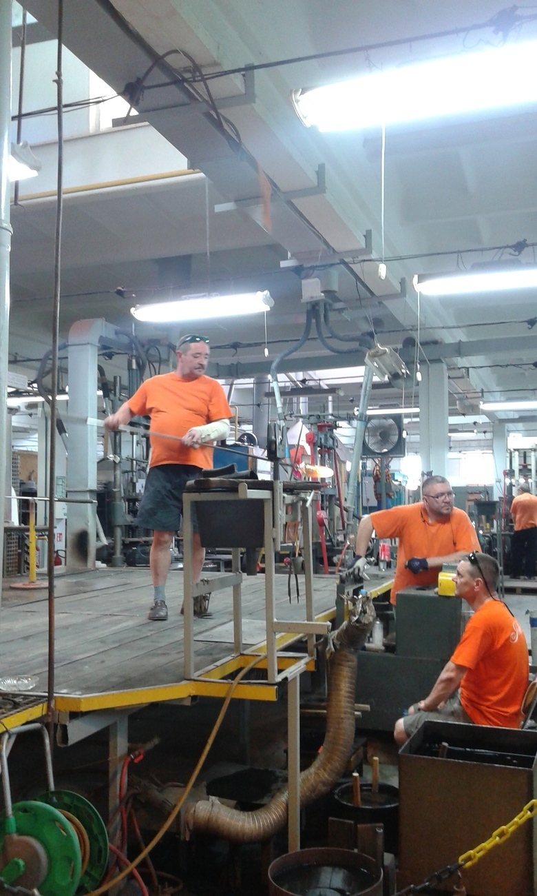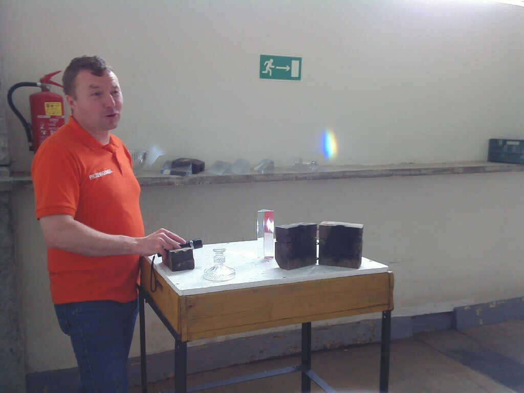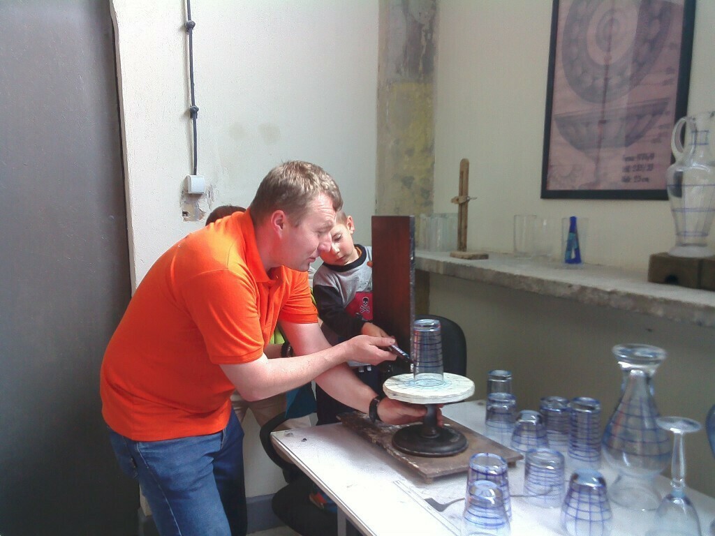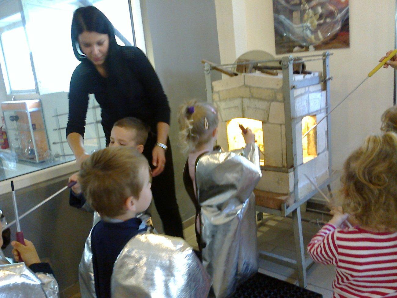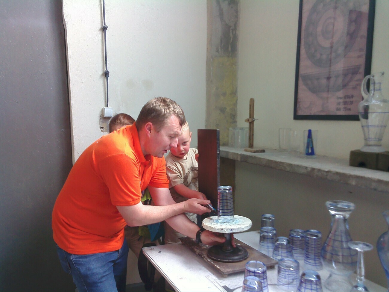 Zobaczyliśmy także stroje w jakich pracują przy piecu, pracownicy huty. Zwiedzaliśmy także hutę, ponieważ byliśmy ciekawi jak powstaje szkło. Od dzisiaj wiemy, że do wyrobu szkła potrzebny jest piasek i stłuczka szklana. W pomieszczeniach było strasznie gorąco i głośno, kiedy przyglądaliśmy się pracy przy piecach. Oglądaliśmy również jak panie polerują szkło i ozdabiają je. Pomyśleliśmy, że muszą być bardzo zdolne i wytrwałe.