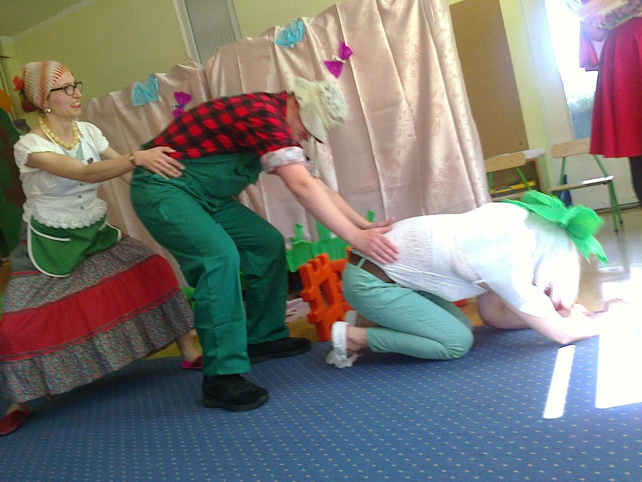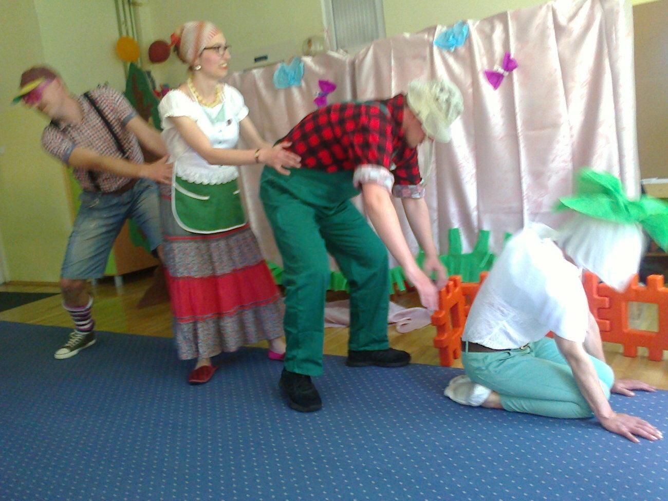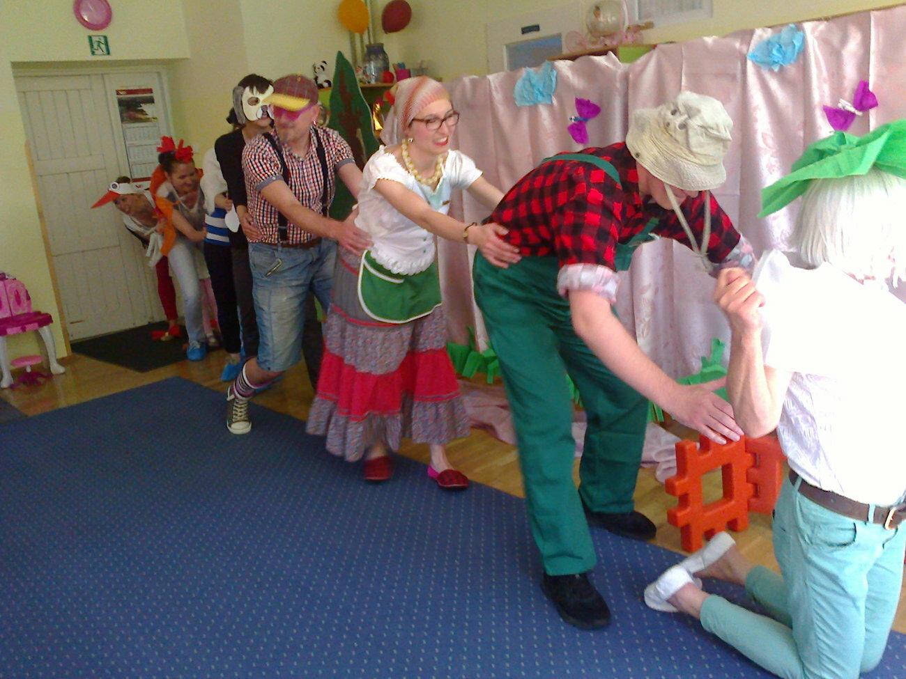 Rozpoczęło się przedstawienie „Rzepka ”, a na buziach przedszkolaków pojawił się ogromny uśmiech, ponieważ aktorami okazali się ich rodzice. Radościom nie było końca.