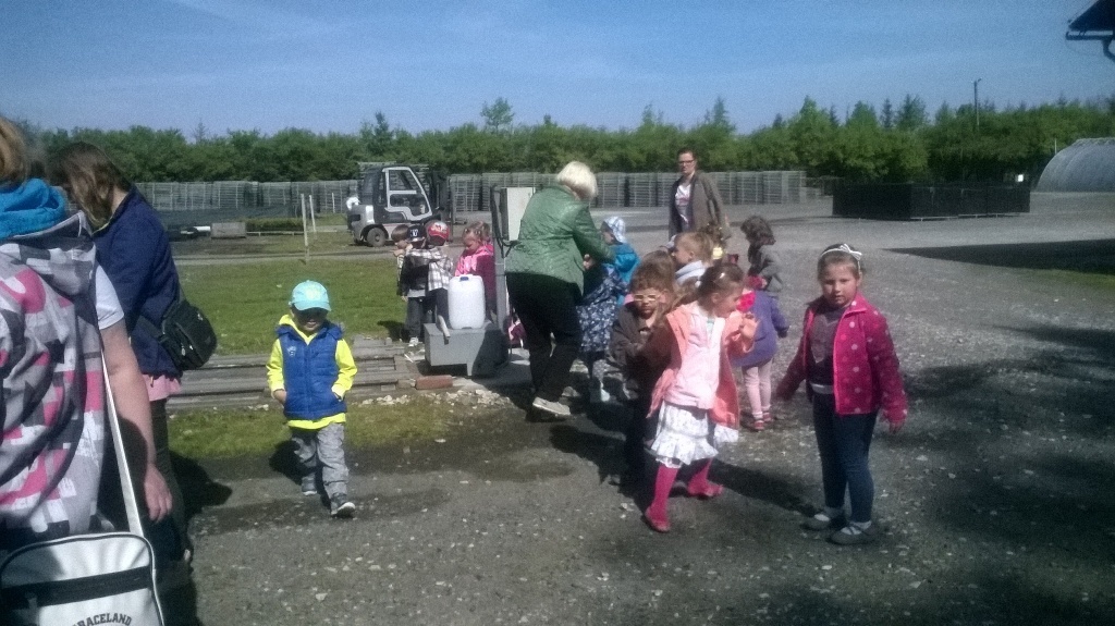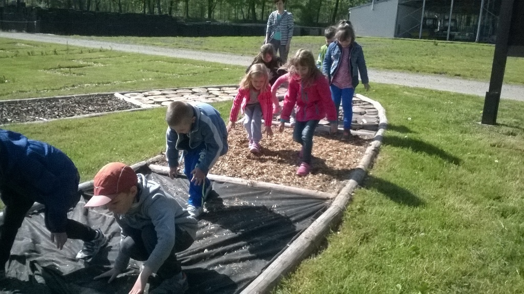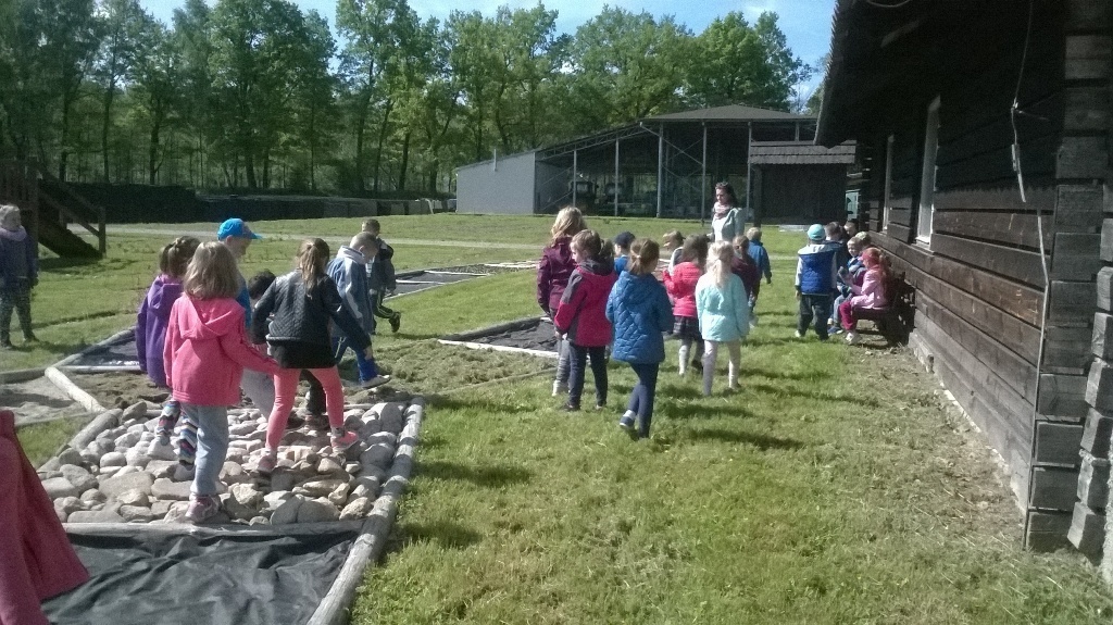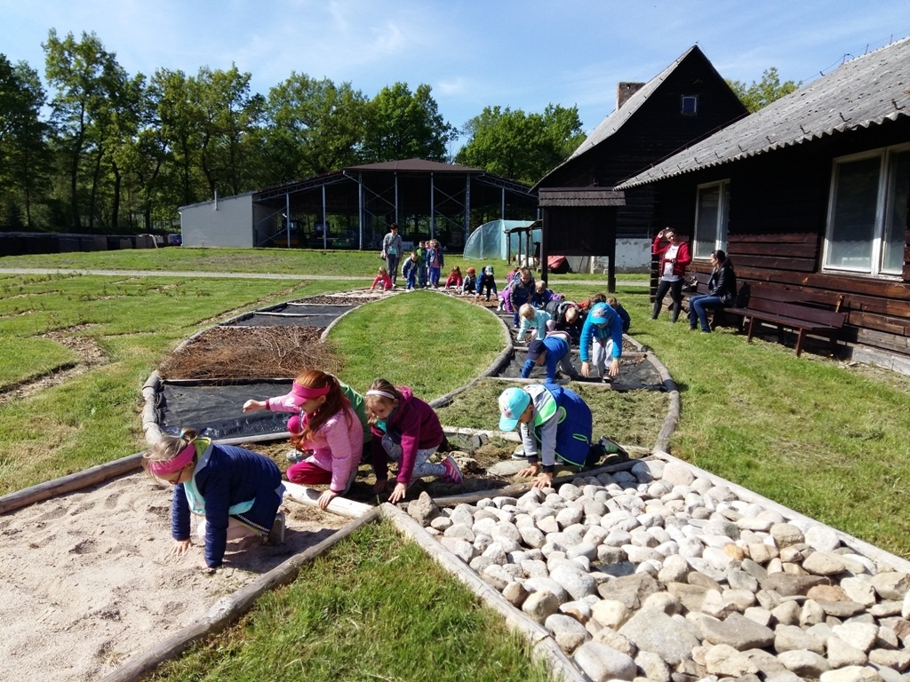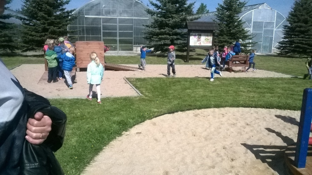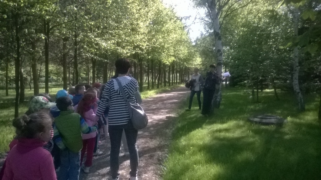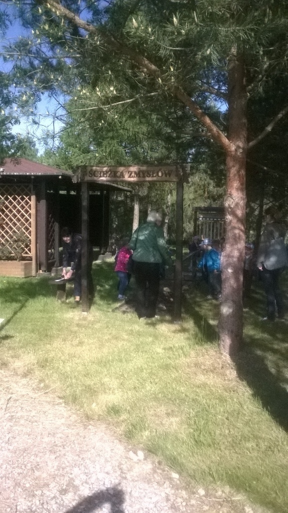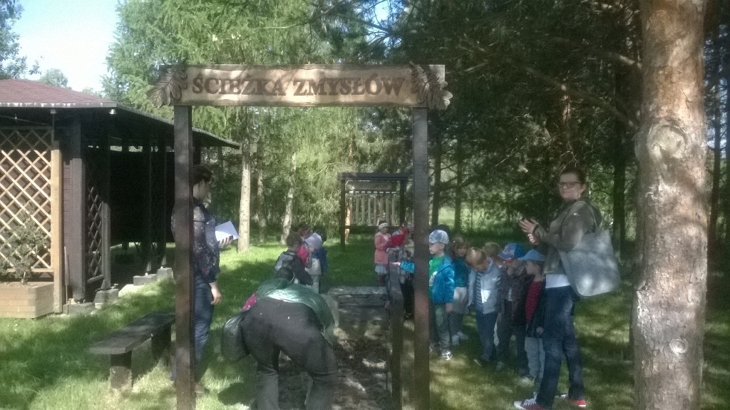 Na miejscu czekała już pani Bogusia, która zaprosiła nas do zwiedzania. Rozpoczęliśmy od wędrówki pomiędzy drzewami, aż dotarliśmy do "ścieżki zmysłów". Była wykonana z szyszek, trawy, kamieni, mchu, znalezionych w lesie, a które mają różny kształt i fakturę. Następnie przeszliśmy do hali, gdzie odbywało się sadzenie nasion w specjalnych kasetach przy użyciu maszyn. Pani Bogusia zaprowadziła nas również do ogromnych szklarni, w których nasionka rosły i stawały się małymi drzewkami. Gdy już podrosną zostają przesadzane ze szklarni i rosną już pod gołym niebem, a podlewają je specjalne zraszacze.