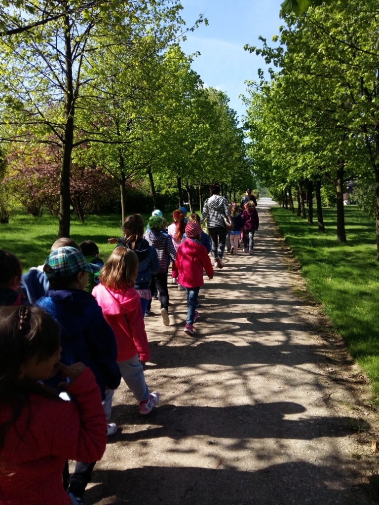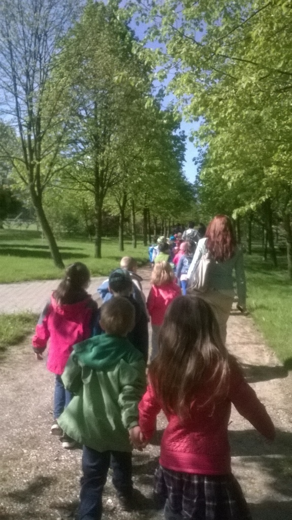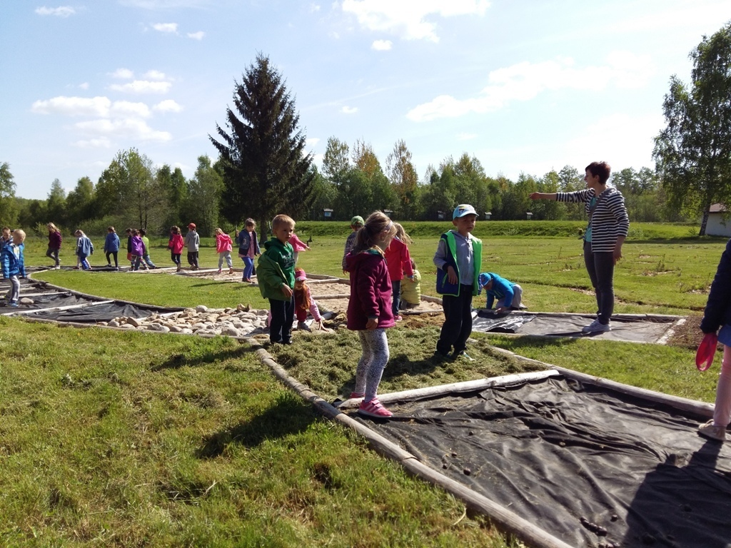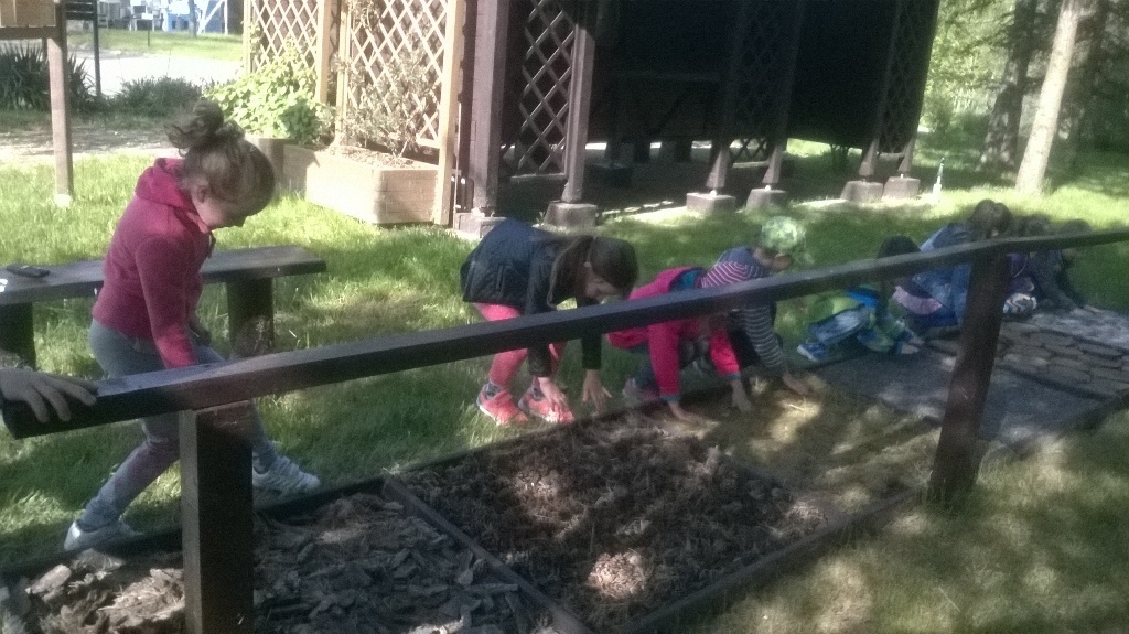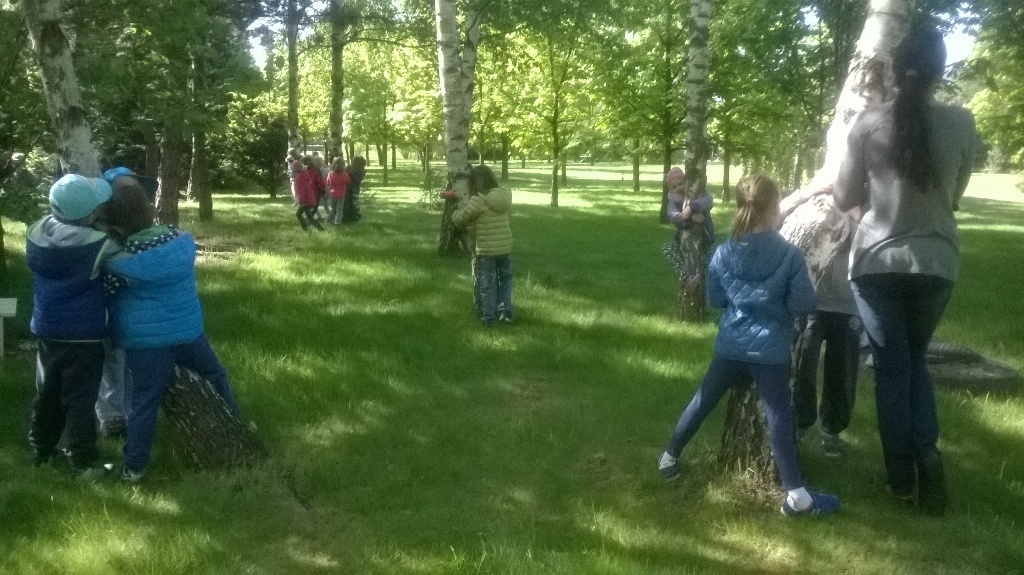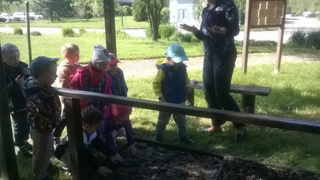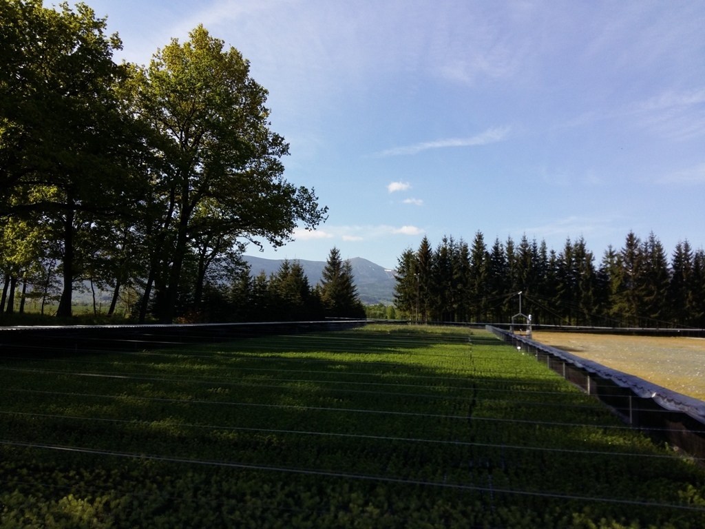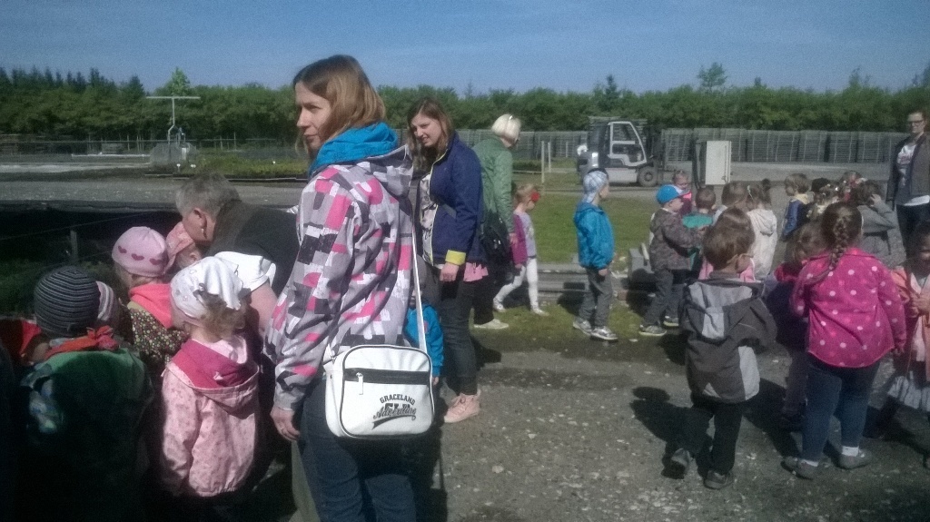 Na miejscu czekała już pani Bogusia, która zaprosiła nas do zwiedzania. Rozpoczęliśmy od wędrówki pomiędzy drzewami, aż dotarliśmy do "ścieżki zmysłów". Była wykonana z szyszek, trawy, kamieni, mchu, znalezionych w lesie, a które mają różny kształt i fakturę. Następnie przeszliśmy do hali, gdzie odbywało się sadzenie nasion w specjalnych kasetach przy użyciu maszyn. Pani Bogusia zaprowadziła nas również do ogromnych szklarni, w których nasionka rosły i stawały się małymi drzewkami. Gdy już podrosną zostają przesadzane ze szklarni i rosną już pod gołym niebem, a podlewają je specjalne zraszacze.