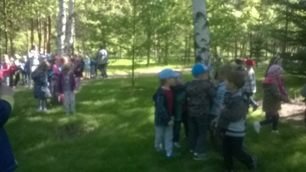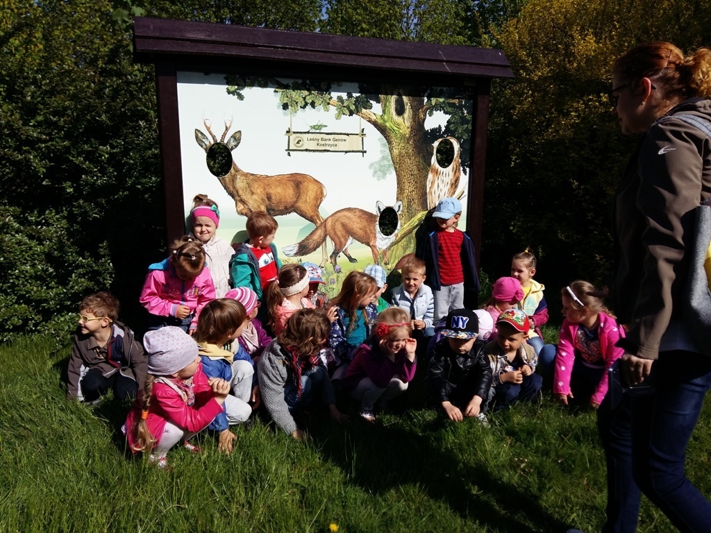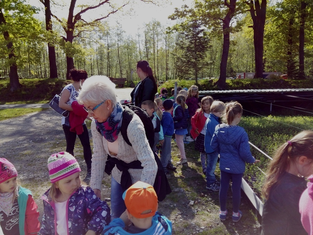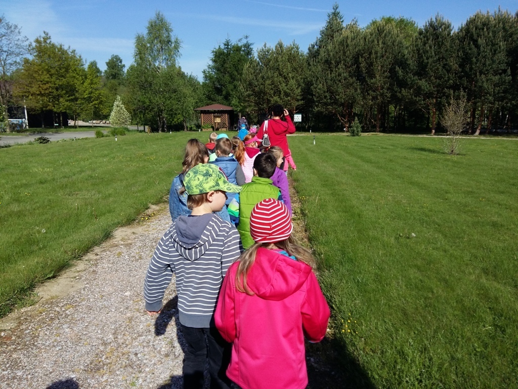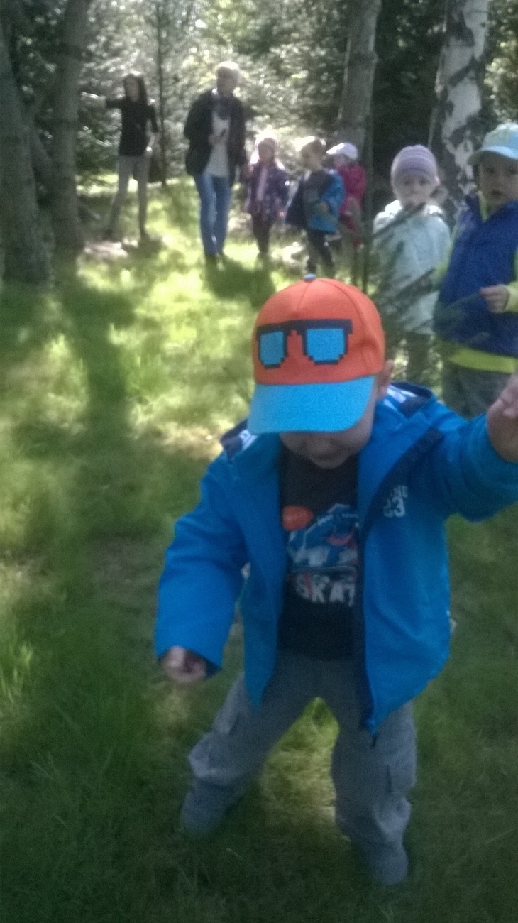 Dnia 18 maja zaraz po pierwszym śniadaniu wszystkie "tuptusiowe" przedszkolaki wsiadły do autokarów, które zawiozły nas do Nadleśnictwa "Śnieżka" znajdującego się w Kostrzycy.