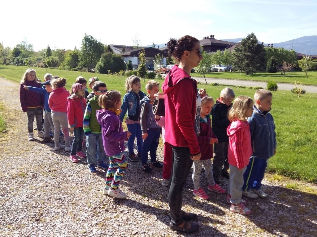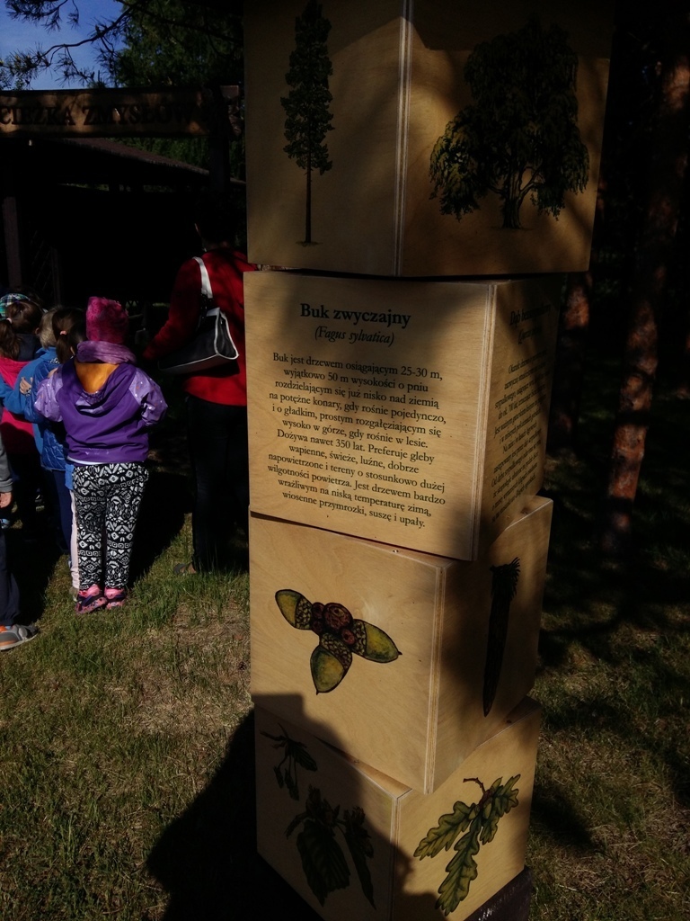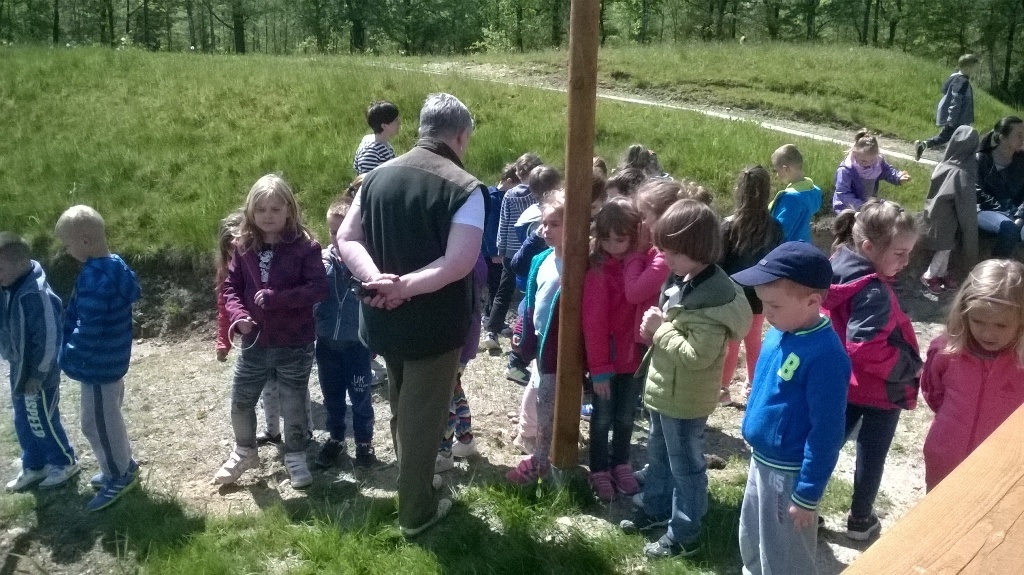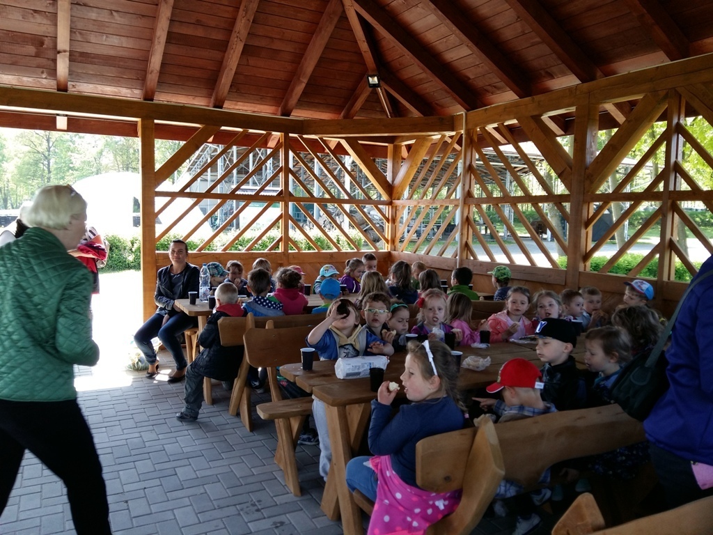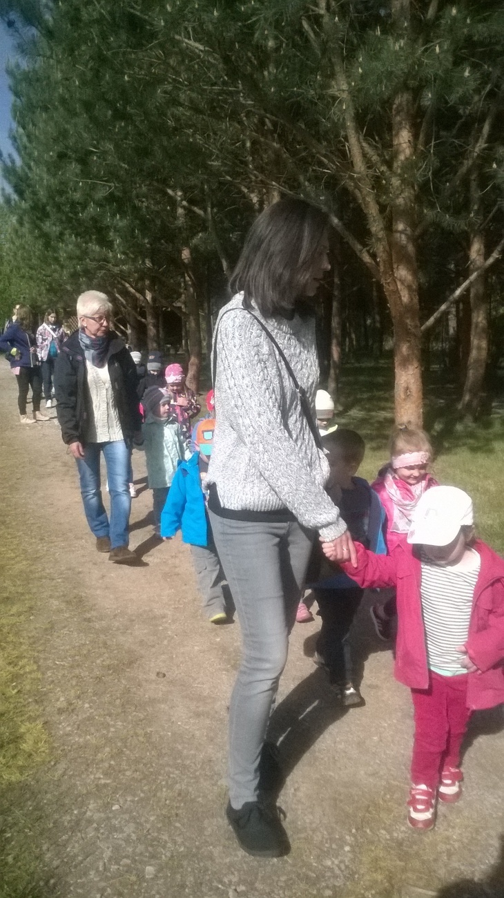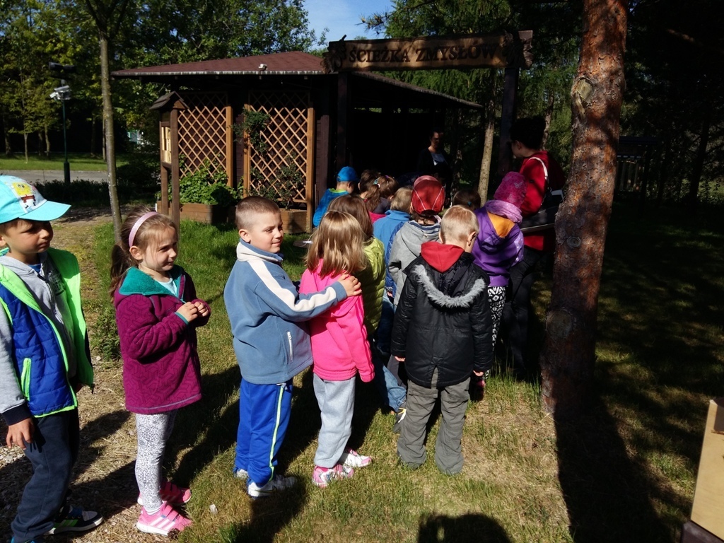 Dnia 18 maja zaraz po pierwszym śniadaniu wszystkie "tuptusiowe" przedszkolaki wsiadły do autokarów, które zawiozły nas do Nadleśnictwa "Śnieżka" znajdującego się w Kostrzycy.